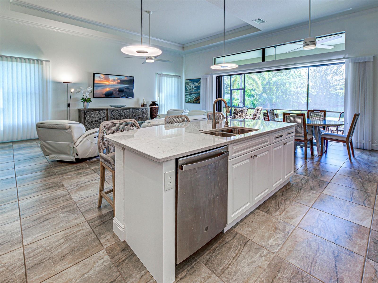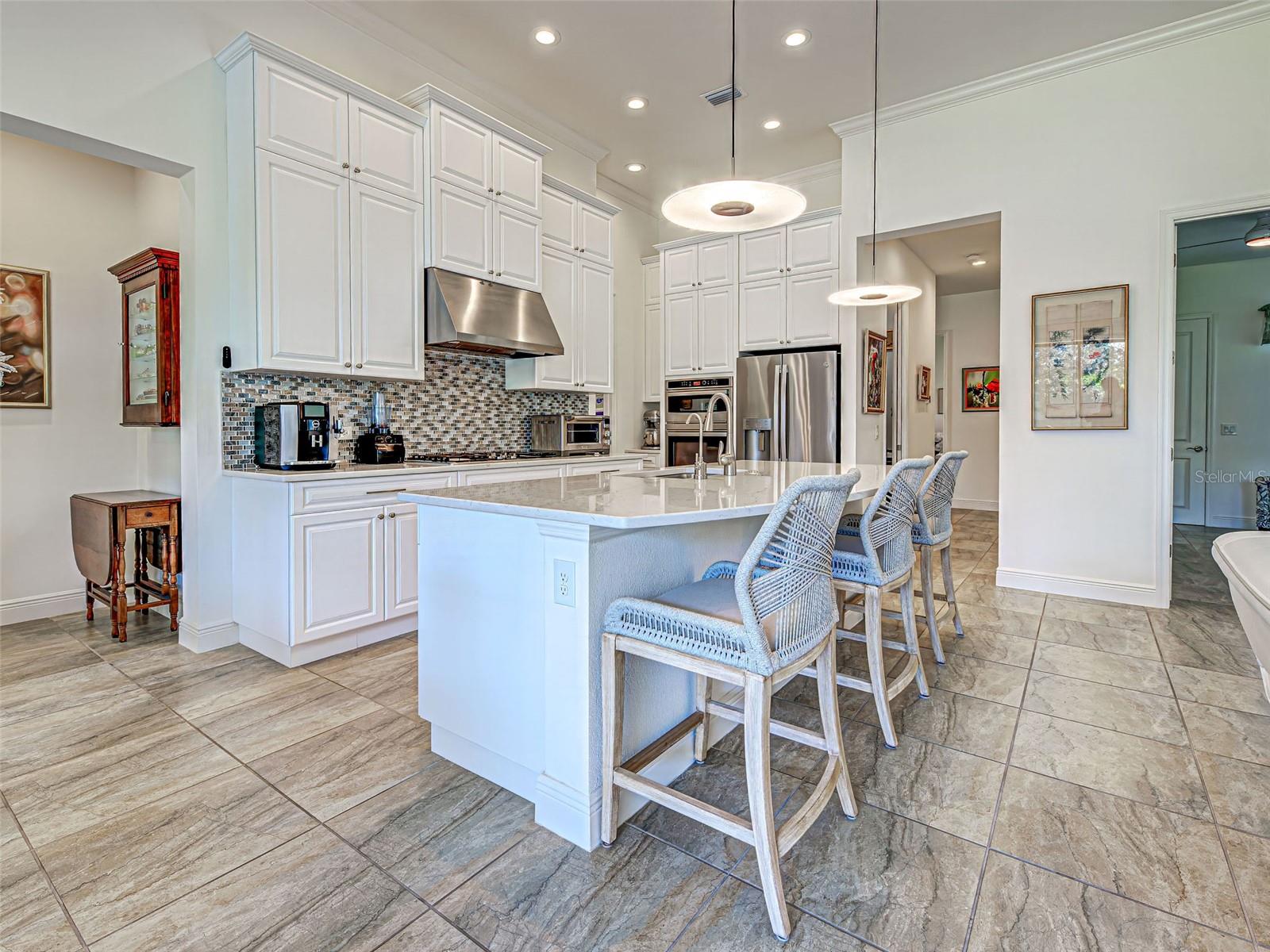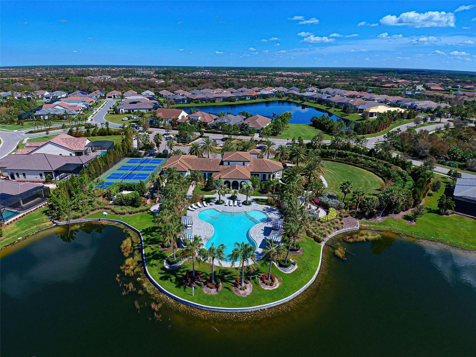 Welcome to ARIA in lovely Nokomis, Florida. Developed by Neal Signature Homes. A deed restricted, gated community with gorgeous resort style amenities including community CLUBHOUSE, FITNESS ROOM, POOL, SPA, PICKLEBALL and entertainment area that overlooks lake and fountain. On-site community manager. Presenting the Vicenzo Model. SPARKLING CLEAN, MOVE-IN ready "MULTI-GENERATION HOME". Built in 2022 with 2667 sq. ft., (heated and cooled) 3576 sq. ft. total. 3/Bedrooms, 3/Bathrooms, a Flexi-Room/Office and 2-Car Garage. BEING OFFERED FURNISHED. Great room boasts 14 ft. ceilings, crown molding, ceramic tile flooring throughout most of the home (primary bedroom and guest bedroom have carpet). Push back the great room fully collapsing sliders and enjoy the 28ft. brick pavered lanai. Kitchen includes custom pantry, quartz counters, gas cooktop, stainless appliances and ample cabinetry. Larger center island with power has room for 4 bar stools. Dining area adjacent to kitchen. Nice sized Flexi/Bonus Room can be outfitted to fit your needs. Would make an excellent office or sewing/craft room etc. Primary Bedroom, En-Suite and Walk-In closets are a true trifecta! Crown molding, room darkening shades, King Sleep Number Bed. En-Suite sports granite, dual sinks, free standing tub and a HUGE shower. HIS/HER closets are amazing, so big like having 2 more rooms. Large 2nd bedroom has a walk-in closet and room darkening shades. The 3rd bedroom begins the "MULTI GENERATIONAL APARTMENT. " This area boasts a bedroom with built-in closets that span one wall, custom bathroom, custom kitchenette with quartz counter and a family room. Great area for guests, Mom and Dad, in-laws, college student or a live-in. Privacy for all with its own PRIVATE ENTRANCE! 2 Car Garage has built-in storage, extra refrigerator/freezer and 2 ceiling storage units. The entire home has IMPACT WINDOWS. It is also a SMART home. Exterior is a handsome combo of block with stone accents. Lush landscaping/ mature plants and trees. ARIA is located close to beaches, Venice Island, I-75, shopping, restaurants and the new Sarasota Memorial Hospital. Make a great decision-come tour this home, IT IS ONE OF A KIND!