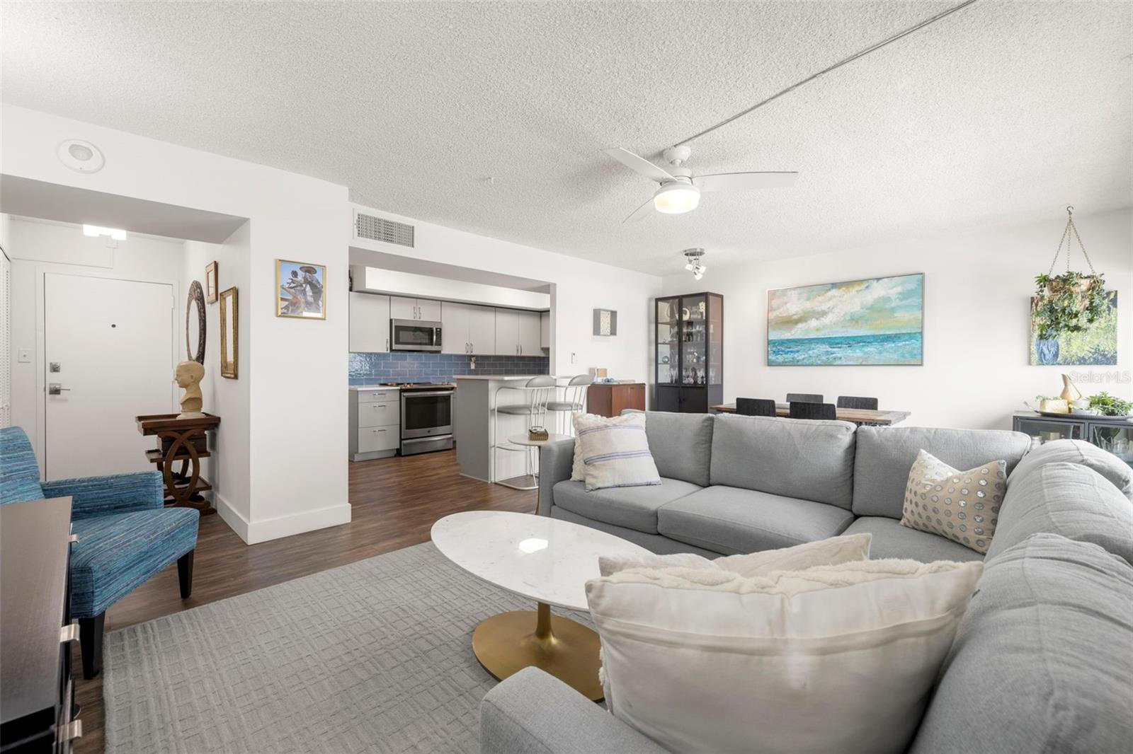 Welcome to Harbor House, a stunning waterfront residence offering iconic Bayshore Boulevard views. Perfectly situated just minutes from the vibrant dining and entertainment of South Howard, Hyde Park, and Bay to Bay, this beautifully updated 2 bedroom 2 bathroom condo offers the ideal blend of luxury and convenience. Step inside to discover an open-concept great room filled with natural light, perfect for both entertaining and relaxing. The fully upgraded kitchen features stone countertops, stainless-steel appliances, a tile backsplash, upgraded cabinetry, and a breakfast bar that seamlessly flows into the dining and living areas. The home’s luxury vinyl flooring runs throughout, enhancing the modern and elegant feel. The primary suite includes a spacious walk-in closet and an en-suite bathroom showcasing incredible tile work and designer finishes. The second bedroom, equally generous in size, is conveniently located near the second fully upgraded bathroom, making it ideal for guests or a home office. Additional updates include hurricane-impact sliding glass doors and windows, a newer HVAC system (2022), and newer hot water heater (2023). The condo also includes one covered parking space. Residents of Harbor House enjoy resort-style amenities, including a sparkling waterfront pool with breathtaking views, a beautifully updated lobby and hallways, new pool furniture, and refreshed landscaping. Flood and building insurance are included in the HOA fees for added peace of mind. Located within steps to the scenic Bayshore Boulevard, and some of Tampa’s best restaurants, this exceptional property offers the ultimate in luxury waterfront living. Don’t miss your opportunity to own a piece of Tampa’s most sought-after lifestyle — schedule your private showing today and experience the waterfront life you’ve always dreamed of.