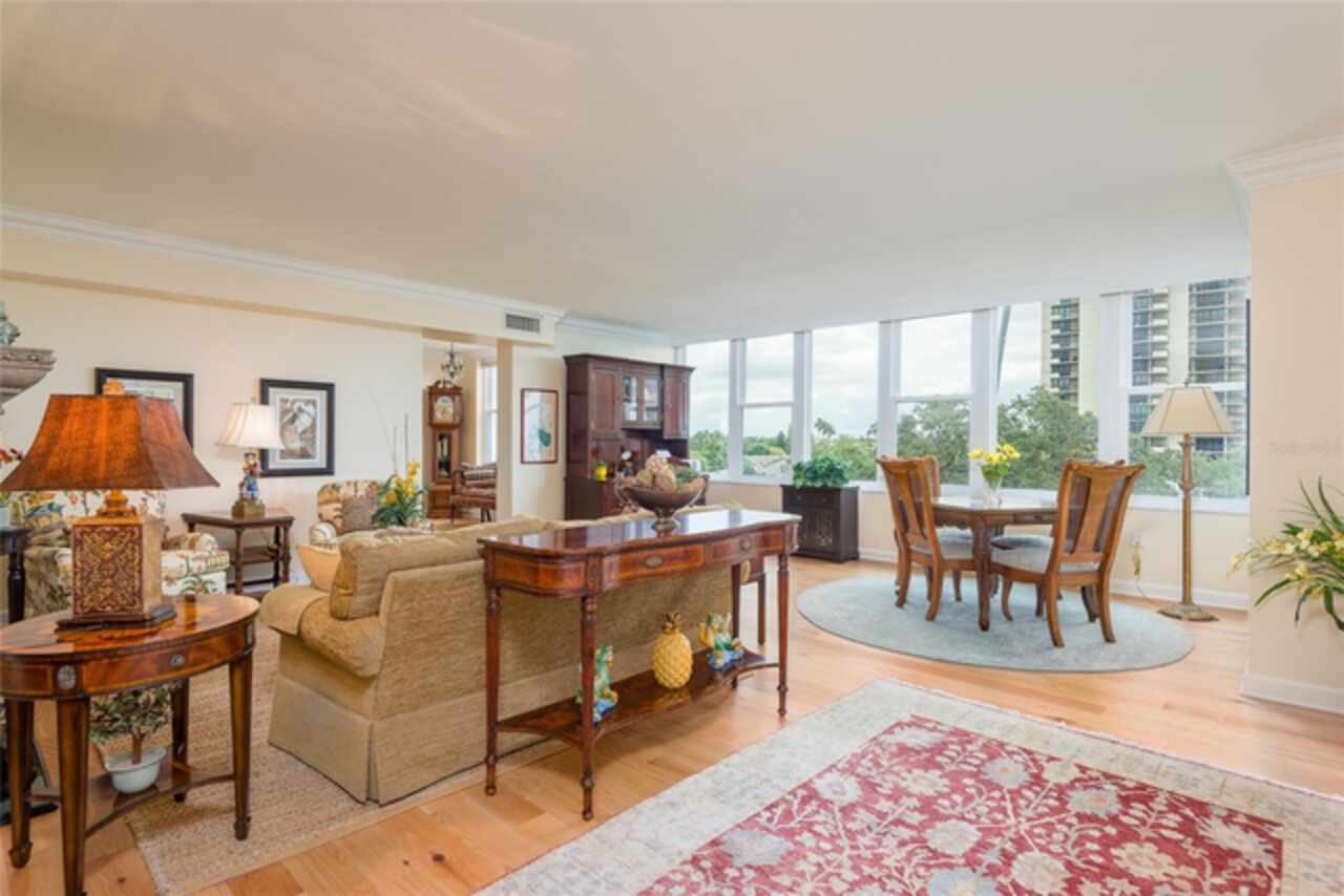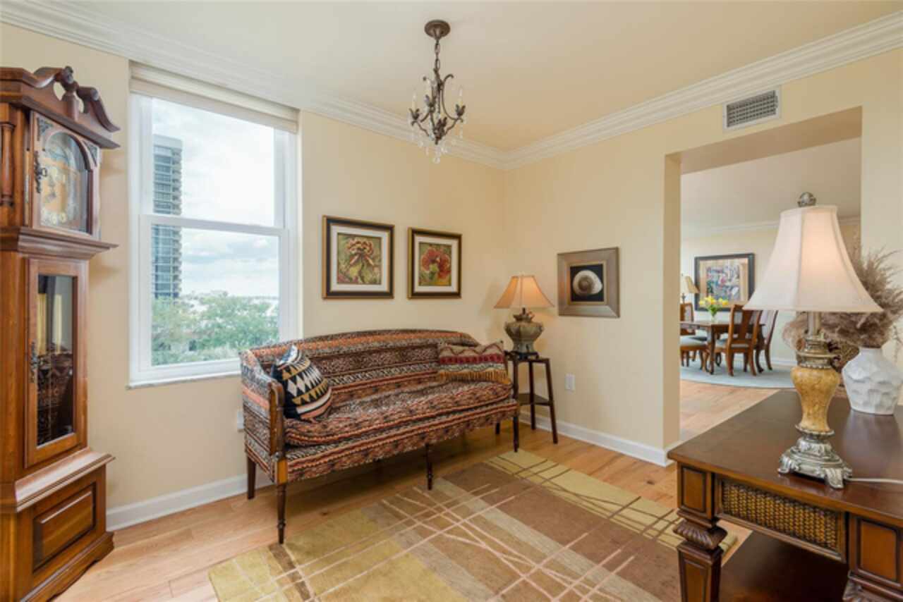 Spacious and Elegant beautifully designed with panaromic views of the Bayshore – Prime Unit at Howell Park – turnkey. Freshly painted throughout, this 6th-floor condo in the sought-after 55+ Howell Park community offers unmatched views, privacy, and security. The bright living room features picture windows and a decorative fireplace. The primary suite has an en-suite bath, while the guest suite includes a sitting area, en-suite bath, walk-in closet, and bar area. The kitchen offers custom cabinetry, GE Café appliances, an eat-in space, and a walk-in pantry. Crown molding, built-ins, generous storage, and a covered parking space complete this exceptional home. Howell Park provides 24/7 gated security, a digital fire alarm system, landscaped grounds, and a pool, all in a prime location close to shopping, dining, downtown, and major roads.