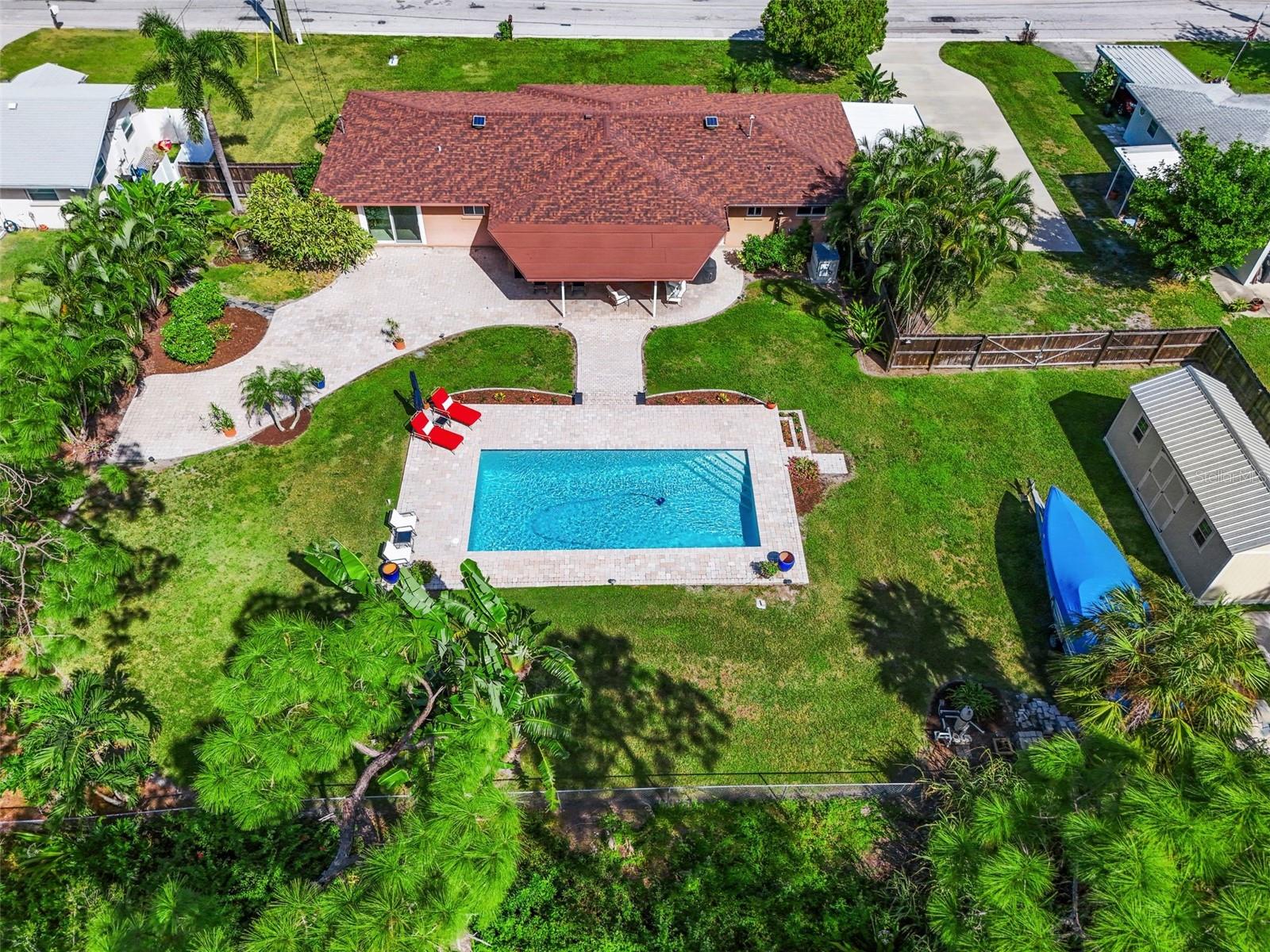 Under contract-accepting backup offers. Asking for Highest and Best Offer by 2PM Saturday October 25th. Your peaceful Bradenton retreat awaits! Set on a rare half-acre lot, this beautifully maintained 3-bedroom, 2-bath pool home offers space, privacy, and effortless Florida living. With no neighbors behind you, you’ll enjoy a sense of peace and seclusion while still being minutes from everything. Inside, you’ll find a bright, open floor plan with neutral tones, and abundant natural light. The spacious kitchen features elegant custom cabinetry, granite countertops, and stainless-steel appliances perfect for the home chef. The living and dining areas flow to the covered lanai and pool area for easy entertaining. The primary suite opens directly to the pool and patio, creating a true indoor-outdoor experience. Step outside to your private backyard oasis featuring a sparkling pool, paver patio, lush tropical landscaping, and even an outdoor shower, ideal for rinsing off after a swim or day at the beach. Recent updates include a newer roof, impact doors and windows, offering peace of mind and energy efficiency. There’s plenty of room for all your toys, with space to park an RV, boat, or trailer, a two-car garage, covered carport, and storage shed. With no HOA, this home is perfect for full-time residents, investors, or snowbirds looking for a quiet winter escape. Just minutes to downtown Bradenton, shopping, dining, and a short drive to Anna Maria Island’s world-famous beaches, this property truly offers the best of space, style, and serenity.