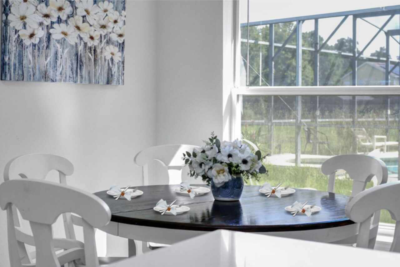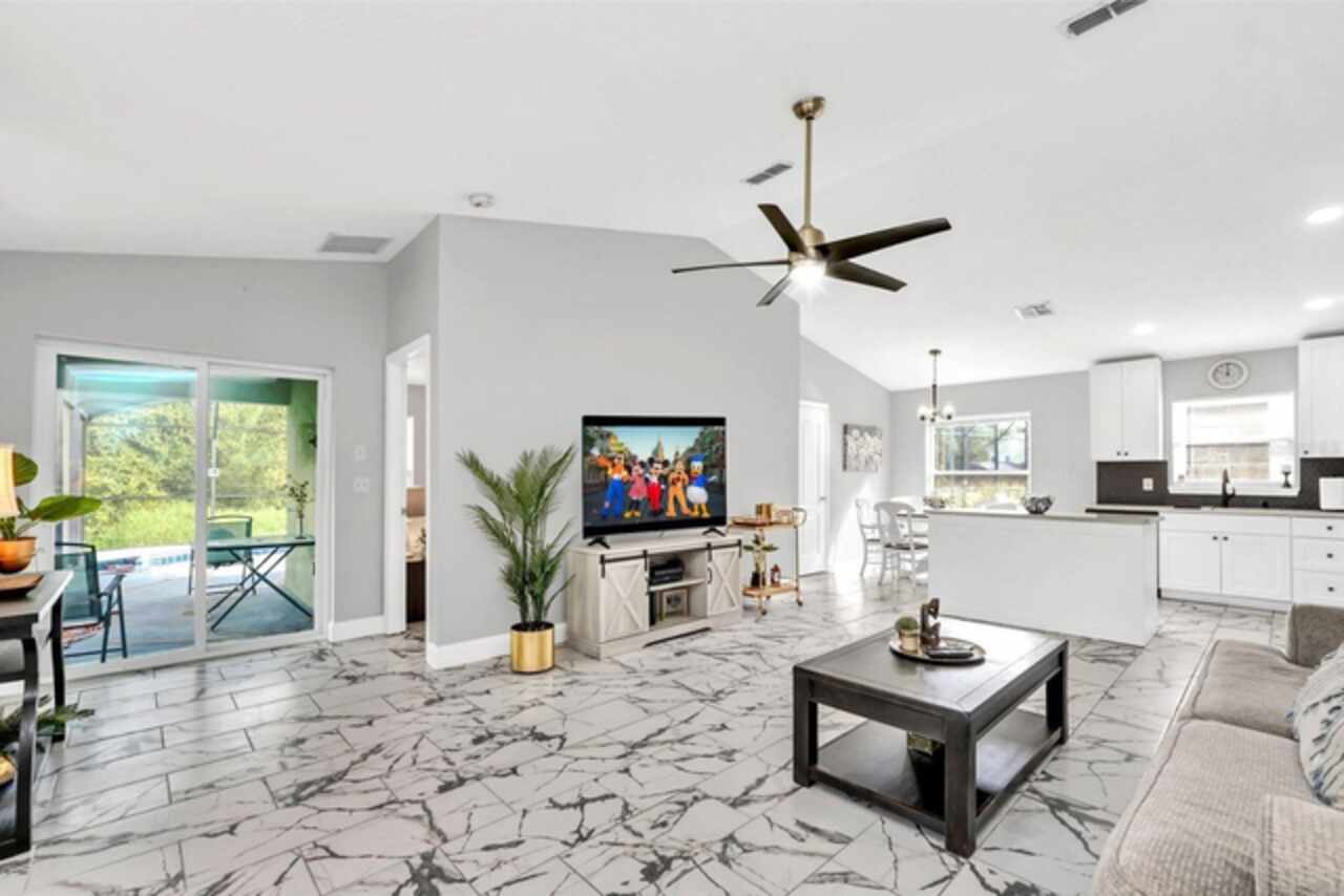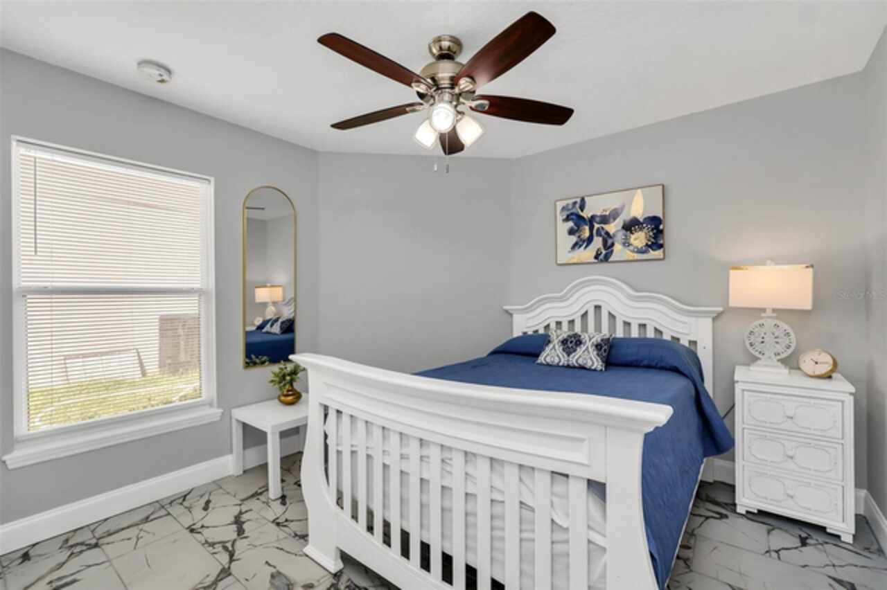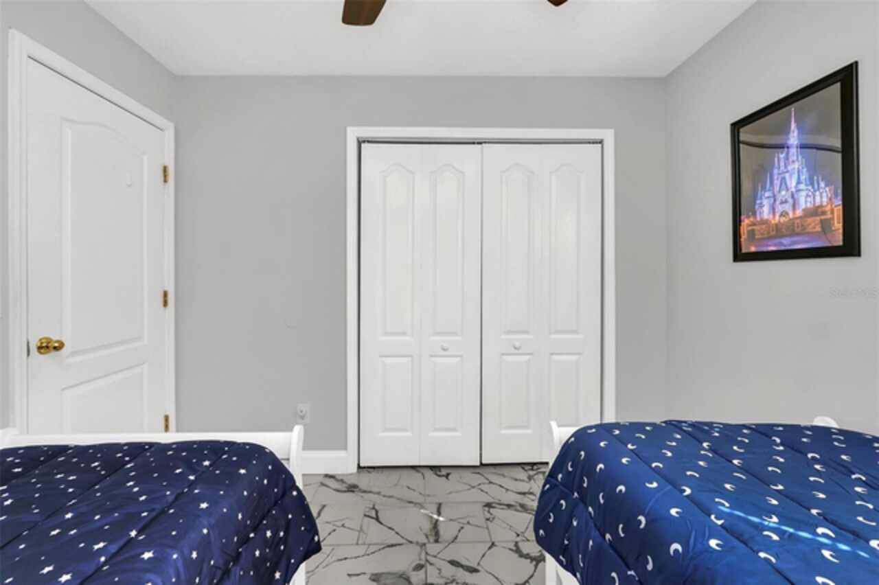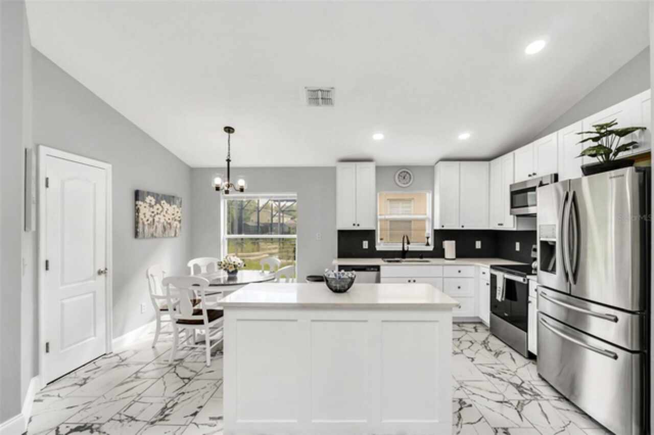Under contract-accepting backup offers. Located in the community of Sandy Ridge in Davenport, this beautiful 4-bedroom, 3-bathroom home is fully furnished and ready for immediate occupancy. Featuring two master bedrooms and bathrooms, as well as a spacious, open-concept floor plan, the layout seamlessly connects the kitchen, dining area, and family room—perfect for relaxing or entertaining. Offering privacy and flexibility for family or guests, One suite is ideally situated on the opposite side of the home, creating a versatile layout to suit your personal needs. Step outside to your sparkling private pool, set against a stunning backdrop of lush conservation land and serene water views—the perfect retreat on a sunny Florida day. With no rear neighbors, you'll love the added privacy while lounging or entertaining poolside. (New A/C unit 2025)(NO CARPET INSIDE HOUSE) Investors will be delighted to hear this property has a 5-star management company already in place, making the asset's management seamless moving forward. Located just around the corner from Disney World, the proximity ensures guests have everything they need for a luxurious and memorable stay. (ORIGINAL ROOF)