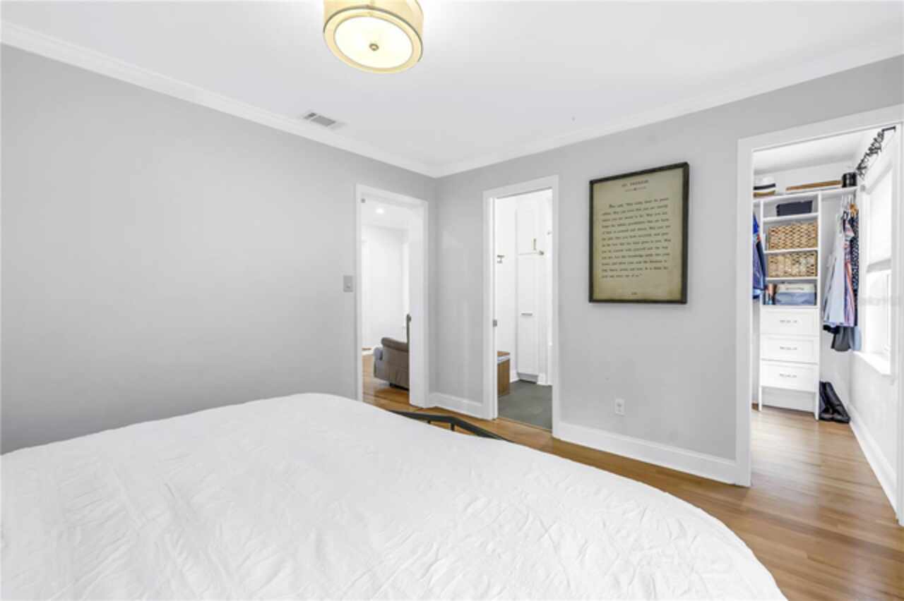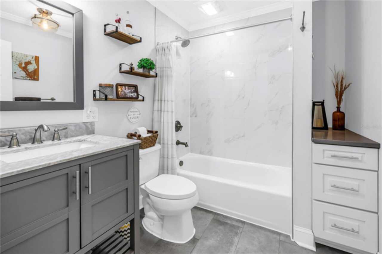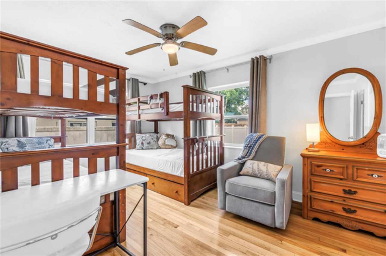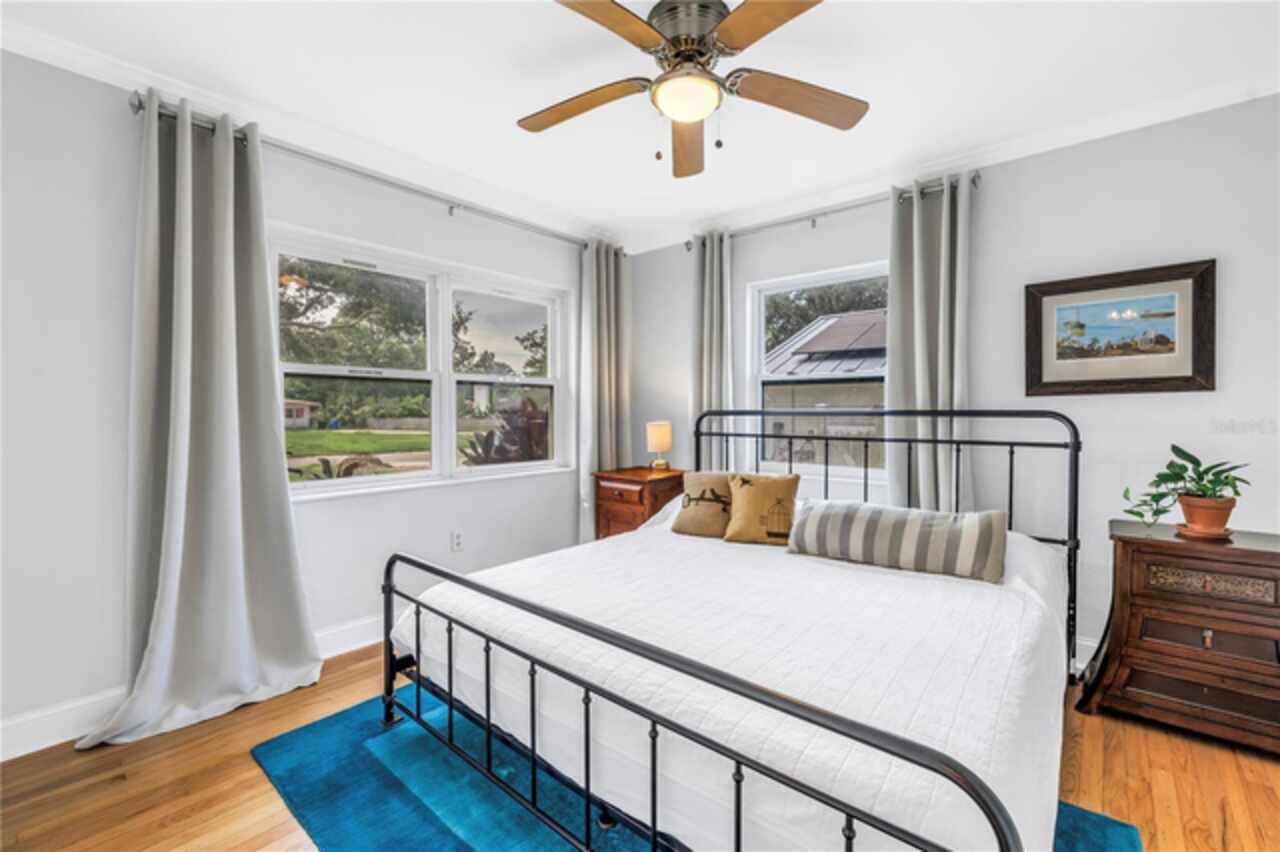 Welcome to this beautifully renovated 4-bedroom, 2-bath home featuring a thoughtful split floor plan on a large 1/4 acre lot in Lakewood Estates. Enjoy the seamless flow of the open living areas, highlighted by modern finishes, updated kitchen and abundant natural light. Master suite features a new en-suite bathroom and walk in closet. Three more bedrooms and hall bathroom all feature smart storage and wood floors. Step outside onto the large cantilevered screened porch — an ideal spot to relax and entertain while enjoying the fresh air in any weather. The expansive backyard is a true outdoor rarity - a flourishing garden space ready for your green thumb, large storage shed, and a charming chicken coop, plus even more yard to make your own! Located high and dry out of the flood zones, it is also eco-friendly with solar panels for super low electric bills year round, and pre-wired for generator hookup. Located around the corner from the St. Petersburg Country Club, and just minutes to I-275, downtown St Pete, and the Gulf Beaches. This home blends comfort, style, and practicality, making it a perfect retreat for modern living.