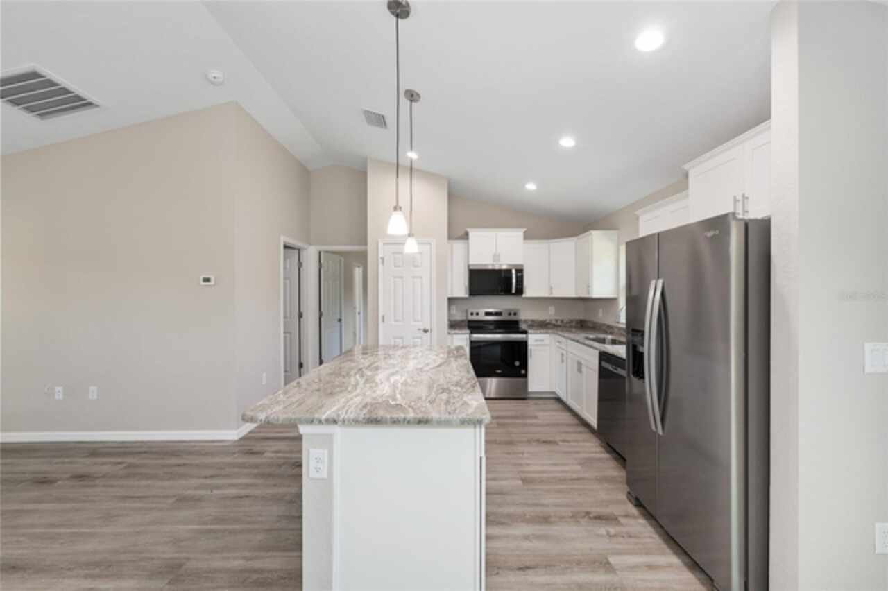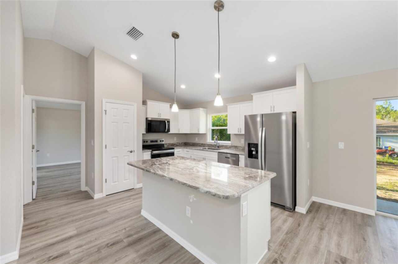 One or more photo(s) has been virtually staged. Home is complete!! This gorgeous brand-new home located in Citrus Springs is the ideal escape from the hustle and bustle of city life! QUARTZ COUNTER TOPS! With an open floor plan, pleasing neutral colors and vinyl plank flooring throughout, this 3-bedroom, 2-bathroom residence has all the charm and comfort any family could desire. Showcasing shaker style cabinets with granite counter tops in the kitchen, a washer/dryer hook up in the inside laundry for added convenience, plus a stainless-steel appliance package, this home is sure to impress. Enjoy your time in the neighborhood while nearby shopping, dining, medical centers and natural springs keep life exciting. Plus, its location near pristine rivers and springs allows for outdoor activities where adventure finds you!