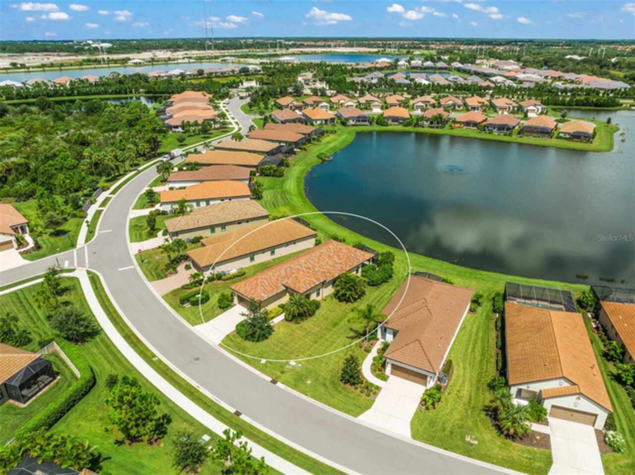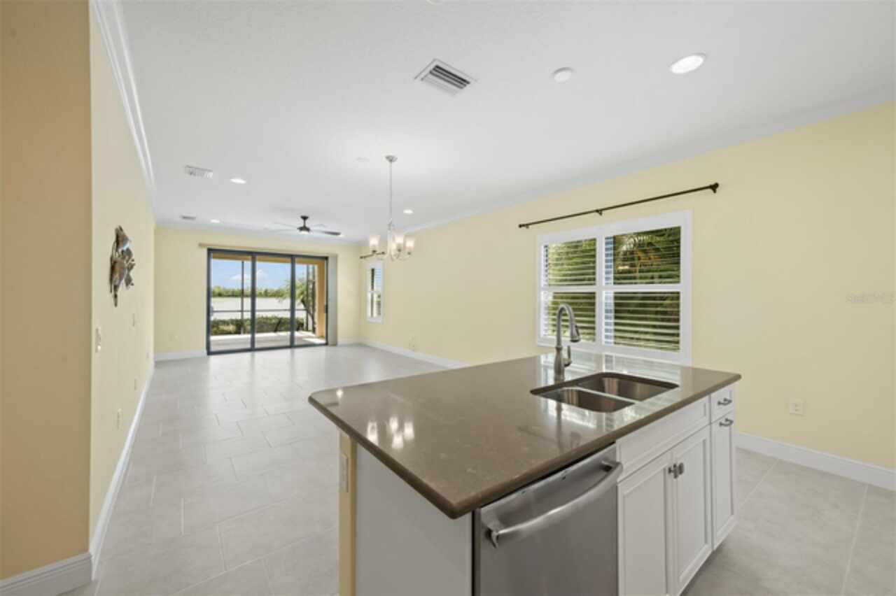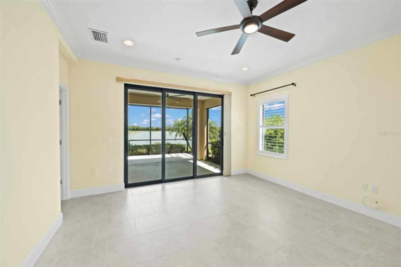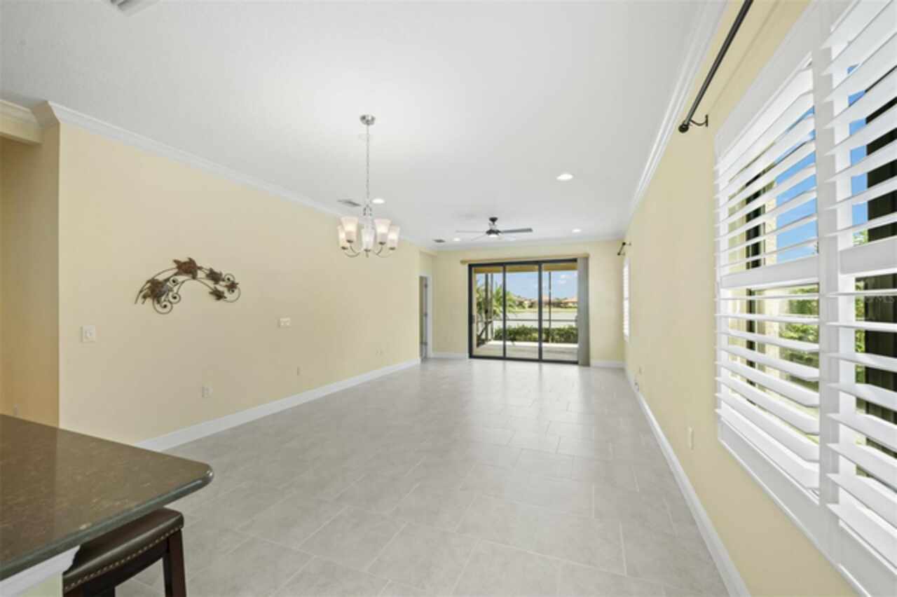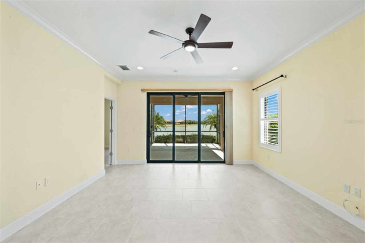 Under contract-accepting backup offers. Short Sale. This stunning water view home in the highly desirable Neal Community of Milano is a must see! The Anthem II is a well thought out floorplan consisting of 3 bedrooms, 2 full bathrooms and a den. The kitchen is highlighted by solid wood cabinets with crown molding, under cabinet lighting, tastefully tiled backsplash, stainless steel appliances, quartz countertops, closet pantry and a large island. The adjoining dining area and great room are perfect for entertaining or for quiet evenings at home. The den features recessed lights and large windows for a nice bright space that can be used for a variety of purposes. The owners suite showcases a large walk-in closet, ensuite bathroom with large glass enclosed walk-in shower and dual vanities. The two guest bedrooms share a guest bath which features a tub/shower combo. The extended covered lanai with long lake views is the perfect spot to enjoy your morning coffee or to wind down your day with an adult libation. Additional features of this home include; garage extension of 4 feet making it 24 feet deep, IMPACT RESISTANT WINDOWS AND DOORS, additional insulation in the walls, and crown molding in most rooms. Milano has low HOA fees and no CDD yet has an abundance of amenities for its residents to enjoy including; pickleball, bocce, pool, hot tub, dog park and a pool-side fire pit. Milano is centrally located with easy access to I-75, downtown Venice, the beautiful gulf beaches, the Atlanta Braves spring training facility and many dining and shopping options.