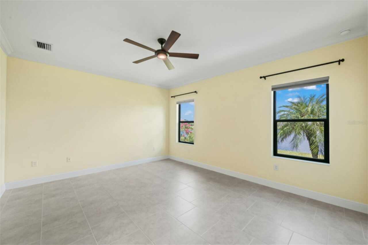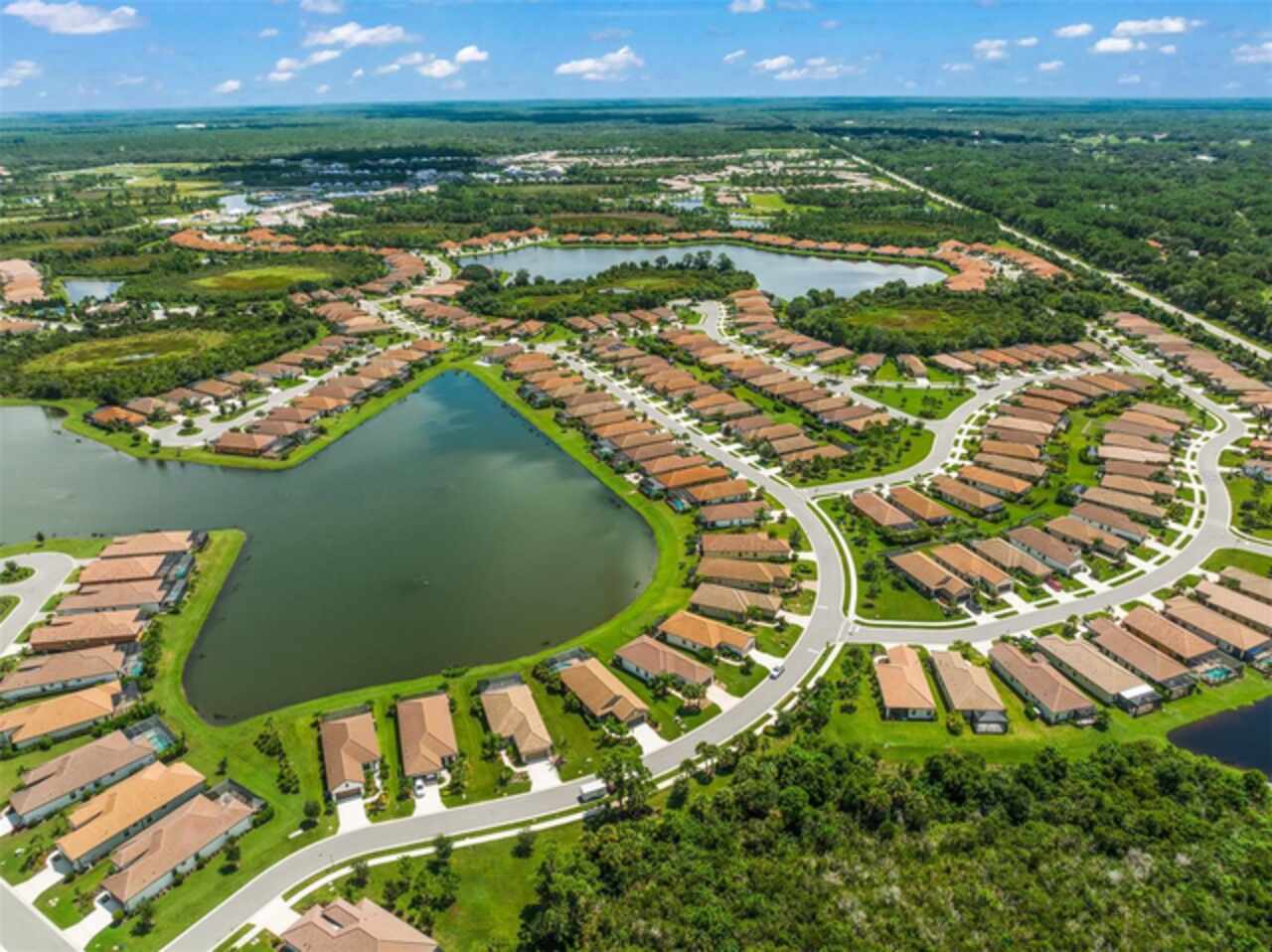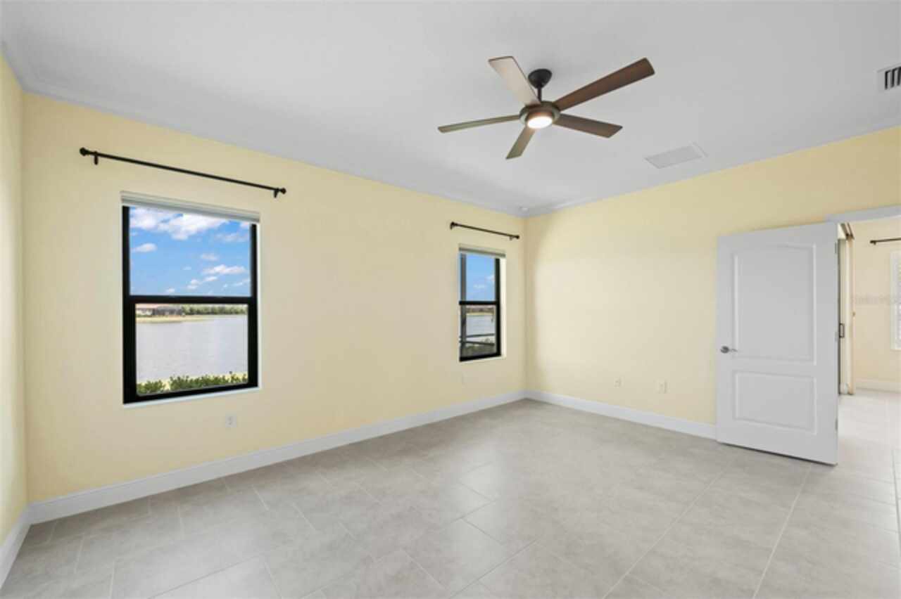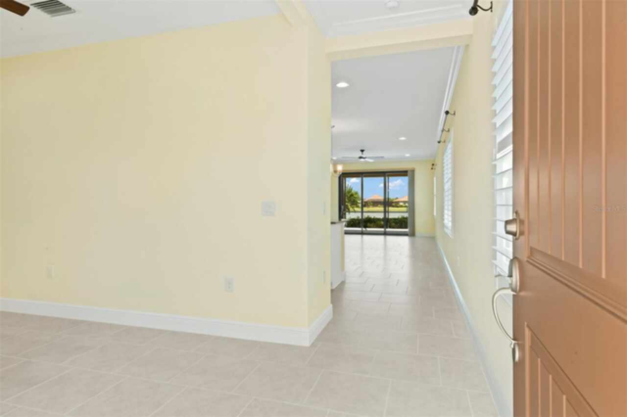 Under contract-accepting backup offers. Short Sale. This stunning water view home in the highly desirable Neal Community of Milano is a must see! The Anthem II is a well thought out floorplan consisting of 3 bedrooms, 2 full bathrooms and a den. The kitchen is highlighted by solid wood cabinets with crown molding, under cabinet lighting, tastefully tiled backsplash, stainless steel appliances, quartz countertops, closet pantry and a large island. The adjoining dining area and great room are perfect for entertaining or for quiet evenings at home. The den features recessed lights and large windows for a nice bright space that can be used for a variety of purposes. The owners suite showcases a large walk-in closet, ensuite bathroom with large glass enclosed walk-in shower and dual vanities. The two guest bedrooms share a guest bath which features a tub/shower combo. The extended covered lanai with long lake views is the perfect spot to enjoy your morning coffee or to wind down your day with an adult libation. Additional features of this home include; garage extension of 4 feet making it 24 feet deep, IMPACT RESISTANT WINDOWS AND DOORS, additional insulation in the walls, and crown molding in most rooms. Milano has low HOA fees and no CDD yet has an abundance of amenities for its residents to enjoy including; pickleball, bocce, pool, hot tub, dog park and a pool-side fire pit. Milano is centrally located with easy access to I-75, downtown Venice, the beautiful gulf beaches, the Atlanta Braves spring training facility and many dining and shopping options.