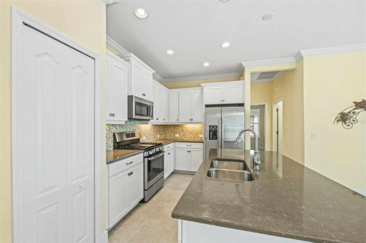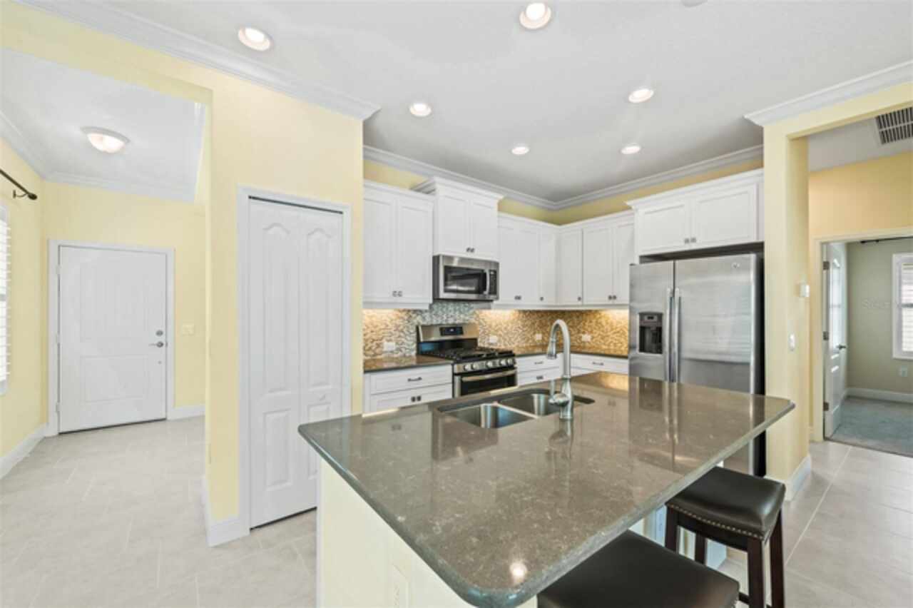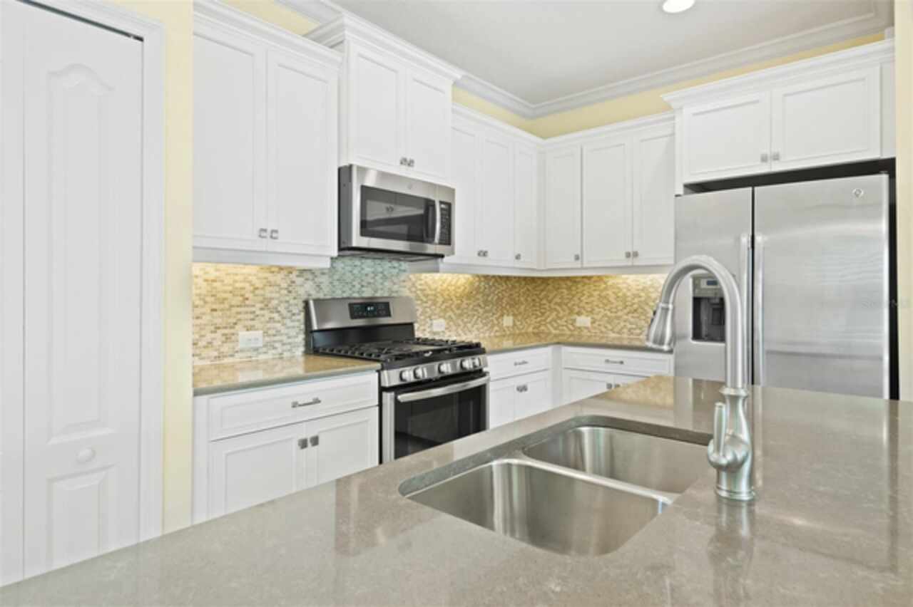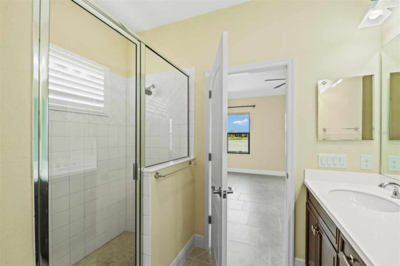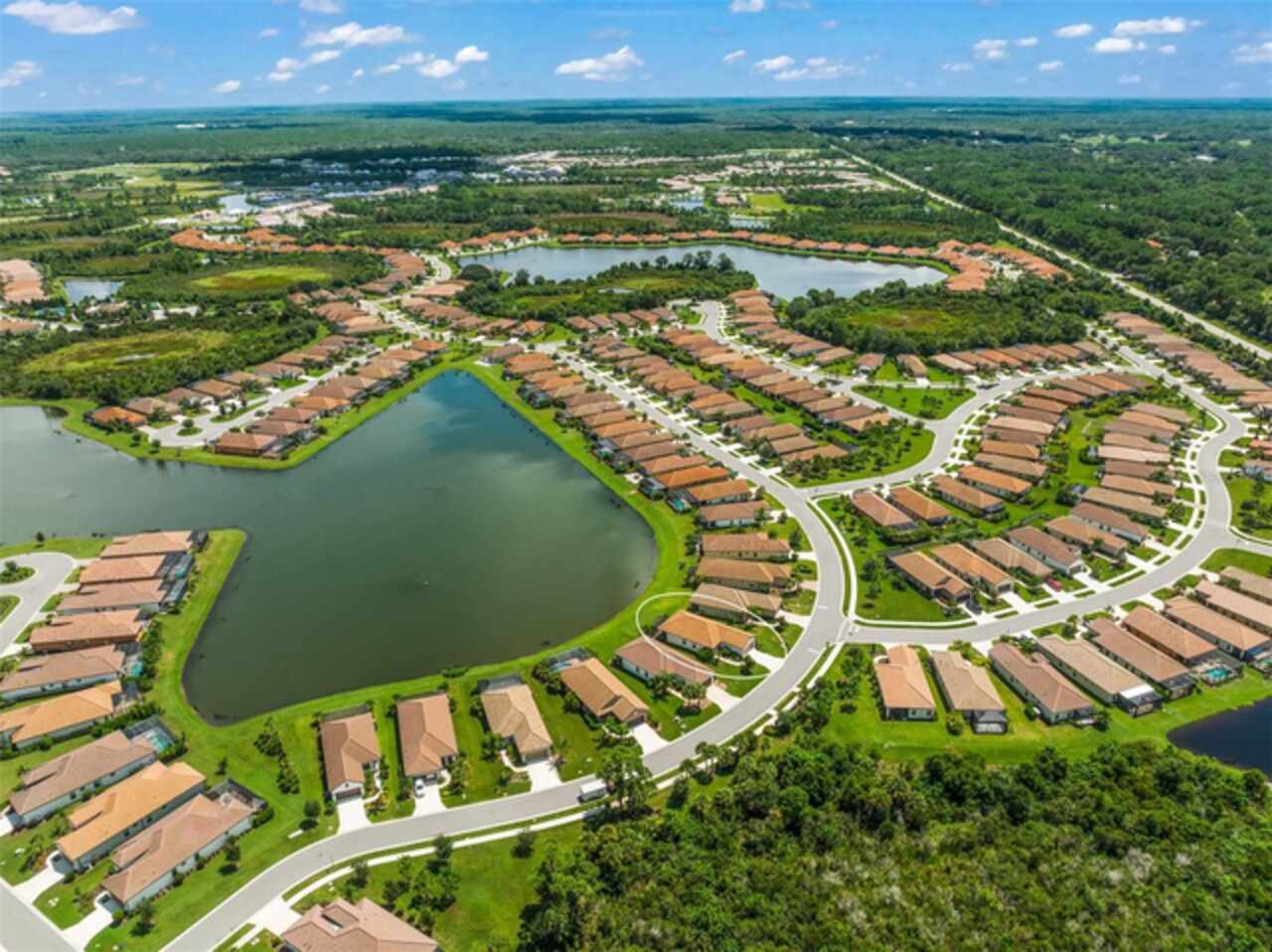 Under contract-accepting backup offers. Short Sale. This stunning water view home in the highly desirable Neal Community of Milano is a must see! The Anthem II is a well thought out floorplan consisting of 3 bedrooms, 2 full bathrooms and a den. The kitchen is highlighted by solid wood cabinets with crown molding, under cabinet lighting, tastefully tiled backsplash, stainless steel appliances, quartz countertops, closet pantry and a large island. The adjoining dining area and great room are perfect for entertaining or for quiet evenings at home. The den features recessed lights and large windows for a nice bright space that can be used for a variety of purposes. The owners suite showcases a large walk-in closet, ensuite bathroom with large glass enclosed walk-in shower and dual vanities. The two guest bedrooms share a guest bath which features a tub/shower combo. The extended covered lanai with long lake views is the perfect spot to enjoy your morning coffee or to wind down your day with an adult libation. Additional features of this home include; garage extension of 4 feet making it 24 feet deep, IMPACT RESISTANT WINDOWS AND DOORS, additional insulation in the walls, and crown molding in most rooms. Milano has low HOA fees and no CDD yet has an abundance of amenities for its residents to enjoy including; pickleball, bocce, pool, hot tub, dog park and a pool-side fire pit. Milano is centrally located with easy access to I-75, downtown Venice, the beautiful gulf beaches, the Atlanta Braves spring training facility and many dining and shopping options.