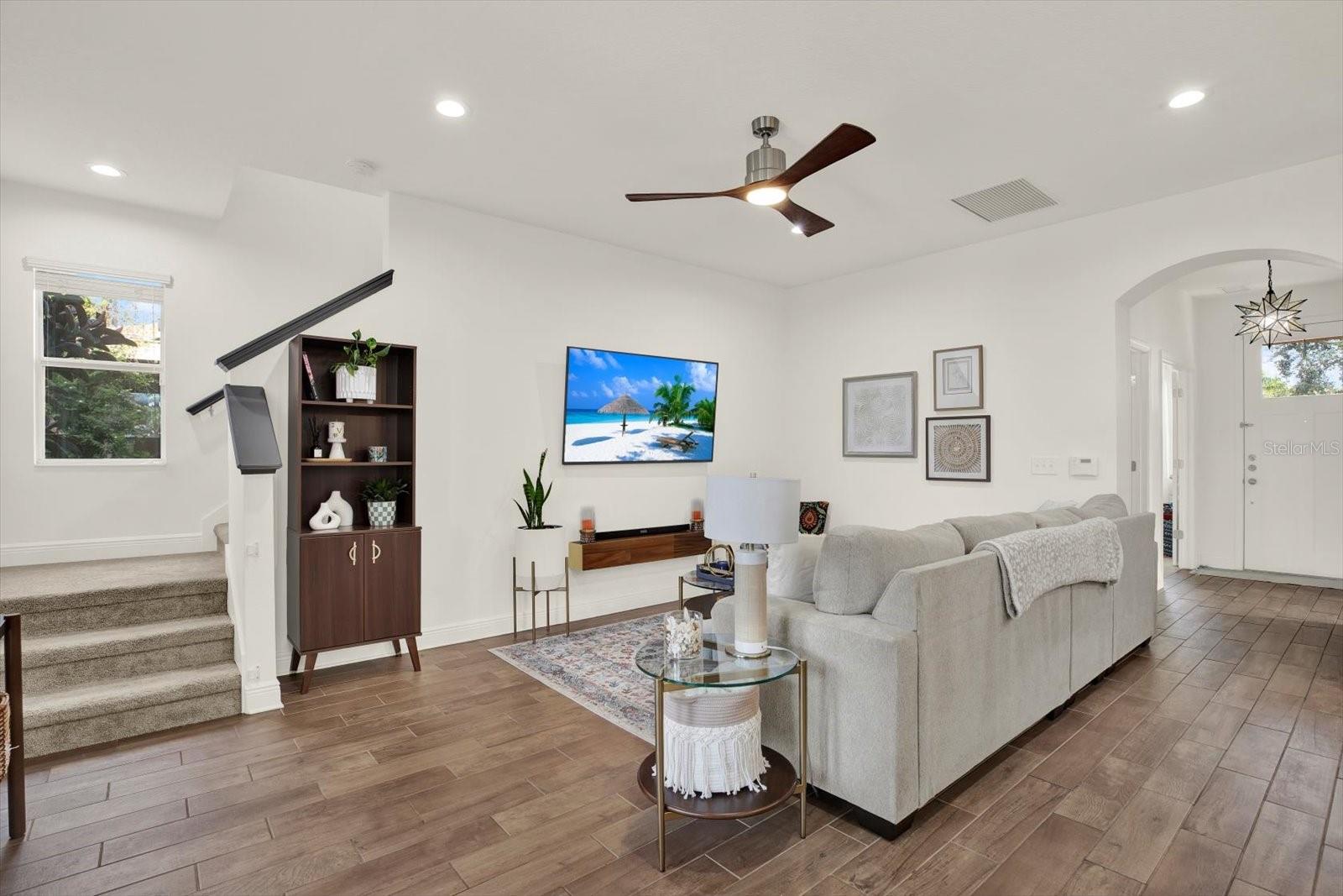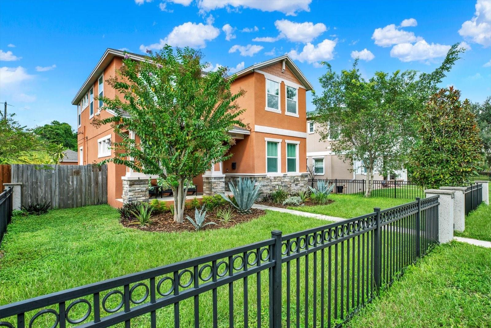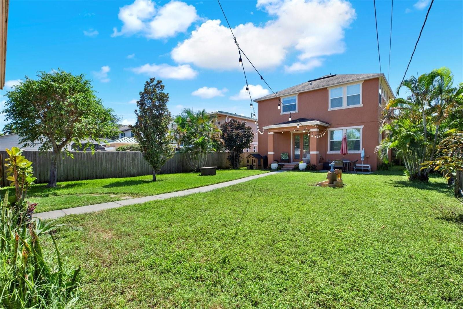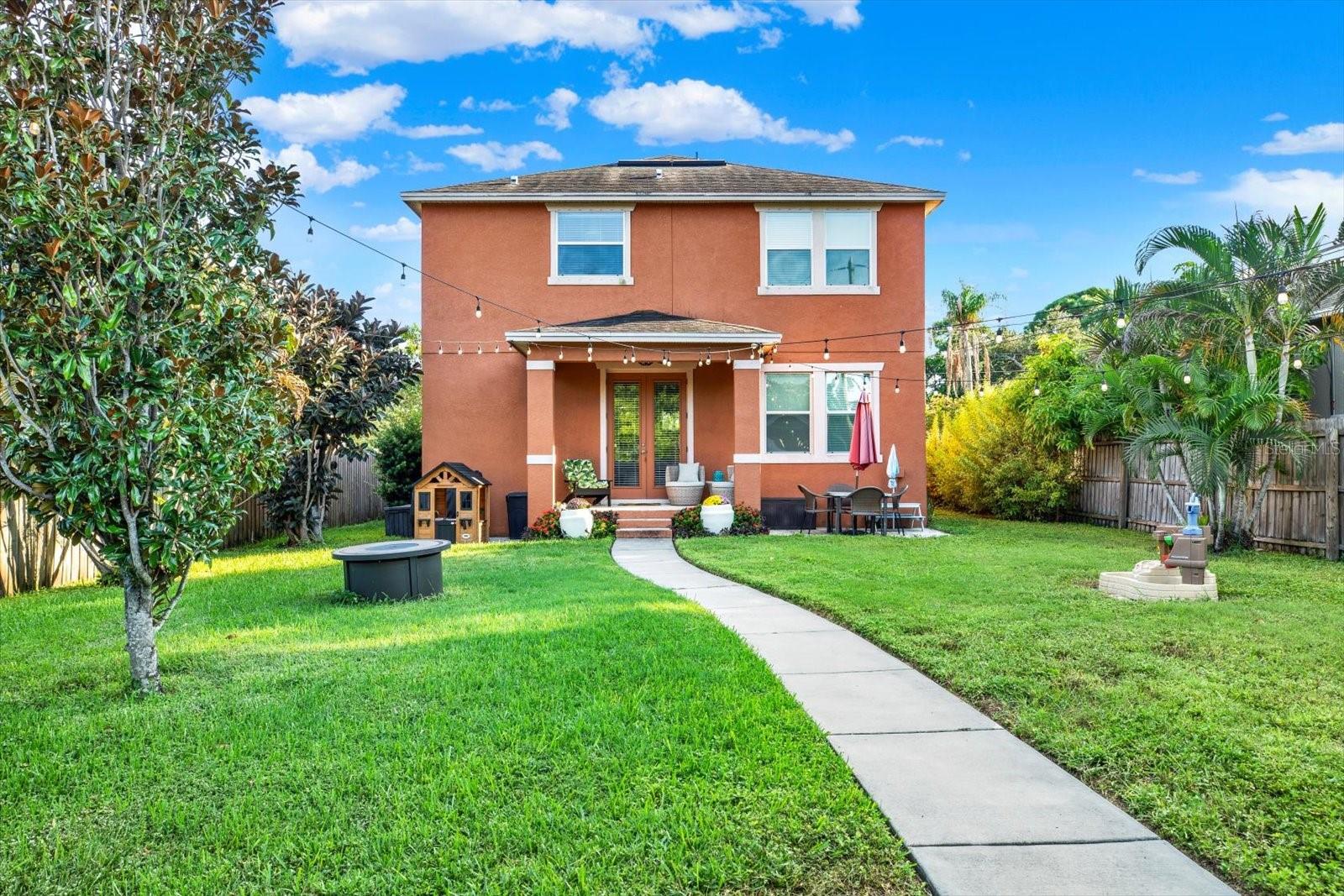 Under contract-accepting backup offers. Welcome to this beautifully maintained home in the highly sought-after Kenwood neighborhood. Built in 2016, this residence offers both timeless charm and modern convenience, all just minutes from downtown St. Petersburg. The inviting front porch and wrought iron fence create excellent curb appeal. Inside, you’ll find wood-look tile floors throughout the main level, decorative baseboards, and arch doorways that add character. An office (or make it a formal dining room!) at the front of the home is filled with natural light, while a spacious guest bedroom sits just across the hall. The heart of the home is the island kitchen featuring designer granite counters, stainless steel appliances and a pantry that flows seamlessly into the great room. French doors open to a covered lanai overlooking the private, fenced backyard—ideal for entertaining or even adding a pool. A paved walkway leads to the detached garage for added convenience. Upstairs, the generous primary suite boasts tray ceilings, abundant windows, an oversized walk-in closet, and a spa-like bath with dual vanities, a soaking tub, and a beautifully tiled shower. Two additional bedrooms, another full bath, and a laundry room complete the second floor. Perfectly located near the Edge District, waterfront parks, museums, and vibrant Downtown dining and festivals, this North Kenwood gem offers both comfort and convenience.