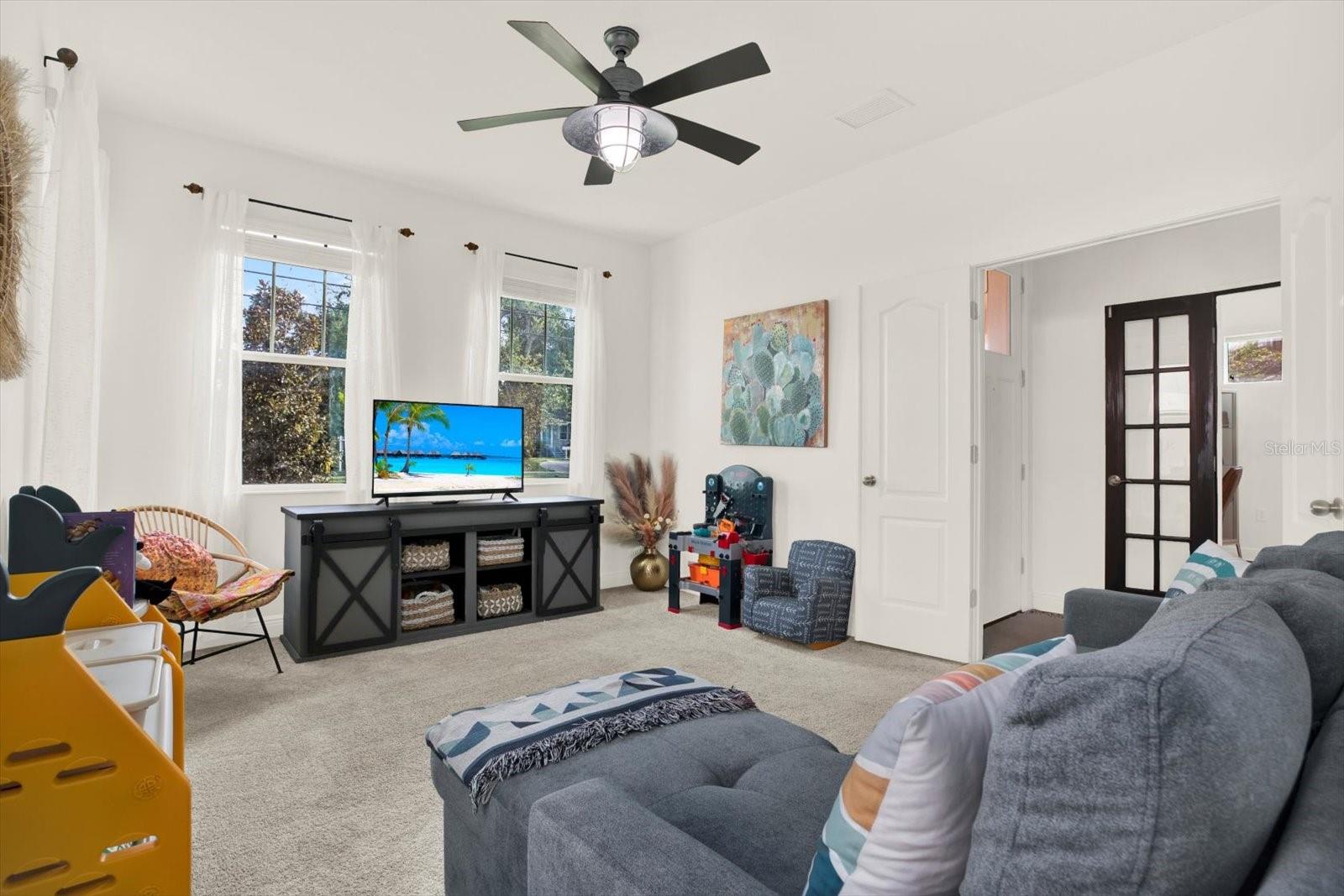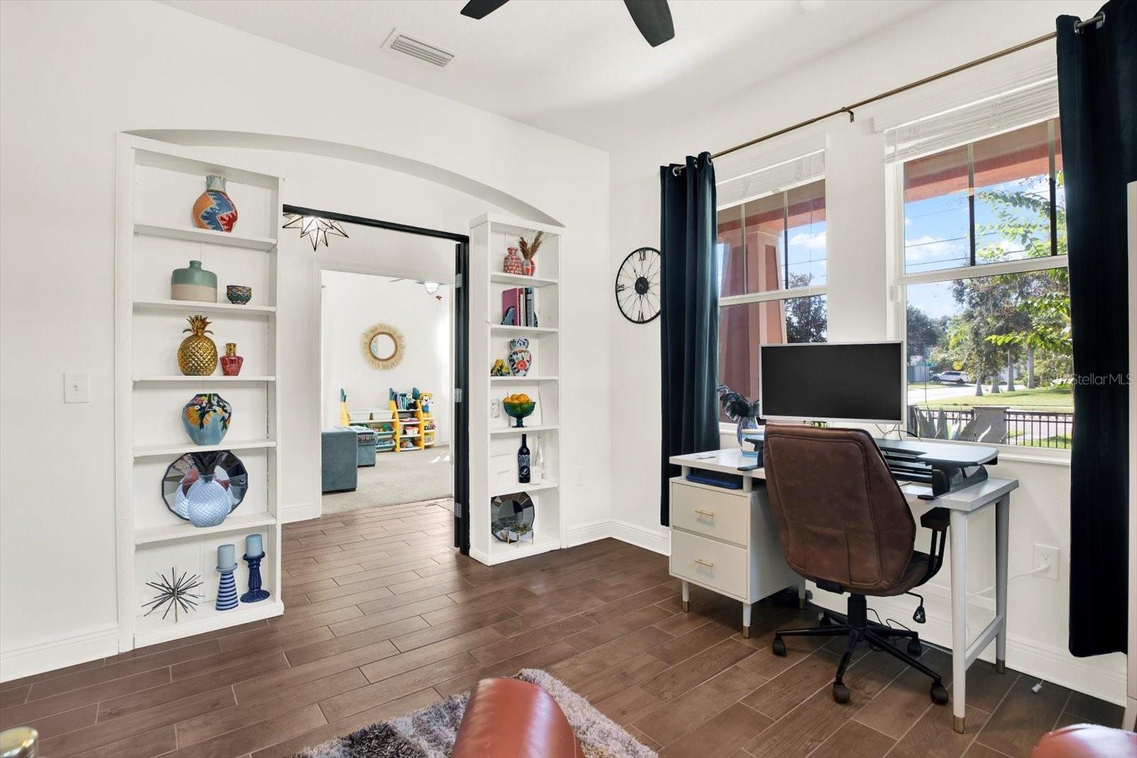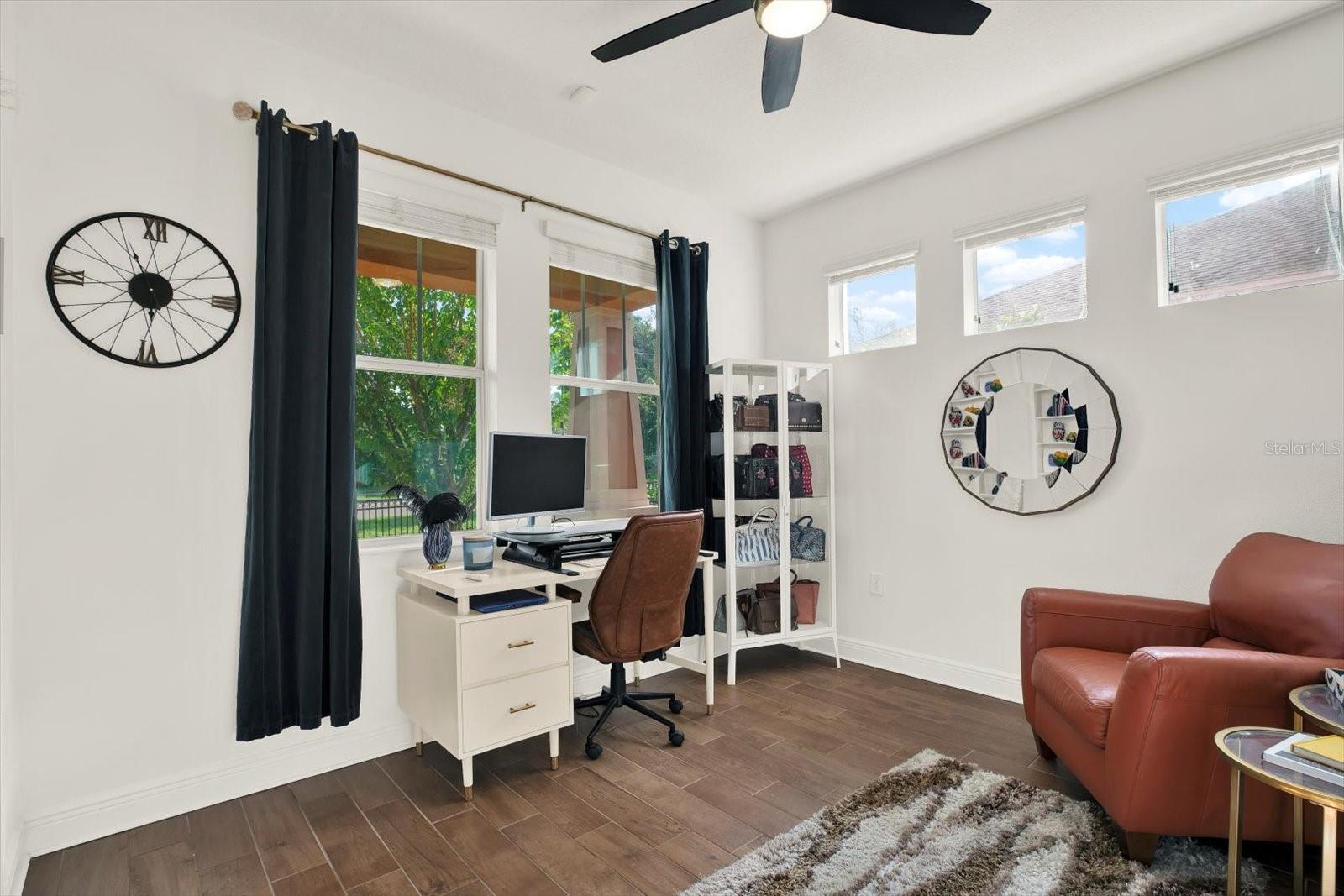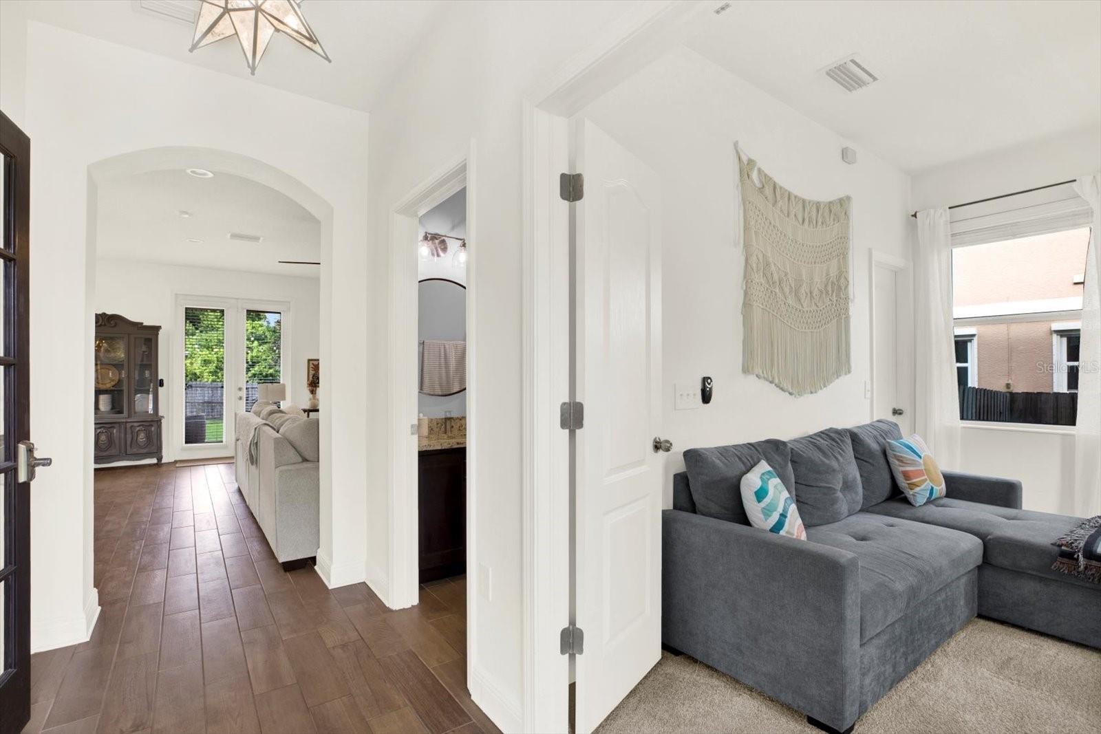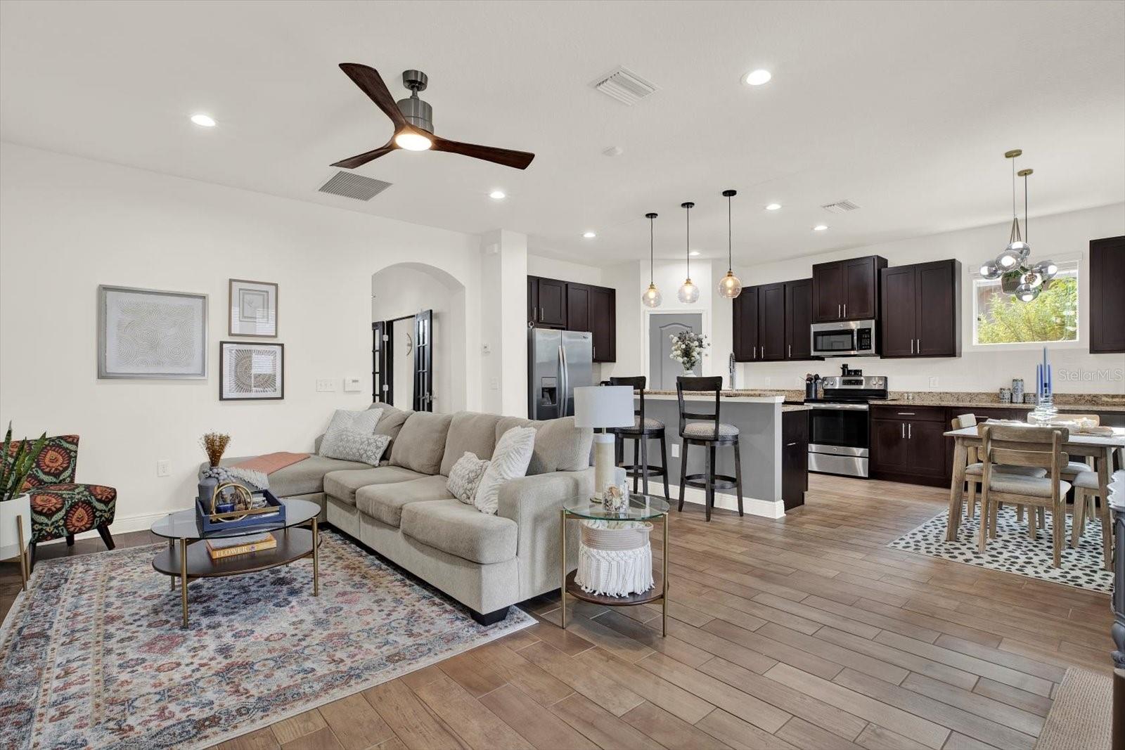 Under contract-accepting backup offers. Welcome to this beautifully maintained home in the highly sought-after Kenwood neighborhood. Built in 2016, this residence offers both timeless charm and modern convenience, all just minutes from downtown St. Petersburg. The inviting front porch and wrought iron fence create excellent curb appeal. Inside, you’ll find wood-look tile floors throughout the main level, decorative baseboards, and arch doorways that add character. An office (or make it a formal dining room!) at the front of the home is filled with natural light, while a spacious guest bedroom sits just across the hall. The heart of the home is the island kitchen featuring designer granite counters, stainless steel appliances and a pantry that flows seamlessly into the great room. French doors open to a covered lanai overlooking the private, fenced backyard—ideal for entertaining or even adding a pool. A paved walkway leads to the detached garage for added convenience. Upstairs, the generous primary suite boasts tray ceilings, abundant windows, an oversized walk-in closet, and a spa-like bath with dual vanities, a soaking tub, and a beautifully tiled shower. Two additional bedrooms, another full bath, and a laundry room complete the second floor. Perfectly located near the Edge District, waterfront parks, museums, and vibrant Downtown dining and festivals, this North Kenwood gem offers both comfort and convenience.