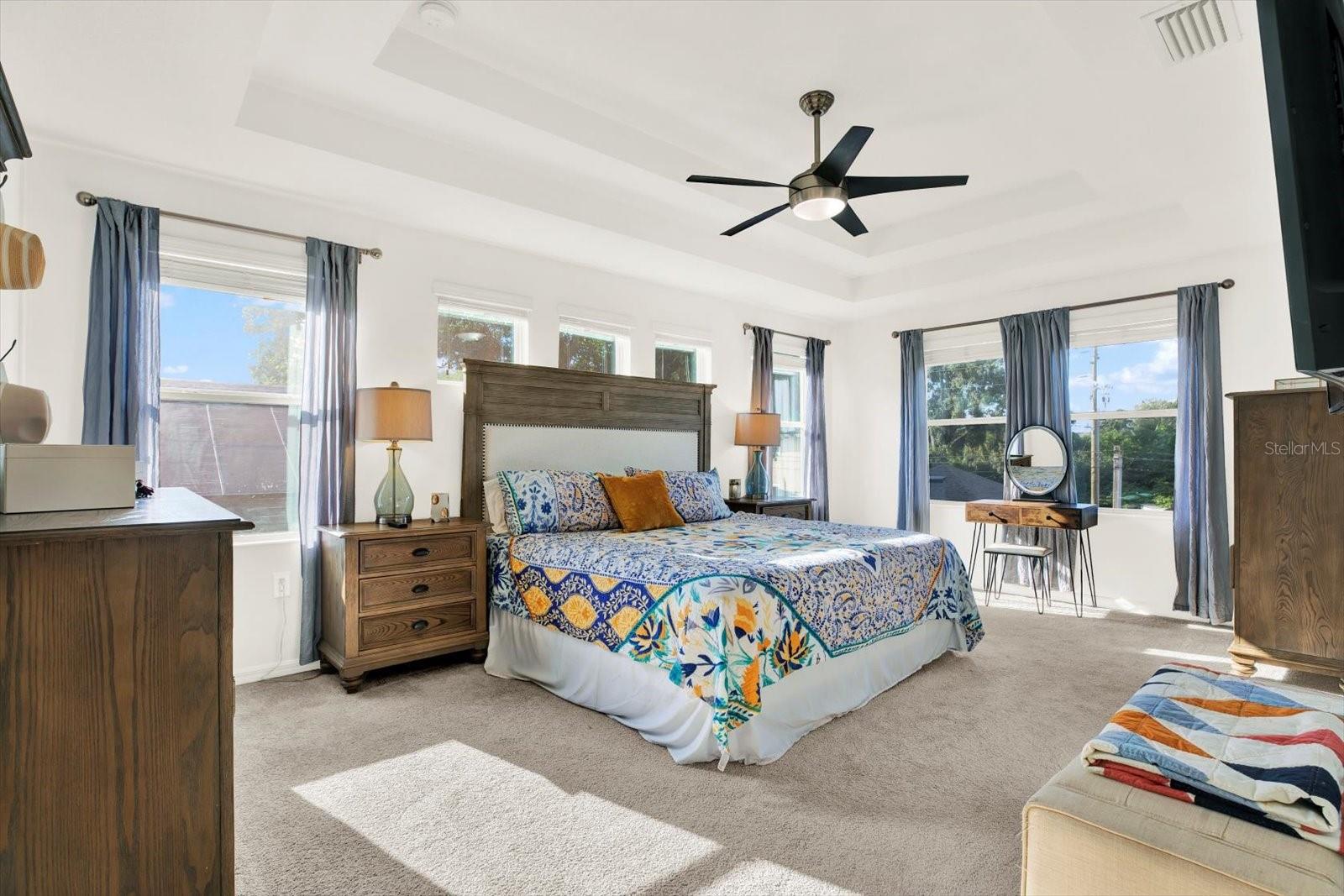 Ceiling Fans(s), High Ceilings, Living Room/Dining Room Combo, PrimaryBedroom Upstairs, Thermostat, Tray Ceiling(s)