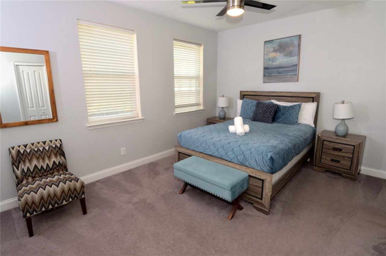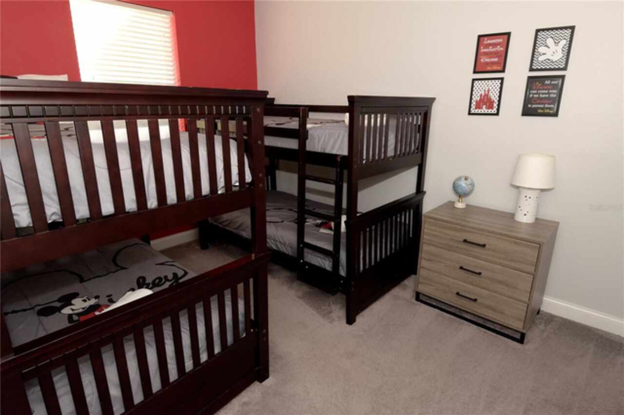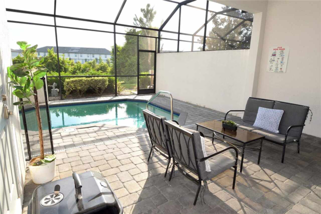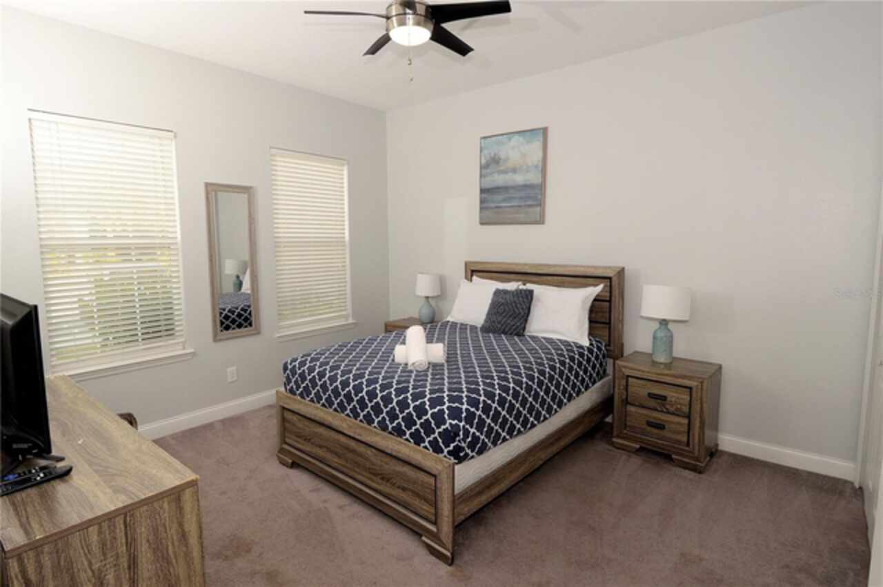 This home shows like a model, with style and elegance! Fully furnished and beautifully decorated, open-concept layout with a private swimming pool, all set in a serene and private location facing the woods. Ideally located for easy access to Disney and all the Orlando attractions, also conveniently close to ChampionsGate, which boasts a diverse range of dining and shopping options. This property presents a fantastic opportunity whether you’re looking to move in, spend your winters in Florida, or generate rental income. The home includes 4 bedrooms and 4 bathrooms, highlighted by a stunning and spacious gourmet kitchen with a large island, stainless steel appliances, granite countertops, and ample cabinet storage. The main bedroom is on the first floor, while the other 3 bedrooms and 2 bathrooms are on the second floor, providing privacy for family or guests. Enjoy outdoor living in your private, screened lanai, complete with a swimming pool, a perfect setting for relaxing and enjoying life. The highly desired Enclaves at Festival is a low-HOA, gated community that offers impressive amenities, including a luxurious clubhouse, zero-entry swimming pool, water park, mini-golf course, complete fitness center, game arcade, community tavern, and a beach volleyball court.
