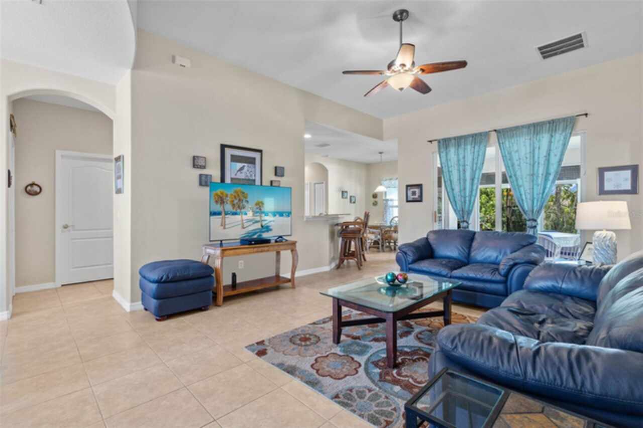 SENSATIONAL 2012 Bristol II home with IMPACT WINDOWS throughout the house and roll down hurricane shutters for the lanai in the gated golf course/active resort of highly desirable Kings Gate, a 55+ community (evacuation zone D - have not been under any evacuation order, more than 20 feet above sea level - storm surge has not been an issue, not in a flood zone - no flood insurance required). The Bristol II features high ceilings and several architectural features to make the home stand out. Located on a VERY LARGE CORNER lot you will have plenty of room to play corn hole, for your dog or what ever fits your lifestyle. House is situated near the 17th tee box/bridge and offers serene views of the trees and green. Step inside this extremely well maintained home and you'll notice the large living room briefly before your eyes are drawn to the MASSIVE lanai and that gorgeous view beyond. The lanai is enclosed by acrylic windows and protected by the electronic roll down shutters. The Bristol II is well liked for the split floor plan with the 2 guest bedrooms/bathroom located on the back left and the generous size master located on the back right of the home. The kitchen features plenty of counter and cabinet space with both eating space in the kitchen and a dining room adjacent to the living room. No question - you're going to spend quite some time in that lanai - enjoying your morning coffee and/or your favorite evening beverage overlooking nature. New Roof - acrylic windows and electric roll down shutters all in 2022. And if you haven't been to Kings Gate before - you're going to love the options for activity (Olympic size heated swimming pool and spa, tennis courts, pickle ball, lawn bowling, shuffle board, bocce, horseshoes, gym, billiards, library, euchre, bingo, bridge, Texas hold em, poker, mahjong and more). The onsite Lions Den restaurant and bar is super convenient and also offers Tuesday night Karaoke and monthly trivia contests. Many residents love the fact that they are just a golf cart ride away from the Winn Dixie shopping plaza that provides you access to grocery store, drug store, bank, restaurants and shopping. Want to explore outside of Kings Gate - your minutes away from the restaurants and shops of downtown Punta Gorda and Fisherman's village. And if you want to explore more of Florida's fun spots you’re near I75 to quickly head north or south. A well protected and maintained home with a massive lanai in a PREMIER gated community is a must see. Call today for a private showing and a golf cart tour of the community/amenities.