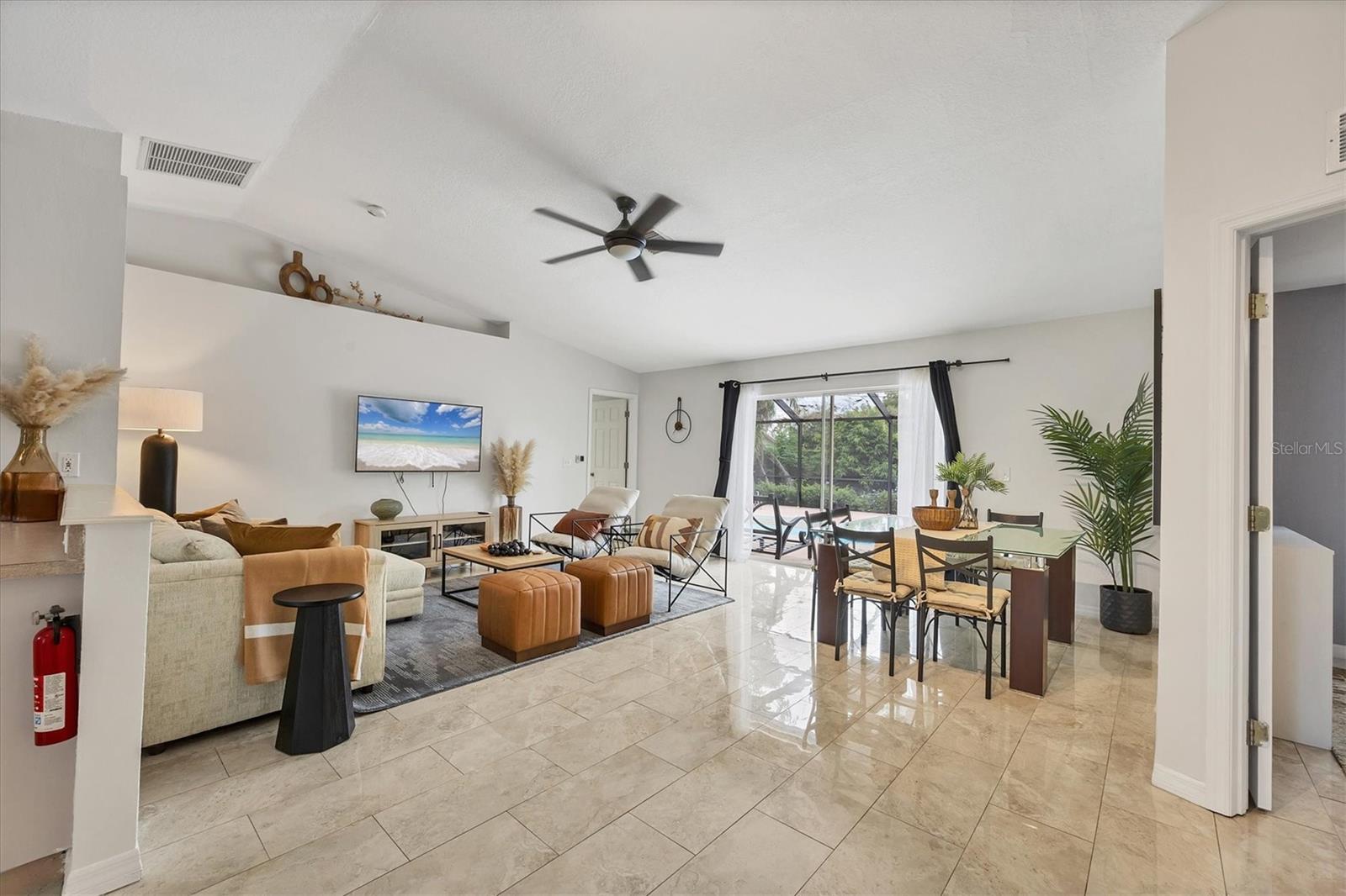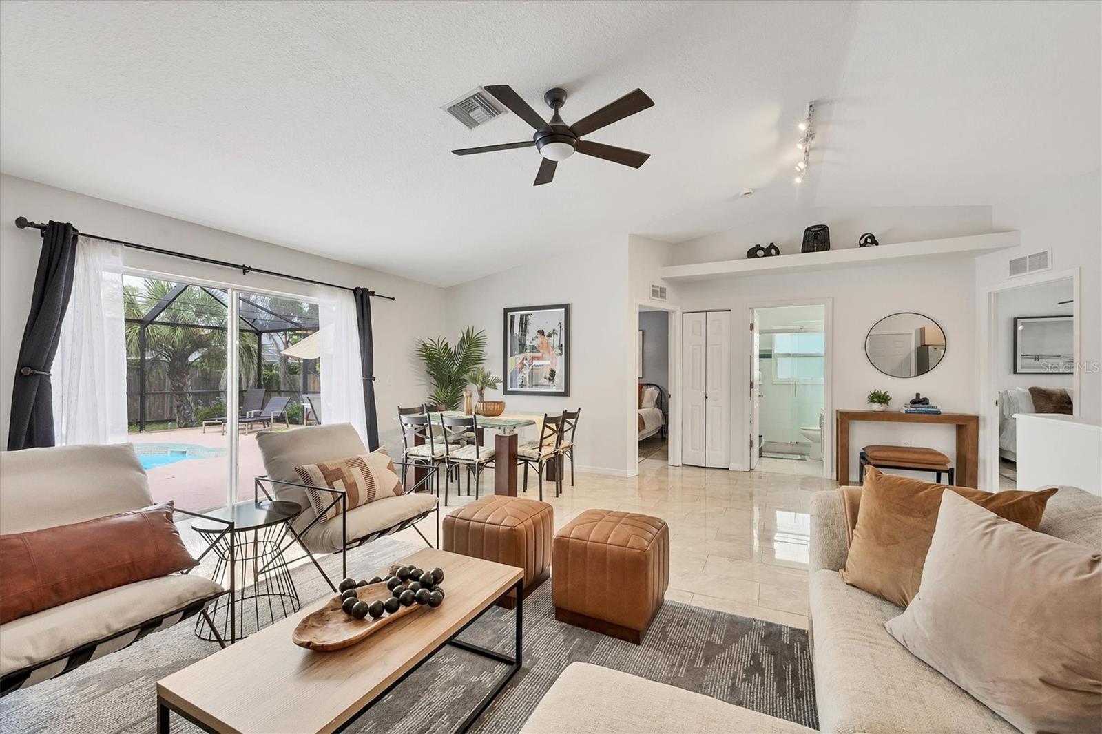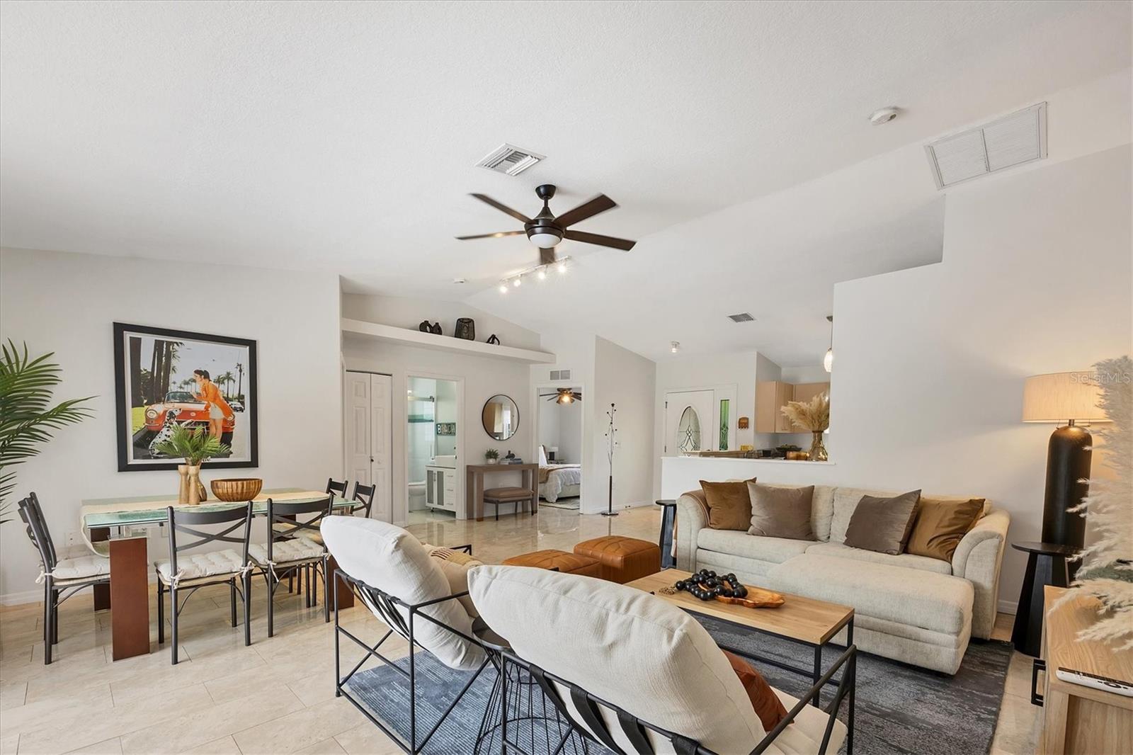 Ceiling Fans(s), Living Room/Dining Room Combo, Open Floorplan, Thermostat, Vaulted Ceiling(s), Walk-In Closet(s), Window Treatments