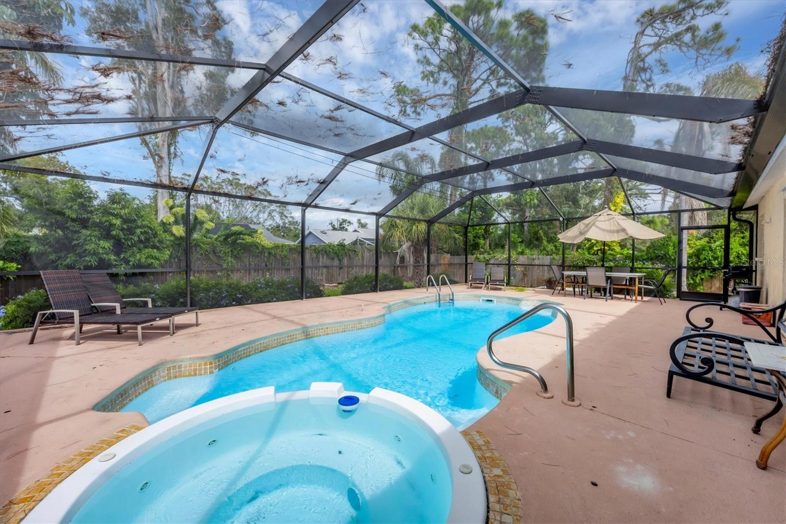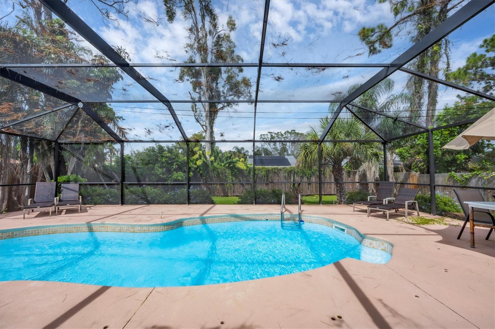 Location! Location! Location! NO FLOOD ZONE!SOLAR PANEL! NEW POOL CAGE!NEW FRONT FENCE PLUS SLIDING GATE! If you want total privacy, come check out this beautiful 3/2 Pool Home. This home has been almost fully updated, roof 12/2018 with transferable warranty, AC 6/2016, AC ducts 12/2018, bathrooms and flooring throughout the house 3/2017, water heater 2019, dishwasher 11/2020, full privacy fence 6/2020 and the house has been hooked up to public water 2019 and public sewer 2020. No need to worry about hurricanes. Hurricane Shutters have been installed 10/2020. You will find a tropical oasis in your totally private back yard. Pool with hot tub and large deck is surrounded by mature trees, including fruit trees, mango, Persian lime, bananas, papaya, avocado trees and pineapples. Walking distance to Riverview High School, shopping, 2 miles to the very famous and gorgeous Siesta Key Beach and just 10 minutes to beautiful downtown Sarasota. No deed restrictions.Conveniently located minutes away from I-75 and Tamiami Trail, this property offers excellent accessibility. Sarasota itself is a fantastic place to call home, with its central location providing easy access to shopping, dining, golfing, entertainment, medical facilities, award-winning beaches. Plus, you'll have effortless access to several airports, including Punta Gorda, Sarasota, Fort Myers, and Tampa.Experience the best of Florida with nearby beaches, golf courses, and outdoor recreational activities just a short drive away. Don't miss out on the chance to own this extraordinary home.