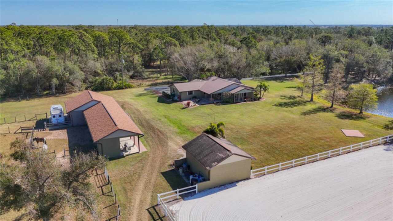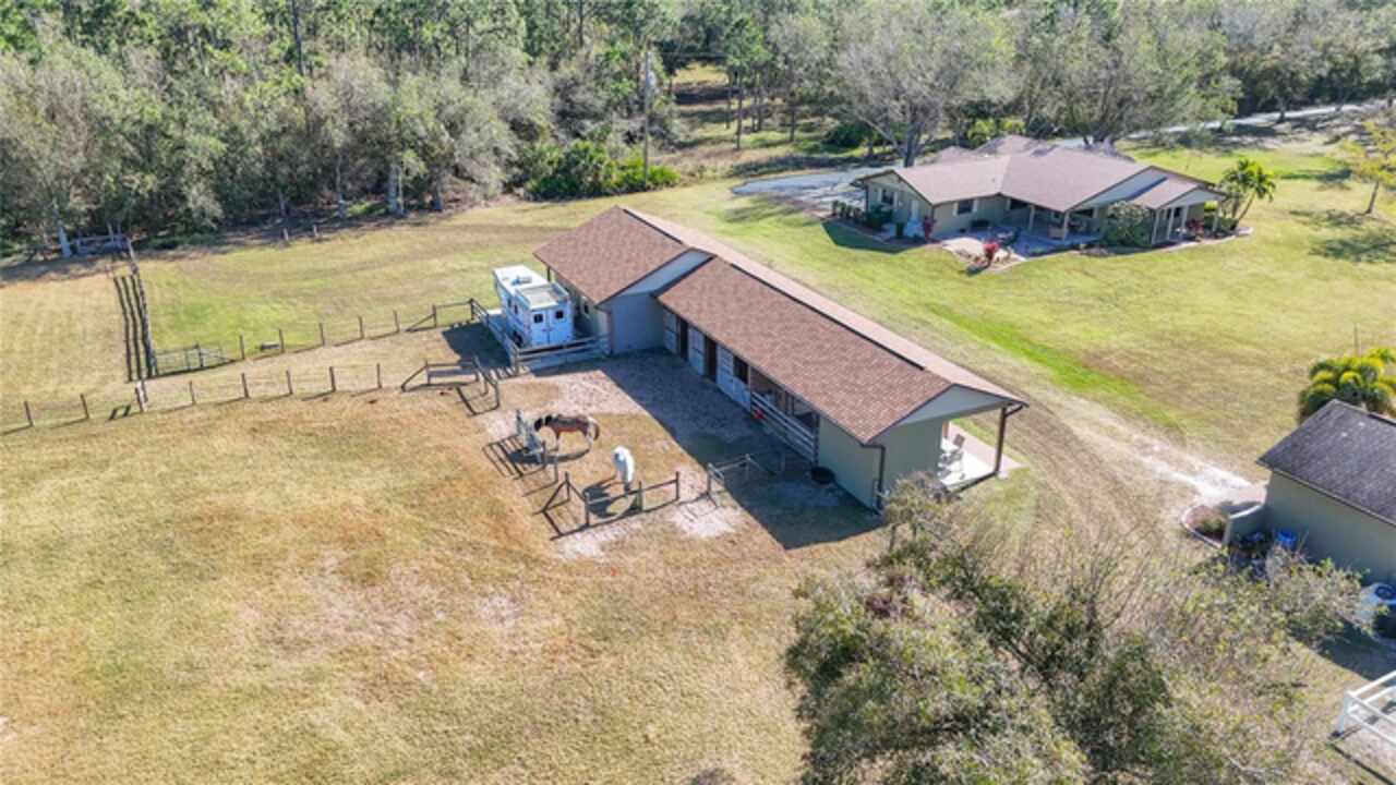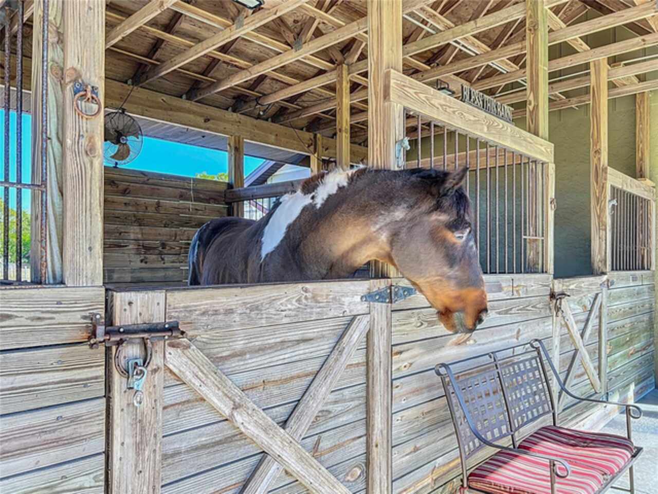 This beautiful 8.48-acre horse farm is a true gem, thoughtfully designed and meticulously maintained. The front 5.2 acres welcomes you with a long, scenic drive through towering oaks, leading to a well-kept 3-bedroom, 2-bath home. The property features an impressive barn with 3 spacious stalls, an air-conditioned tack and separate air-conditioned feed room, a workshop, and an additional air-conditioned storage room. Conveniently located next to the stalls is a covered wash station with hot water, ideal for grooming after a ride. Up front, you’ll find a top-notch arena, perfect for training or simply enjoying time with your horses. Moving to the back of the property, there are 4 more stalls available for boarding, along with another tack and feed room and an additional wash station for convenience. The property is fenced with electric fencing and boasts 9 fenced-in paddocks, each equipped with gates that allow horses to move freely between sections. This thoughtfully designed layout offers ample space for horses to graze and roam comfortably, making it an ideal location for any equestrian enthusiast.