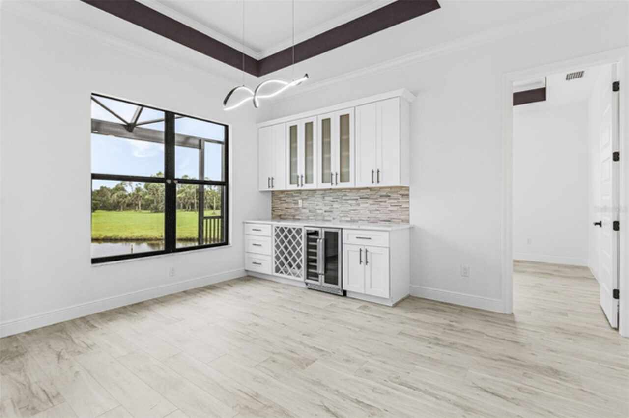 Beautiful New Custom Waterfront Pool Home! * LOCATION, LOCATION, LOCATION: The privacy of Sandpiper Lake and an extensive green Belt behind your home! * Highly sought after SOUTHERN rear facing property! * 90 degree glass slider in the Great Room! * Extra custom 42" Dove tail cabinetry! * Additional upgrades galore! * A home built with your safety in mind. A Floor elevation of 11.3', well above the FEMA requirement! Location is every bit as important as the home you choose. That's exactly why we selected this quiet, Southern facing, cul-de-sac property on Gijon Ln. Future homes cannot be built on a vast majority of the land directly behind you thanks to the lake and the Green Belt. You'll enjoy the perfect sun angle on your lanai and pool area year around. Easy access to Burnt Store Rd too! This location checks all the boxes! A FLOOR PLAN that makes sense. Not every home is the same...We've modified a very popular plan, taking valuable input from past clients. You'll be the first to enjoy this FRESH LOOK that offers nearly 2, 000 s.f. with 3 bedrooms+den, 3 bathrooms, and a 3 stall garage. But this home offers sooo much more! Your 8' tall 90 degree glass slider pushes back out of sight, opening up your living area and inviting the outdoors inside your beautiful home! Along with your upgraded "Picture frame" pool enclosure, you truly have an unobstructed view of the lake and green space. This design offers access to your master suite from both the front and rear of the home, plus your laundry room leads directly into your spacious master closet! On the opposite side of the home, you'll find that each bedroom has its own bathroom. No need to share! Upgrades galore! In addition to the 90-degree slider in the great room, you'll enjoy a gorgeous kitchen and dining room with level IV Britus Quartz countertops, an abundance of custom dovetail cabinetry with glass inserts, and soft closing doors and drawers. We've added extra cabinets in the dining room including a wine/beverage cooler! A Combo wall oven/microwave, flat cooktop, an upgraded fridge, and a very quiet dishwasher. A "Picture frame" pool enclosure around your 38' long pool with water jets and a Sun Shelf! Vinyl plank Lanai ceiling, Modern LED lighting throughout the home, a ring doorbell, epoxied garage flooring, french doors instead of a slider from the master bedroom out to the pool, as well as many more upgrades. A grand entrance with rock accents, beautiful glass front doors, a Bahama Shutter, and LED Bar lighting! This home was built with your safety in mind. A Finished floor elevation of 11.3'!!! Metal roof, Impact windows and doors. A BEAUTIFUL HOME on a quiet cul-de-sac alongside other new homes, in the beautiful community of Burnt Store Lakes. Walk, bike, or drive a golf cart around all the fish filled lakes. There's even a kayak launch and Community Park! Nearby is Burnt Store Marina where there's (2) waterfront restaurants, a full service marina and boat storage, golf course, and gym. Store your boat at the Marina and you're in open Gulf water within 10 minutes!! Burnt Store Rd can take you N to Historic DT Punta Gorda or S to Ft. Myers. Only 16 minutes from the PG Airport. Own a vacant lot in BSL, we'll consider purchasing it as part of the transaction. Builder to convey all applicable warranties, including mechanical.