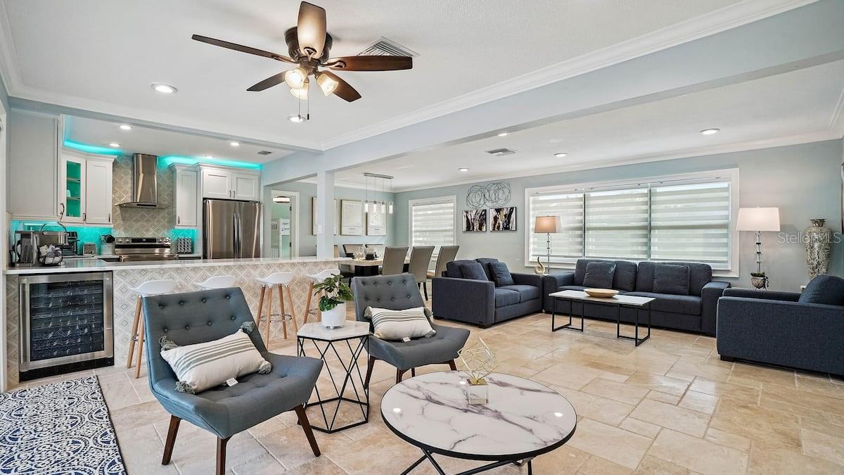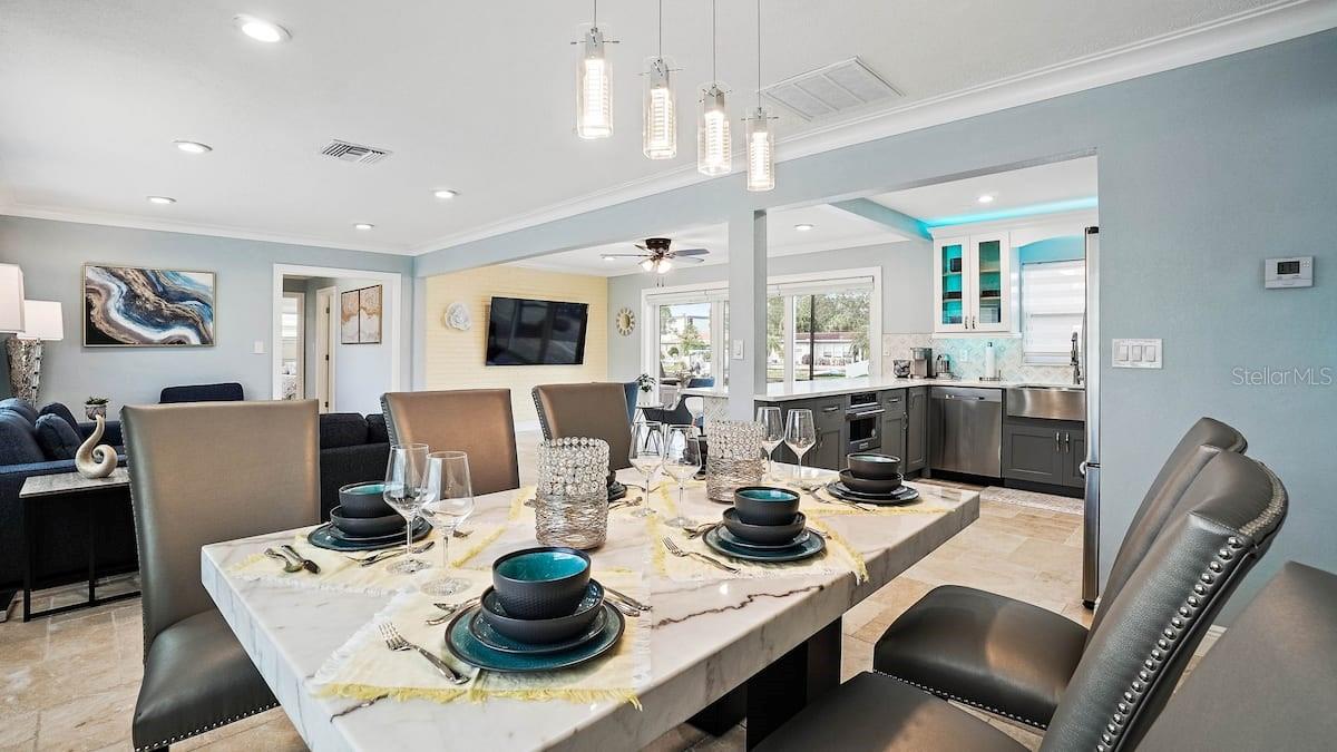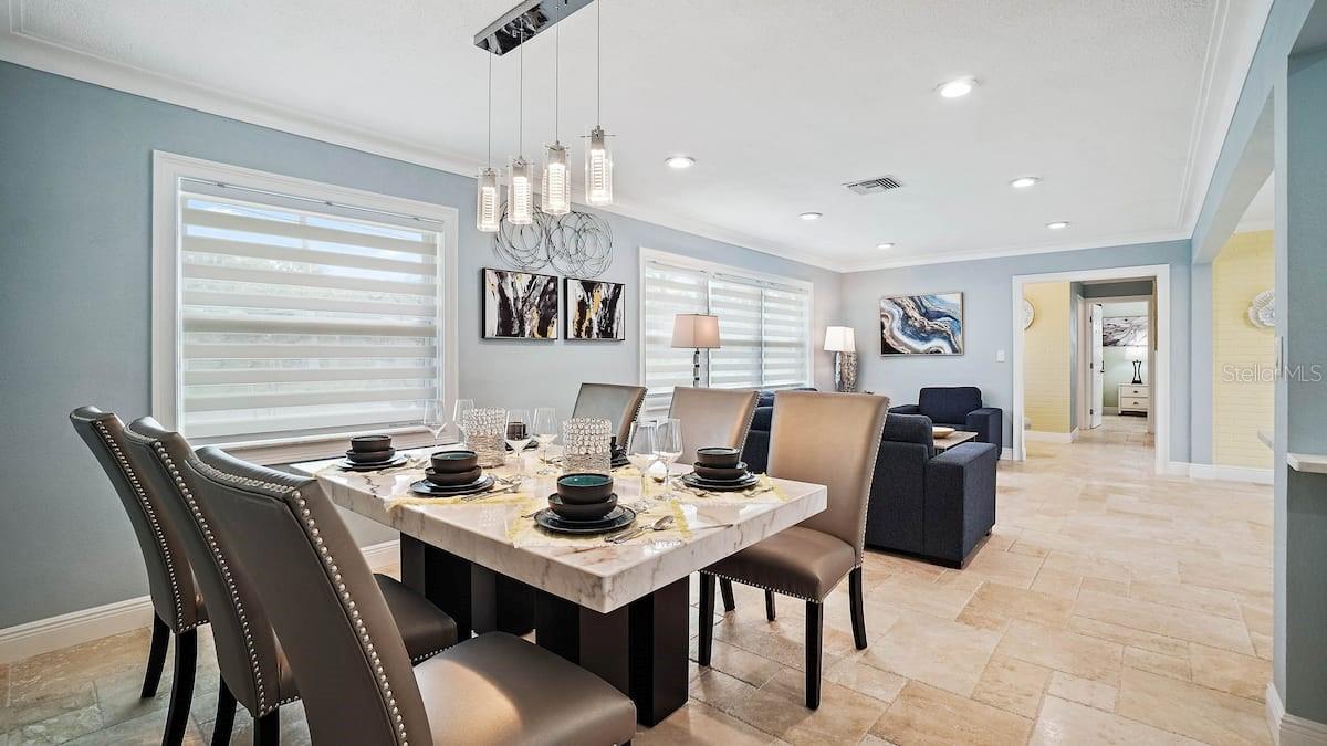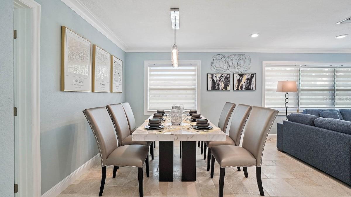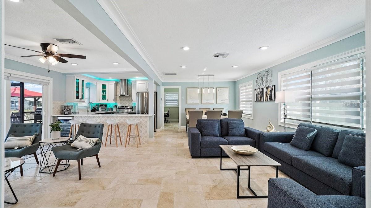 Crown Molding, Living Room/Dining Room Combo, Open Floorplan, Solid Wood Cabinets, Stone Counters