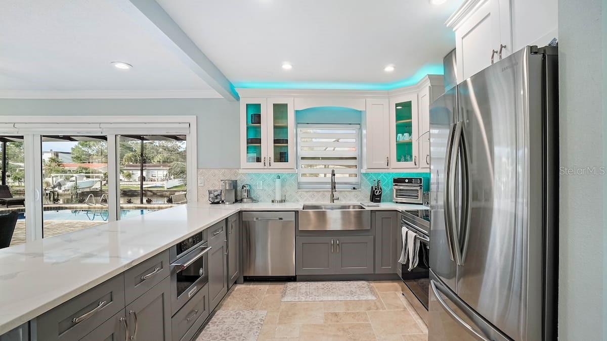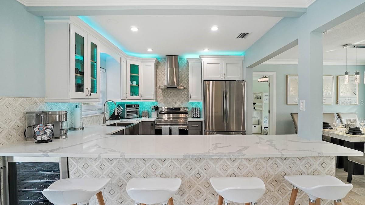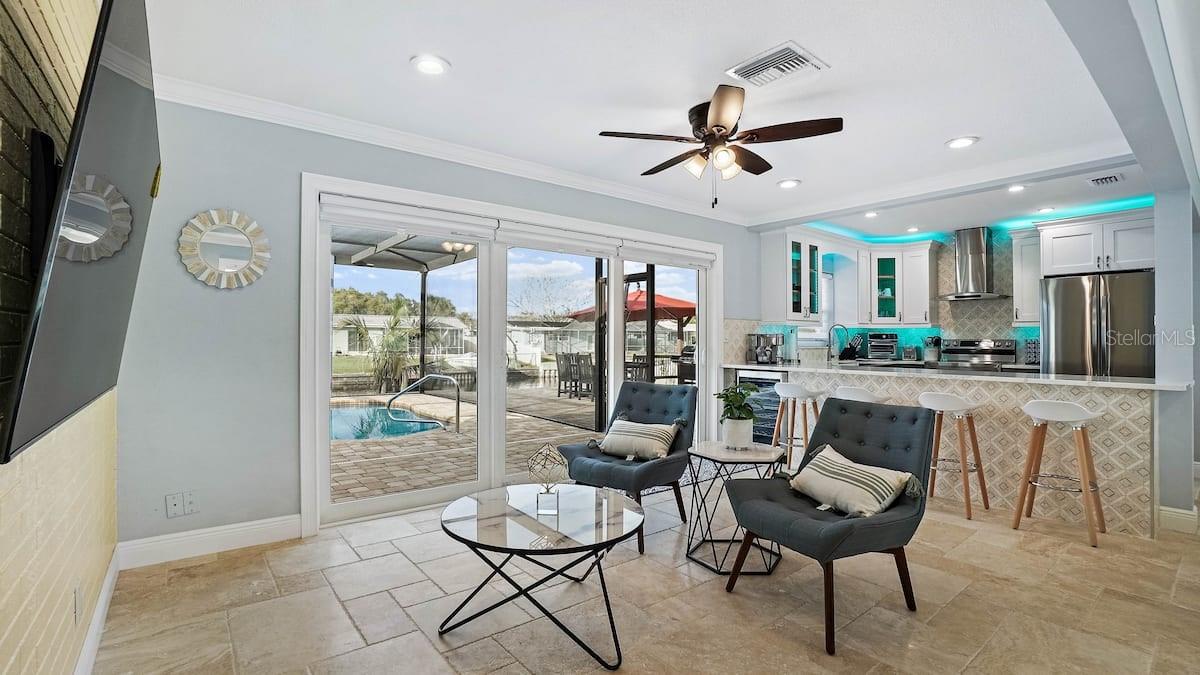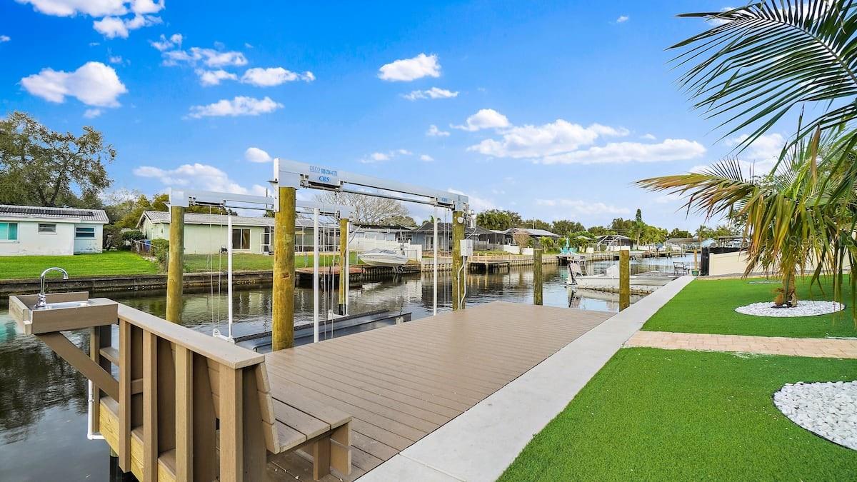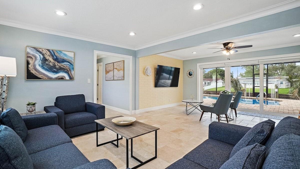 Welcome to Waterfront Living! This stunning, fully renovated 3-bedroom, 3-bathroom waterfront home is move-in ready and designed for both comfort and luxury. Featuring an open, light-filled floor plan, every detail has been thoughtfully upgraded—from the elegant travertine flooring to the high-end finishes throughout. The spacious primary suite is bathed in natural light and highlighted by custom barn doors that open to a spa-like bathroom with dual vanities, quartz countertops, and a walk-in shower. The gourmet kitchen is a true showstopper, featuring sleek quartz counters, solid wood cabinetry, and stainless steel appliances—perfect for cooking, entertaining, and hosting family or friends. Sliding doors lead seamlessly to the enclosed pool and lanai, offering the ideal setting for year-round outdoor living. With direct waterfront access, boating enthusiasts will appreciate the private dock and quick, easy access to Tampa Bay—just a short ride away. Located just minutes from vibrant downtown St. Pete, award-winning Gulf beaches, dining, shopping, and entertainment, this exceptional home captures the best of Florida living. Don’t miss your opportunity to own this waterfront dream home—schedule your private showing