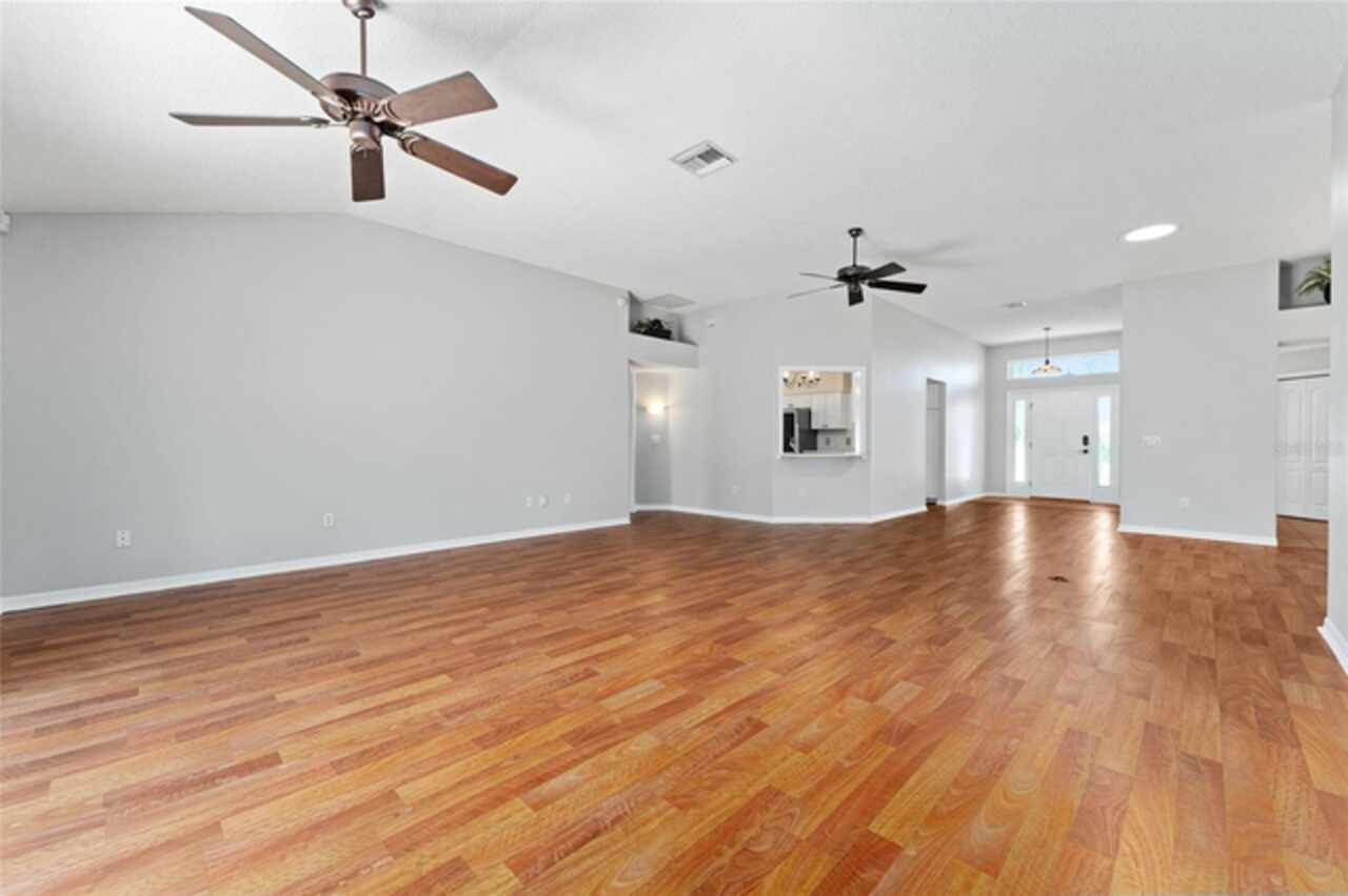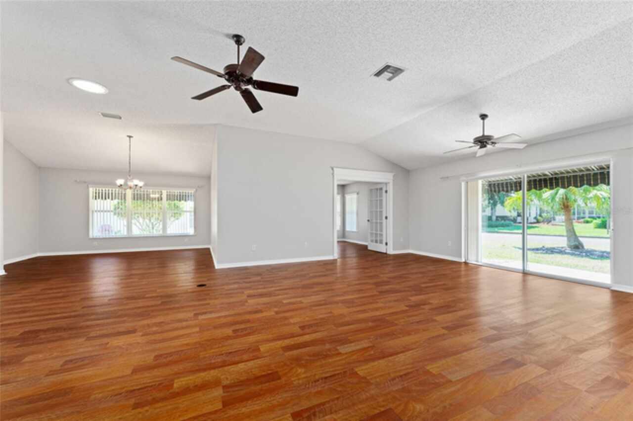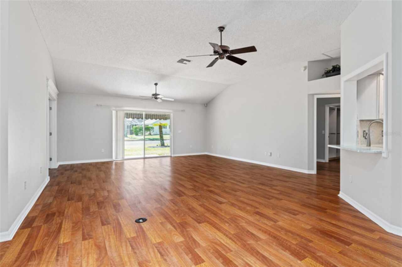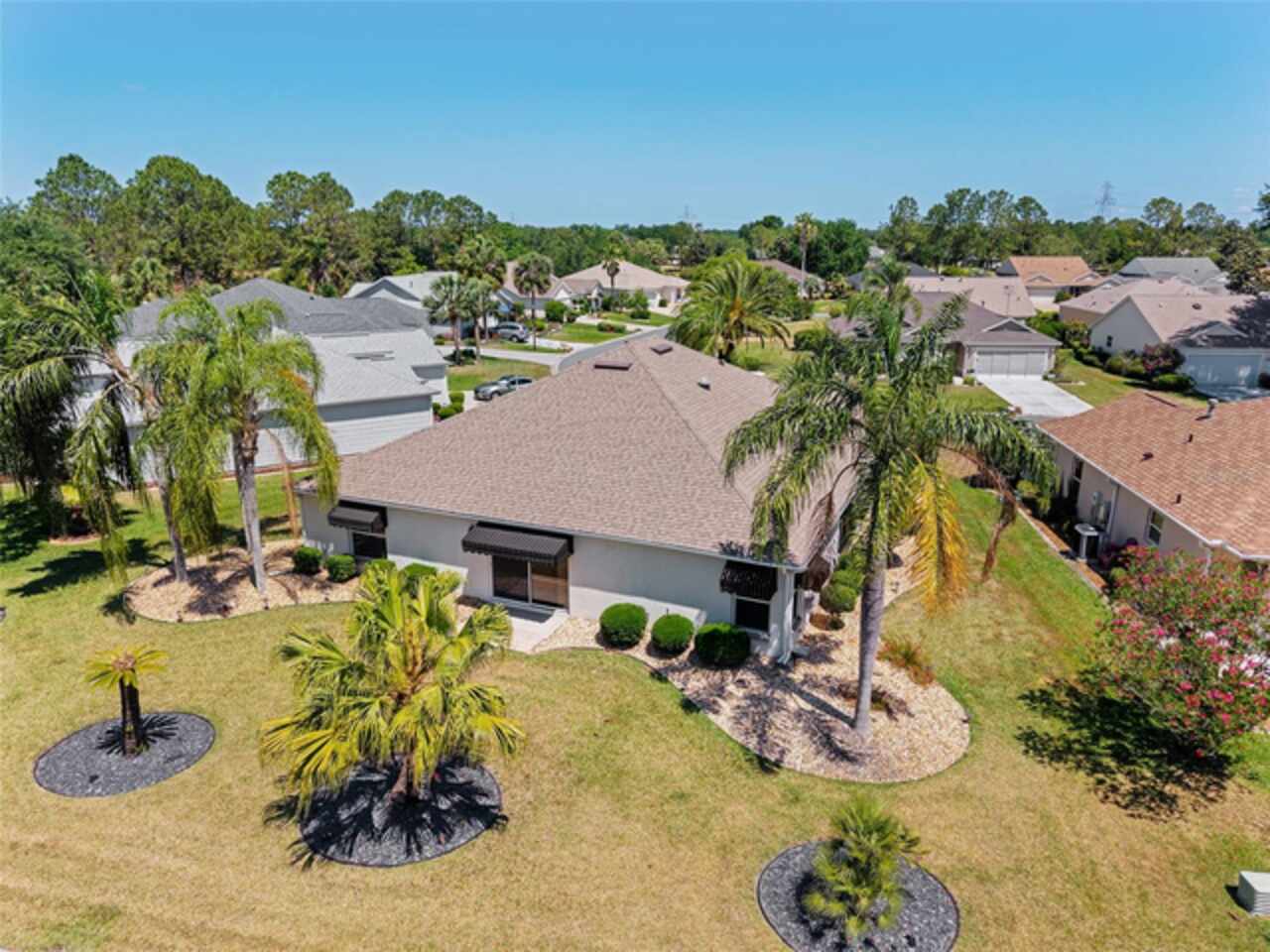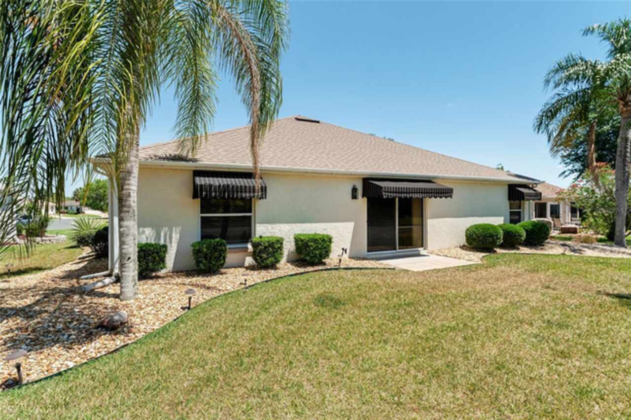 Under contract-accepting backup offers. UPDATE 10/23/2025: Seller Will Consider OWNER FINANCING! Discover the PERFECT BLEND of UNIQUE DESIGN, COMFORT, and PRIVACY in this expanded Designer located in the VILLAGE of SANTIAGO! Perfectly positioned on an oversized 0.218-acre lot, this well-maintained 3 BR/2 BA/2 Car Garage home offers privacy w/ NO HOMES BEHIND. Enjoy charming CURB APPEAL highlighted by an ARCH SHINGLE HIP ROOF (2019), CONCRETE BLOCK & STUCCO exterior, and MATURE LANDSCAPING featuring ROCK-FILLED BEDS & a variety of palm trees. Prepare to be impressed by the METAL GATE ENTRY leading to the elegant COVERED FRONT PORCH featuring a concrete patio enclosed by a decorative CBS half-wall w/ 2 mini-columns. Stylish outdoor lighting mounted atop the columns illuminate this area in the evenings. Accentuated by matching sidelights & an overhead transom, the welcoming front door has a full glass storm door which provides for protection from the weather elements. Step inside the FOYER and experience the spacious ambiance of this OPEN CONCEPT, SPLIT BEDROOM FLOOR PLAN w/ 2145 SF of living area. The sightline is perfectly centered from the FOYER through the LIVING ROOM to the SLIDING GLASS DOORS with SOUTHERN REAR EXPOSURE. Natural light is generous in the expansive LIVING ROOM which exudes warmth w/ VAULTED CEILINGS & rich WOOD LAMINATE FLOORING. Adjoining the Living Room, the DINING ROOM is brightly illuminated by natural light from 3 large EASTERN-FACING windows & a SOLAR TUBE. An INDOOR LAUNDRY is conveniently tucked behind closet doors in the hallway to the Dining Room. The KITCHEN offers a culinary paradise featuring WHITE CABINETS with PULL OUTS & BUILT-IN PANTRY, luxurious QUARTZ COUNTERTOPS w/ BACKSPLASH which creates a sleek & cohesive look, contemporary DROP PENDANT LIGHTING over the single basin SS sink w/ disposal button & pass through window, and a cozy BREAKFAST NOOK w/ a convenient BUILT-IN BUFFET CABINET providing storage galore! The PRIMARY BEDROOM (rear SW corner) features VAULTED CEILINGS, a WALK-IN CLOSET w/ a CUSTOM CLOSET ORGANIZATION system, and an ENSUITE BATHROOM boasting DUAL SINKS/ VANITY w/ elegant WATERFALL FAUCETS, a bright SOLAR TUBE, and a TILED WALK-IN SHOWER w/ a built-in seat & an oversized, handheld showerhead. The guest wing provides welcoming accommodations featuring BEDROOM #2 (front) w/ a closet & an adjoining BATHROOM #2 offering MATCHING QUARTZ COUNTERTOPS, TILED TUB/SHOWER COMBO, & a GRAB BAR for enhanced safety. Dual FRENCH DOORS framed w/ classic woodworking finishes present an elegant entrance to BEDROOM #3 (no closet) just off of the LR in the rear of the home (SE corner). The WOOD LAMINATE FLOORING, ample NATURAL LIGHT from dual windows, and an illuminating SOLAR TUBE make this a comfortable space. Step outside the SLIDING GLASS DOORS in the rear of the LR to the REAR PATIO, the ideal place for enjoying Florida’s balmy winter evenings. The spacious 2-CAR GARAGE includes a motorized GARAGE DOOR SCREEN and 2 exterior access keypads. Add’l features include: PAID BOND, WHOLE-HOUSE WATER FILTRATION SYSTEM, DOUBLE PANE windows, HVAC w/ HEPA filter, economical GAS HEATING & DRYER, & IRRIGATION SYSTEM. This lovely abode is conveniently located just minutes from vibrant SPANISH SPRINGS & LAKE SUMTER LANDING town squares, the renowned SAVANNAH CENTER, and El Santiago & Tierra Del Sol rec centers. Homes of this quality and unique charm are rarely available. Grab your “Slice of Paradise” now before it is too late! Call today!
