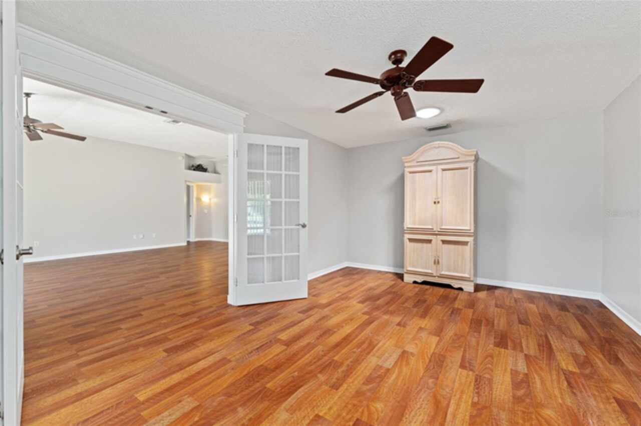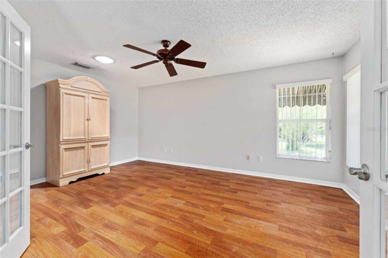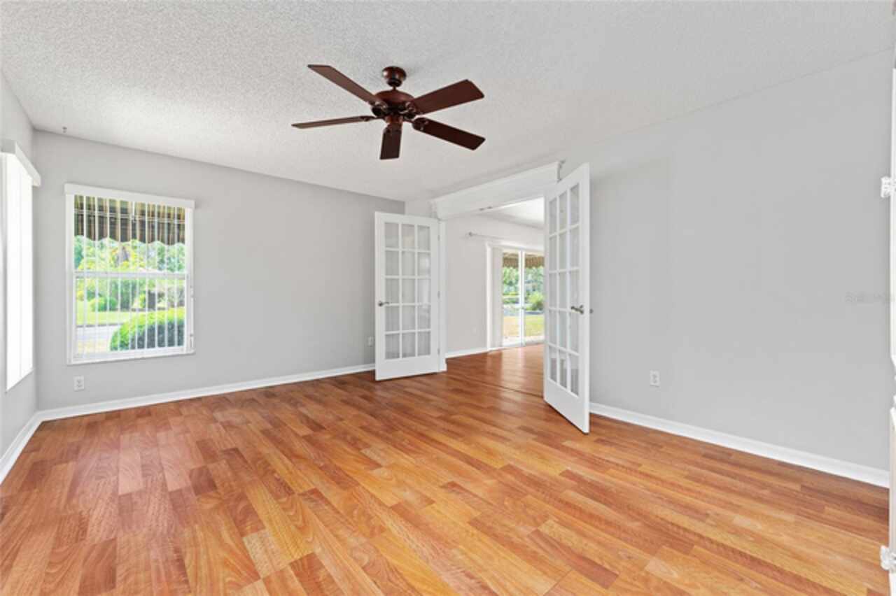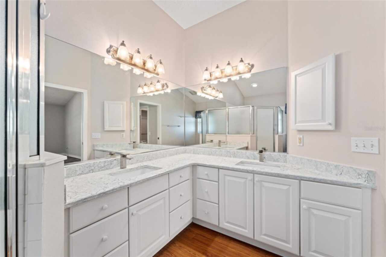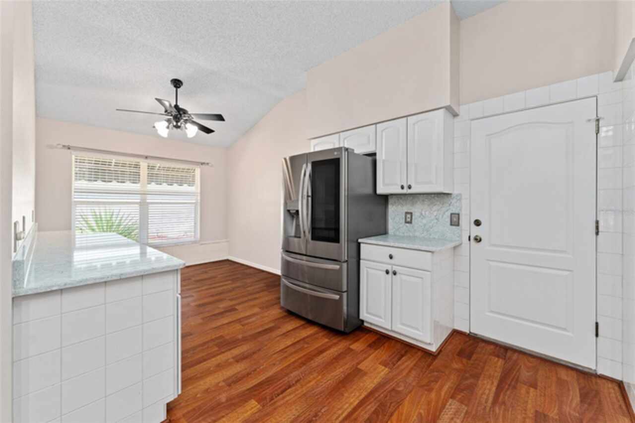 Under contract-accepting backup offers. UPDATE 10/23/2025: Seller Will Consider OWNER FINANCING! Discover the PERFECT BLEND of UNIQUE DESIGN, COMFORT, and PRIVACY in this expanded Designer located in the VILLAGE of SANTIAGO! Perfectly positioned on an oversized 0.218-acre lot, this well-maintained 3 BR/2 BA/2 Car Garage home offers privacy w/ NO HOMES BEHIND. Enjoy charming CURB APPEAL highlighted by an ARCH SHINGLE HIP ROOF (2019), CONCRETE BLOCK & STUCCO exterior, and MATURE LANDSCAPING featuring ROCK-FILLED BEDS & a variety of palm trees. Prepare to be impressed by the METAL GATE ENTRY leading to the elegant COVERED FRONT PORCH featuring a concrete patio enclosed by a decorative CBS half-wall w/ 2 mini-columns. Stylish outdoor lighting mounted atop the columns illuminate this area in the evenings. Accentuated by matching sidelights & an overhead transom, the welcoming front door has a full glass storm door which provides for protection from the weather elements. Step inside the FOYER and experience the spacious ambiance of this OPEN CONCEPT, SPLIT BEDROOM FLOOR PLAN w/ 2145 SF of living area. The sightline is perfectly centered from the FOYER through the LIVING ROOM to the SLIDING GLASS DOORS with SOUTHERN REAR EXPOSURE. Natural light is generous in the expansive LIVING ROOM which exudes warmth w/ VAULTED CEILINGS & rich WOOD LAMINATE FLOORING. Adjoining the Living Room, the DINING ROOM is brightly illuminated by natural light from 3 large EASTERN-FACING windows & a SOLAR TUBE. An INDOOR LAUNDRY is conveniently tucked behind closet doors in the hallway to the Dining Room. The KITCHEN offers a culinary paradise featuring WHITE CABINETS with PULL OUTS & BUILT-IN PANTRY, luxurious QUARTZ COUNTERTOPS w/ BACKSPLASH which creates a sleek & cohesive look, contemporary DROP PENDANT LIGHTING over the single basin SS sink w/ disposal button & pass through window, and a cozy BREAKFAST NOOK w/ a convenient BUILT-IN BUFFET CABINET providing storage galore! The PRIMARY BEDROOM (rear SW corner) features VAULTED CEILINGS, a WALK-IN CLOSET w/ a CUSTOM CLOSET ORGANIZATION system, and an ENSUITE BATHROOM boasting DUAL SINKS/ VANITY w/ elegant WATERFALL FAUCETS, a bright SOLAR TUBE, and a TILED WALK-IN SHOWER w/ a built-in seat & an oversized, handheld showerhead. The guest wing provides welcoming accommodations featuring BEDROOM #2 (front) w/ a closet & an adjoining BATHROOM #2 offering MATCHING QUARTZ COUNTERTOPS, TILED TUB/SHOWER COMBO, & a GRAB BAR for enhanced safety. Dual FRENCH DOORS framed w/ classic woodworking finishes present an elegant entrance to BEDROOM #3 (no closet) just off of the LR in the rear of the home (SE corner). The WOOD LAMINATE FLOORING, ample NATURAL LIGHT from dual windows, and an illuminating SOLAR TUBE make this a comfortable space. Step outside the SLIDING GLASS DOORS in the rear of the LR to the REAR PATIO, the ideal place for enjoying Florida’s balmy winter evenings. The spacious 2-CAR GARAGE includes a motorized GARAGE DOOR SCREEN and 2 exterior access keypads. Add’l features include: PAID BOND, WHOLE-HOUSE WATER FILTRATION SYSTEM, DOUBLE PANE windows, HVAC w/ HEPA filter, economical GAS HEATING & DRYER, & IRRIGATION SYSTEM. This lovely abode is conveniently located just minutes from vibrant SPANISH SPRINGS & LAKE SUMTER LANDING town squares, the renowned SAVANNAH CENTER, and El Santiago & Tierra Del Sol rec centers. Homes of this quality and unique charm are rarely available. Grab your “Slice of Paradise” now before it is too late! Call today!