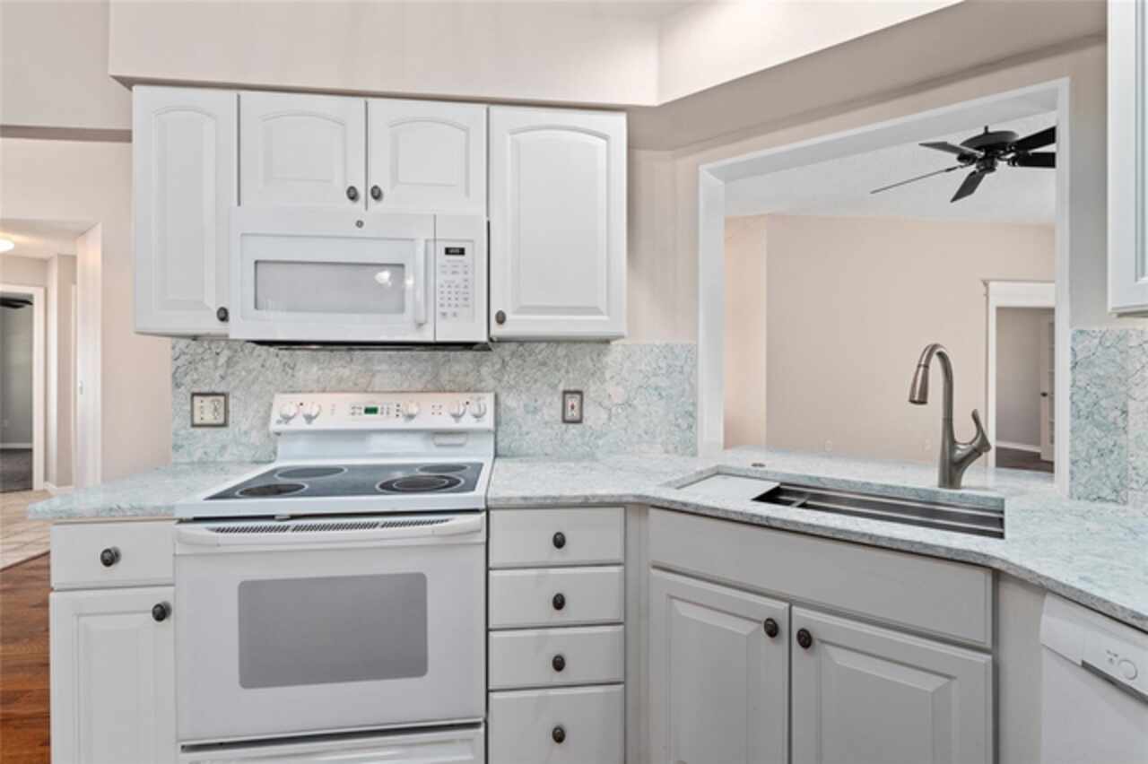 Attic Ventilator, Ceiling Fans(s), Eat-in Kitchen, Living Room/Dining Room Combo, Split Bedroom, Stone Counters, Thermostat, Vaulted Ceiling(s), Walk-In Closet(s), Window Treatments