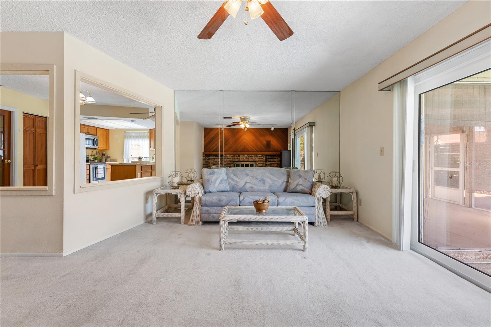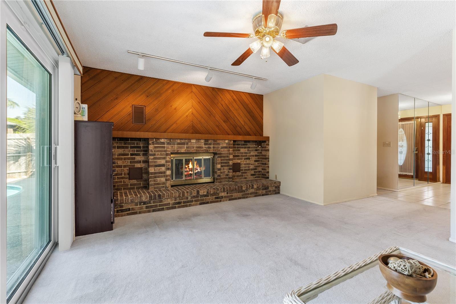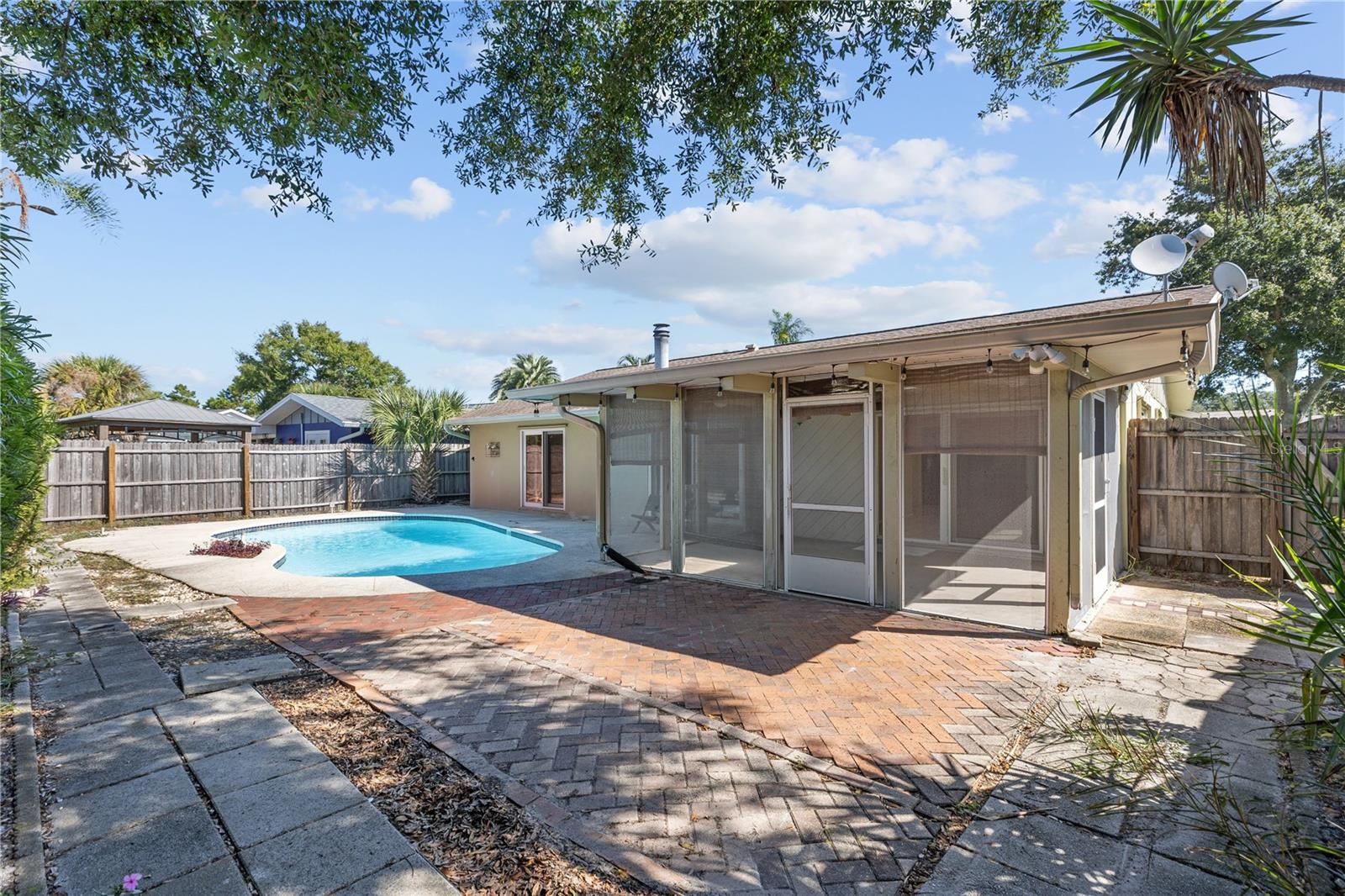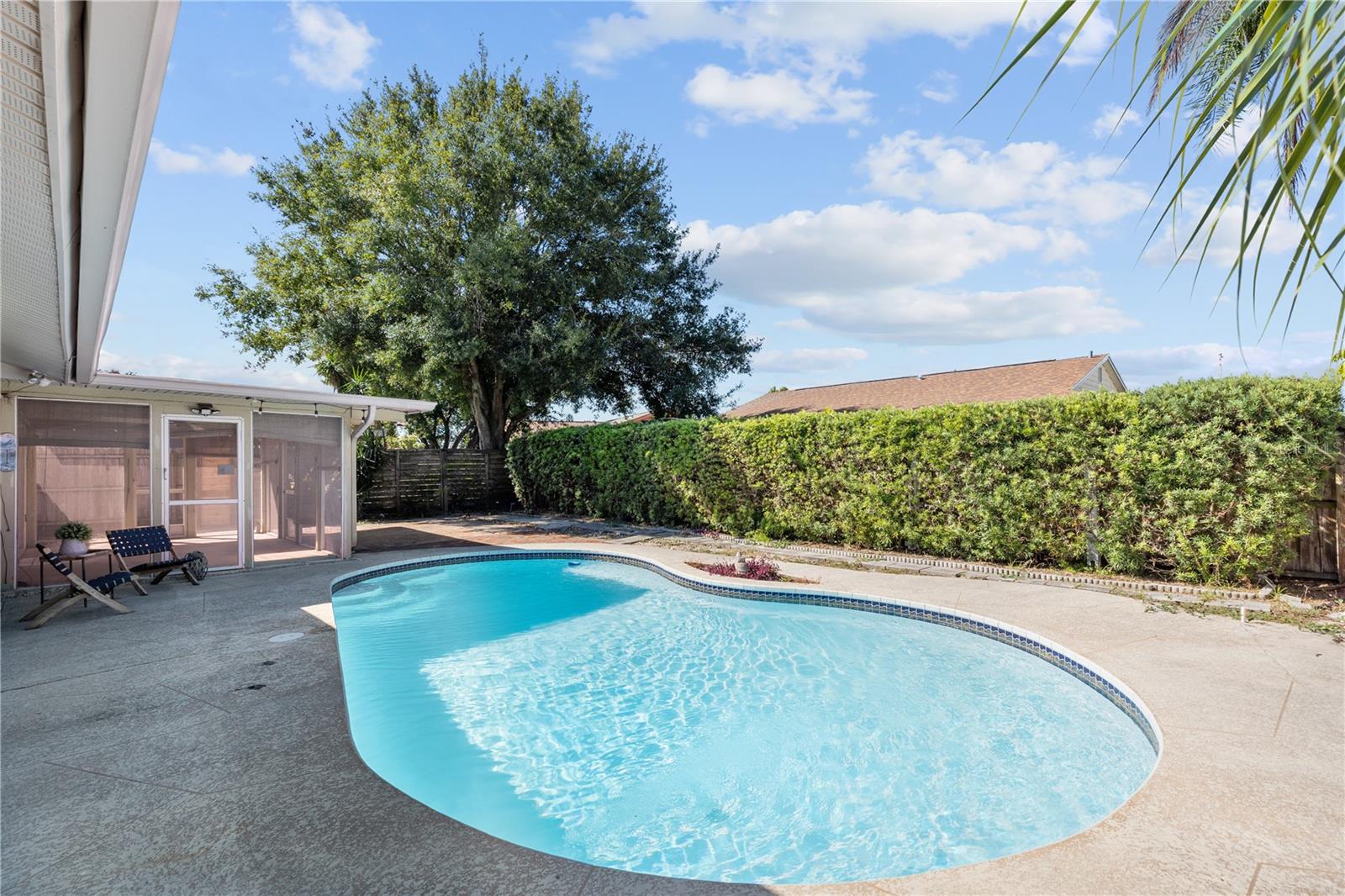 Discover this rare gem in one of Clearwater’s most sought-after neighborhoods — perfectly positioned across from a beautiful, expansive park and UNDER APPRAISED MARKET VALUE! This 3 bed/ 2 bath home offers the perfect balance of style, comfort, and convenience, wrapped in a beautifully maintained property with updates in all the right places while being ready for your personal touch. From the moment you arrive, the large entryway and stunning solid wood front door set the tone for what lies inside. Step into a spacious, light-filled interior featuring a dramatic brick, wood-burning fireplace that spans an entire wall — the perfect centerpiece for the inviting living room. The primary suite is a private sanctuary with pool views, two separate closets, and a fully renovated en suite bathroom with a luxurious walk-in shower. Sliding glass doors in both the bedroom and dining room make it easy to enjoy seamless indoor-outdoor living. Step outside to your own private paradise with a fully fenced yard, an enclosed lanai, and a sparkling pool — perfect for relaxing weekends or entertaining guests. The inside utility room includes a 2-person desk station, ideal for remote work or study. Other highlights include updated windows and doors (2015), hurricane shutter coverings, and an updated main bath. The oversized 2-car garage also includes extra storage space. Located in the Woodgate neighborhood of Clearwater and within a 10 minute drive to quintessential Dunedin. You will find all the shops, restaurants, bars, galleries, and entertainment you could desire. Whether you're enjoying sunsets from the lanai, morning walks across the street in the park, or hosting friends and family by the pool, this home checks every box. Don’t miss your chance to live the Florida lifestyle in a prime Clearwater location — don’t miss the opportunity to make this beauty yours!