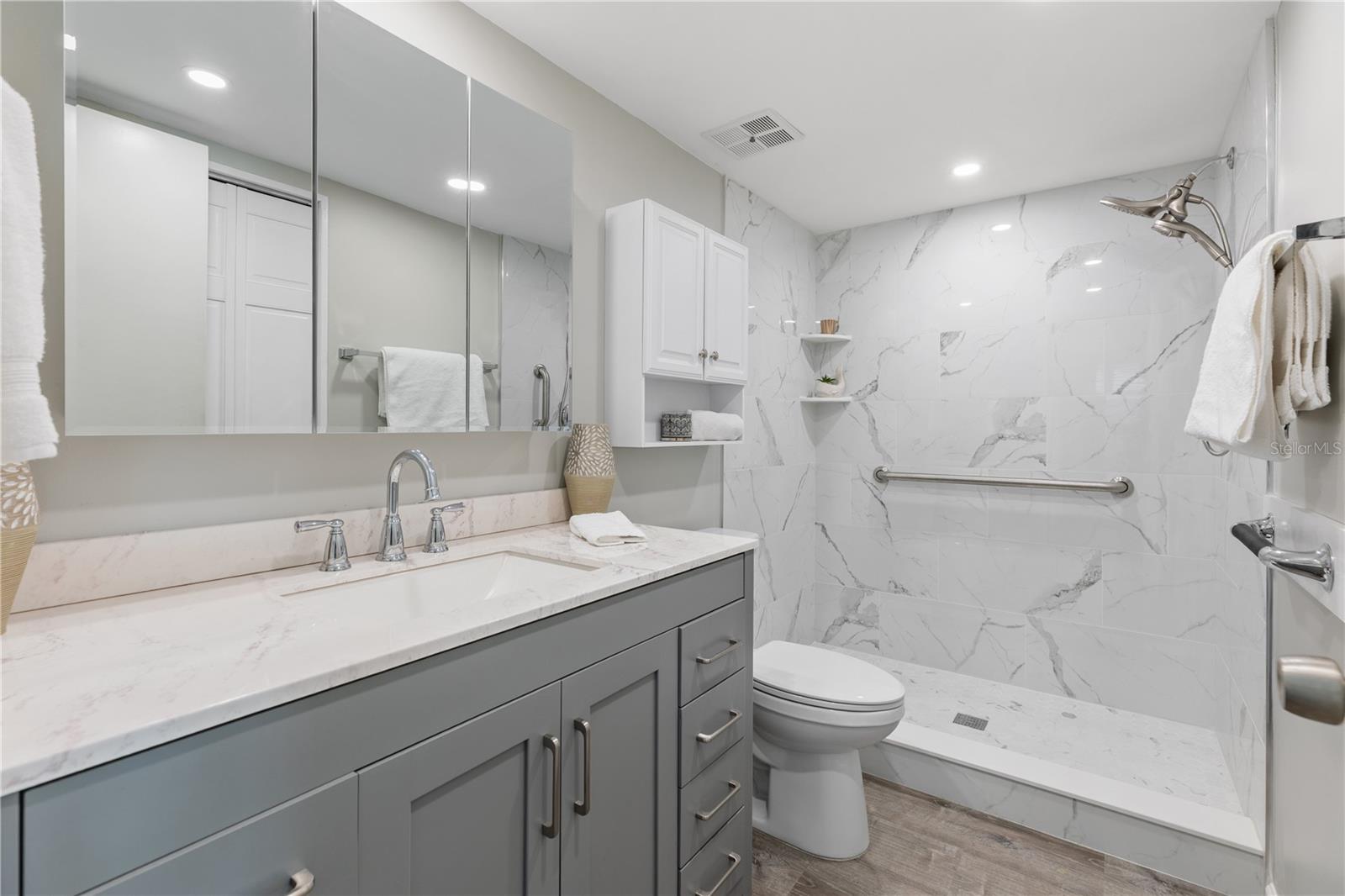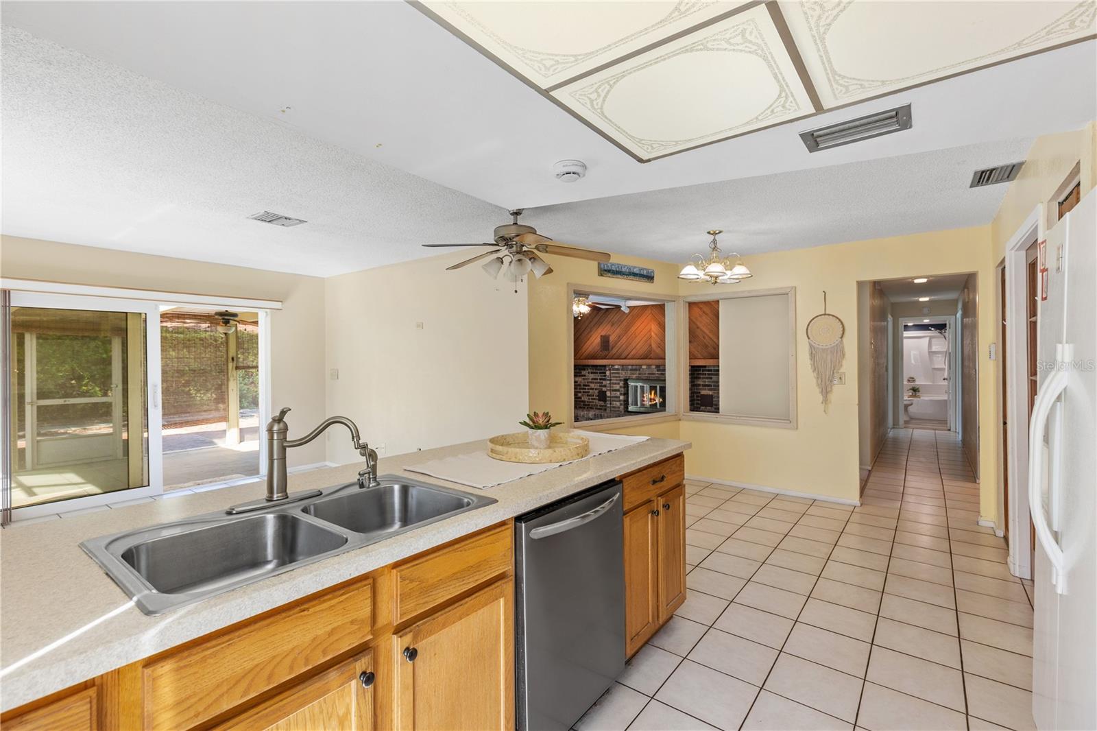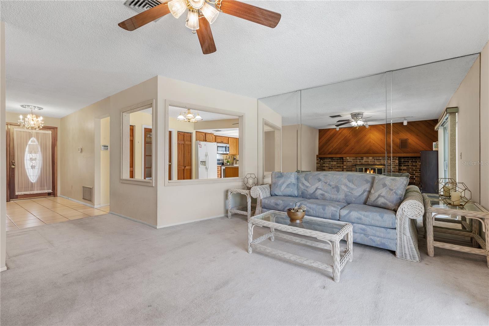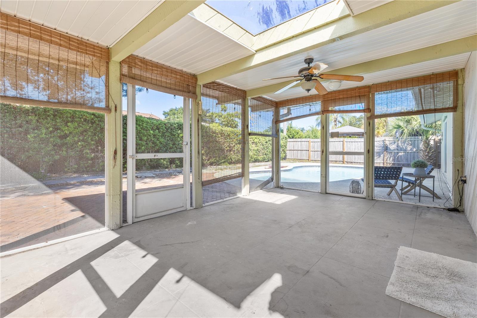 Discover this rare gem in one of Clearwater’s most sought-after neighborhoods — perfectly positioned across from a beautiful, expansive park and UNDER APPRAISED MARKET VALUE! This 3 bed/ 2 bath home offers the perfect balance of style, comfort, and convenience, wrapped in a beautifully maintained property with updates in all the right places while being ready for your personal touch. From the moment you arrive, the large entryway and stunning solid wood front door set the tone for what lies inside. Step into a spacious, light-filled interior featuring a dramatic brick, wood-burning fireplace that spans an entire wall — the perfect centerpiece for the inviting living room. The primary suite is a private sanctuary with pool views, two separate closets, and a fully renovated en suite bathroom with a luxurious walk-in shower. Sliding glass doors in both the bedroom and dining room make it easy to enjoy seamless indoor-outdoor living. Step outside to your own private paradise with a fully fenced yard, an enclosed lanai, and a sparkling pool — perfect for relaxing weekends or entertaining guests. The inside utility room includes a 2-person desk station, ideal for remote work or study. Other highlights include updated windows and doors (2015), hurricane shutter coverings, and an updated main bath. The oversized 2-car garage also includes extra storage space. Located in the Woodgate neighborhood of Clearwater and within a 10 minute drive to quintessential Dunedin. You will find all the shops, restaurants, bars, galleries, and entertainment you could desire. Whether you're enjoying sunsets from the lanai, morning walks across the street in the park, or hosting friends and family by the pool, this home checks every box. Don’t miss your chance to live the Florida lifestyle in a prime Clearwater location — don’t miss the opportunity to make this beauty yours!