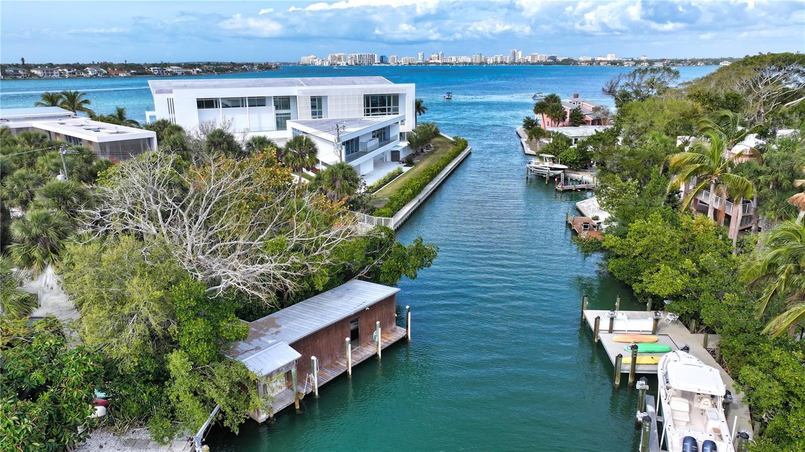 PRIME LOCATION WITH WATER ACCESS — Nestled within one of Siesta Key’s most exclusive enclaves, Lands End, this single-level residence offers the ultimate island lifestyle — complete with two deeded 32' deep-water docks providing immediate sailboat access to Big Pass and the Gulf of Mexico — no bridges! Set on a spacious 14, 895 sq. ft. lot, this property is ideal for a full remodel or to build your dream coastal retreat. The existing home features 3 bedrooms, 3 full baths, an office, and includes two master suites plus a two-car garage. With elevated construction, you may even enjoy views of Big Pass! Residents of Lands End benefit from private deeded beach access and the tranquility of a quiet, upscale neighborhood where several new luxury homes are being built. Perfectly positioned on the north end of Siesta Key, just minutes from downtown Sarasota, world-famous Siesta Beach, and the shops and dining of Siesta Village. An exceptional opportunity — this property may be purchased together with the neighboring lot/home (MLS# A4668017) to create a spectacular compound in one of Siesta Key’s most coveted locations.