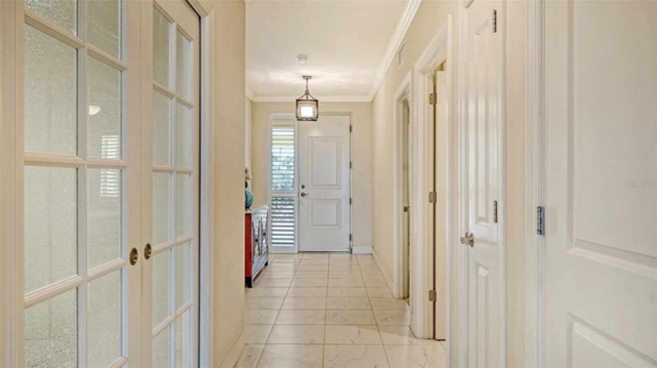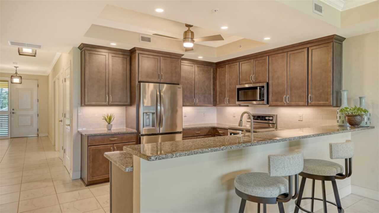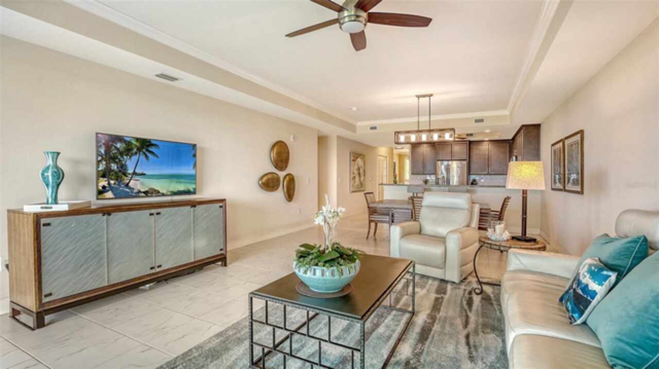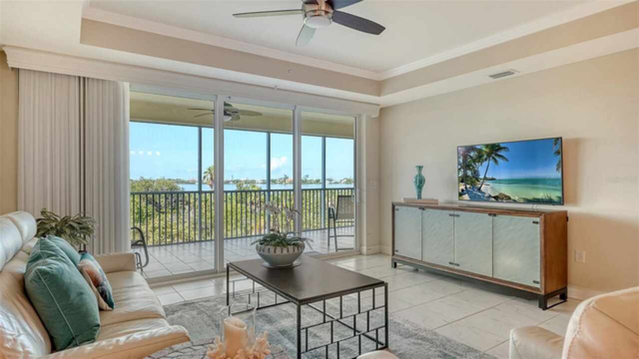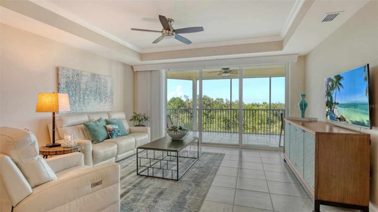 WHAT A VIEW and the pictures don't do it justice!! SELLER HAS SATISFIED Q4 DUES AND ASSESSMENTS!!! FULLY FURNISHED/TURNKEY UNIT!!! Prepare to be captivated by jaw-dropping sunsets from your oversized, private, screened-in balcony, offering unobstructed vistas across Little Sarasota Bay to the peaceful barrier island of Casey Key. Welcome to Edgewater at Hidden Bay — a gated, 12-acre resort-style community perfectly positioned between the charm of historic Venice and the cultural vibrancy of downtown Sarasota. This impeccably maintained three-bedroom, two-bathroom plus den residence offers panoramic water views and an easy, elegant coastal lifestyle. Step inside to a bright, open-concept layout with a spacious living and dining area — perfect for entertaining or relaxing while soaking in the scenery. The gourmet kitchen is a chef’s dream, featuring stainless steel KitchenAid appliances, granite countertops, 42” real wood cabinetry, counter-height seating, and abundant storage. Coffered ceilings and 5-inch baseboards add refined architectural detail throughout. The expansive primary suite is a tranquil retreat with direct access to the balcony, dual walk-in closets, and a spa-inspired bathroom boasting dual vanities and a glass-enclosed shower. A split bedroom layout offers optimal privacy, while the full-size laundry room includes built-in cabinets and a sink for added convenience. Additional highlights include Kohler plumbing fixtures, hurricane-impact windows and doors, and an abundance of natural light throughout. Offered furnished, this home is move-in ready. Edgewater at Hidden Bay delivers exceptional amenities: a heated resort-style pool and spa, clubhouse with catering kitchen and library, fitness center, tennis and pickleball courts, kayak launch and storage, scenic boardwalk through lush mangroves, and a private fishing pier (currently being rebuilt). Enjoy unmatched access to award-winning beaches (just 6.5 miles to both Siesta Key and Nokomis Beach), Bay Street Park, Legacy Trail, Oscar Scherer State Park, shopping, dining, marinas, golf, and premier medical facilities. This is more than a home — it’s a lifestyle. Schedule your private showing today and discover the very best in waterfront living.