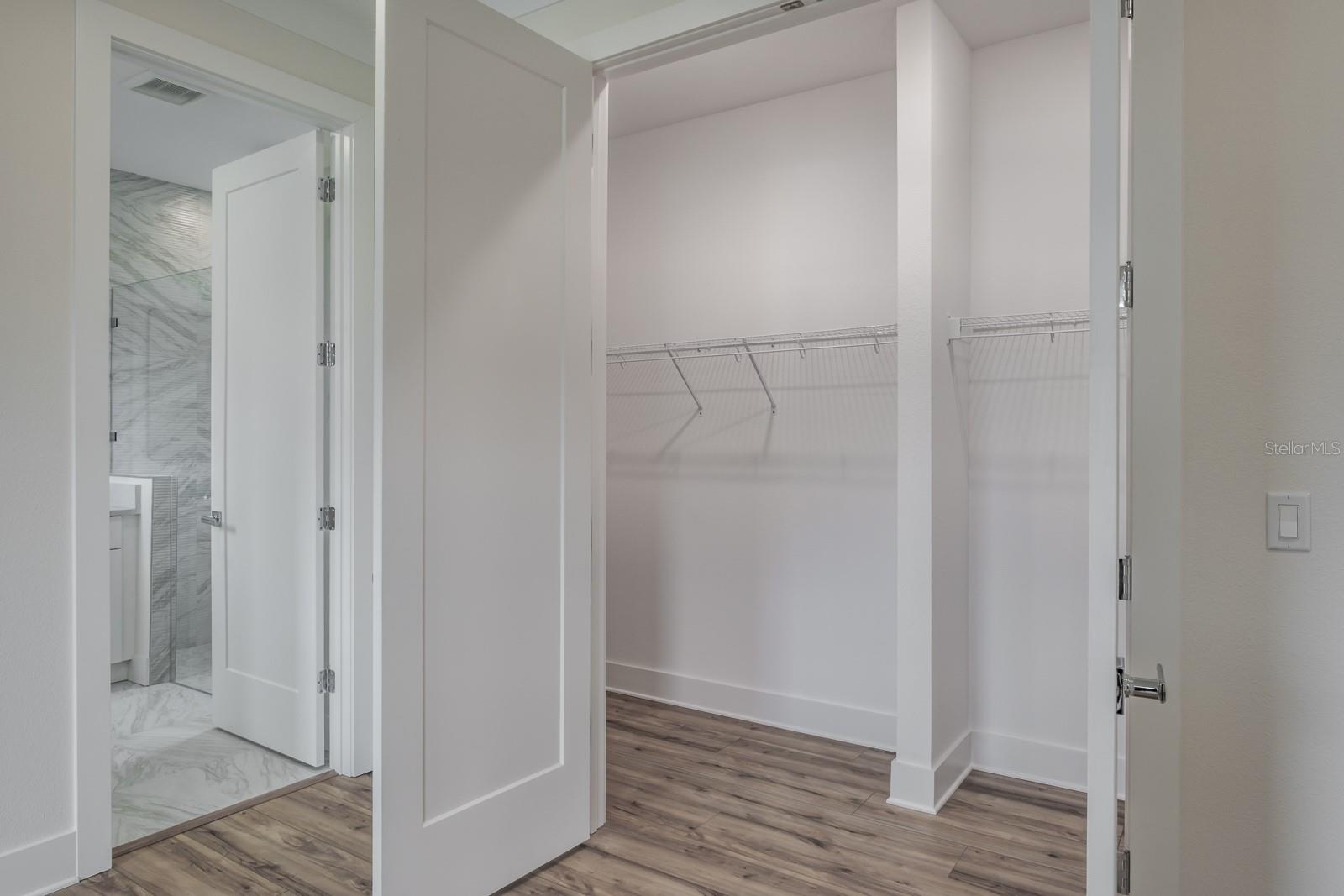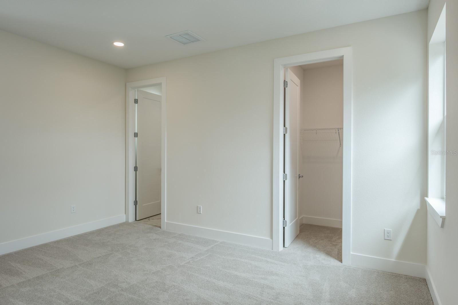 High Ceilings, Primary Bedroom Main Floor, Solid Surface Counters, Solid Wood Cabinets, Thermostat, Walk-In Closet(s)