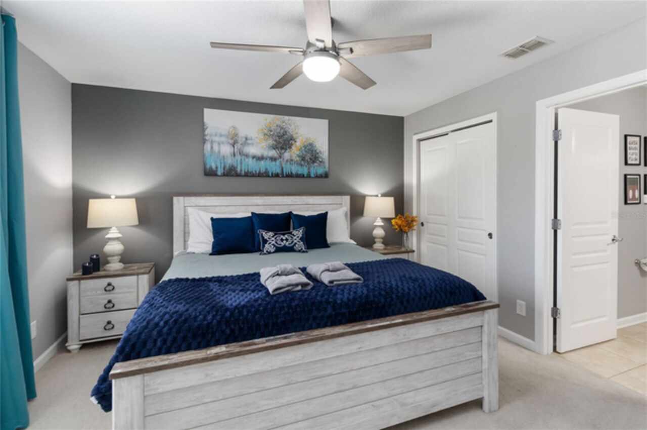 PRICE REDUCTION!! Turnkey, Fully Furnished, immaculately kept Windsor Hills 6 bed/4 bath pool and spa home with game room! As you enter this newly modern decorated property you will be greeted with the seamless flow of upgraded large tile flooring complimenting the open concept layout and welcoming spacious interior. The formal dining room is bright and modern leading to the family room overflowing with natural light. The modern Kitchen with, Granite countertops, stainless steel appliances and breakfast nook is perfect for entertaining guests or spending quality time with family. Sliding glass doors lead to the beautiful south facing pool with a spacious, covered lanai featuring new outdoor furniture and is the perfect place to unwind and relax at end of day. One bedroom is on the ground floor and 5 additional bedrooms on the second floor, including two ensuites. The garage has undergone a renovation to add an additional room with LVP flooring, pool table, table football, TV with games console, and AC mini split providing guests the ultimate, entertainment experience where you can relax on an evening and cool off in your own private haven. The upgraded home comes with Builder upgrades including granite kitchen counters, upgraded kitchen cabinets and larger ceramic tile flooring. All new tv's, NEW furniture, NEW HVAC's and water heater, NEW upgraded modern sliding glass shower doors in both ensuites. Great Income Producing property with bookings in place to hand over to new owner if desired!! Enjoy all the amazing amenities that Windsor Hills offers including waterslides, splash pad, resort pool and hot tub, sundry shop, movie theater, games room, playground, tennis, volleyball and basketball courts. All this and only 1 mile to HWY 192 for easy access to shopping, restaurants and I-4, and only just a few miles to all the theme parks. Don't miss out on this immaculately maintained and upgraded Property!! 3D Matterport Virtual Tour Link : https://my.matterport.com/show/?m=akgzpbCkd3G&mls=1