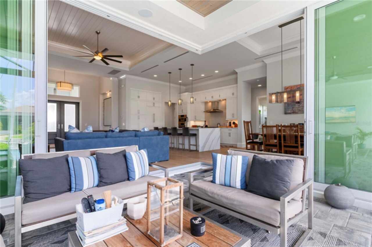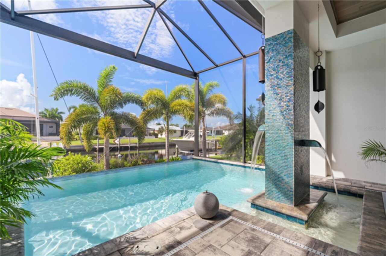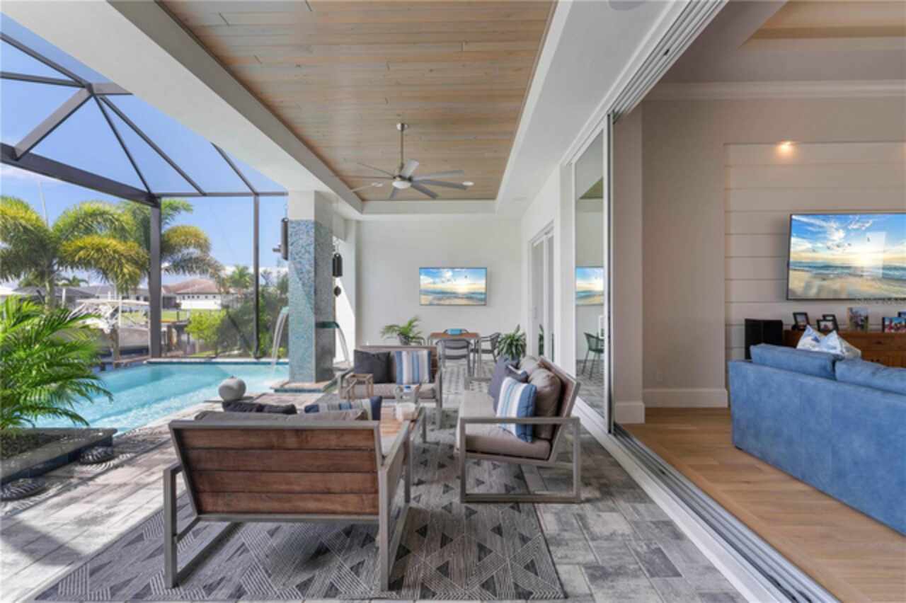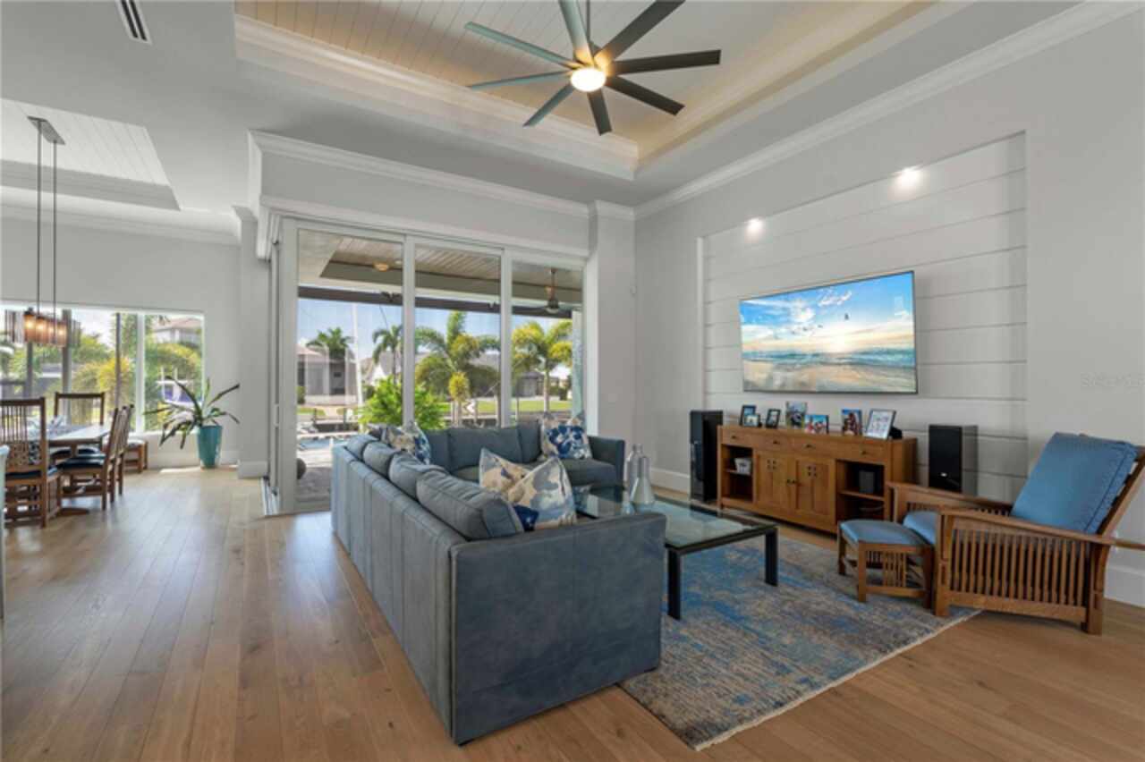 CUSTOM WATERFRONT HOME IN PUNTA GORDA ISLES W/QUICK SAIL ACCESS - A unique design collaboration between PGI Homes and a Yacht Design Engineer yields a detailed, exceptionally finished, bespoke home based on PGI Homes top-tier, platinum level Yachtsman floor plan. This exquisite, 3 bed/2 bath, waterfront home offers the ultimate in luxury waterfront living. Located on a sailboat-access canal, this home boasts not only lovely water views but also the luxury of quick sailboat access to Charlotte Harbor. The open-concept great room is filled with natural light thanks to zero-corner sliding glass doors that create a seamless transition to the outdoors. Perfect for entertaining, the large scale of all rooms makes this home feel airy & tropical but never crowded. Architectural details that add a layer of sophistication include Prosecco oak engineered hardwood plank flooring, soaring tray ceilings with tongue and groove details, 7 1/4-inch baseboards, crown molding and sleek Hunter Douglas roller window shades for added privacy. LED recessed lighting and commercial-grade HVAC diffusers ensure comfort and efficiency. Step into the heart of the home — a gourmet kitchen featuring quartz countertops, custom wood cabinetry, and a stunning waterfall island. Outfitted with top-of-the-line appliances, including a Wolf gas range, Bosch wall-mount oven and microwave, paneled Bosch refrigerator and dishwasher, and a U-Line wine cooler, this kitchen blends style and function seamlessly. Split bedroom floor plan features a spacious master retreat that offers walk-out access to the lanai, two large walk-in closets w/custom shelving systems and a spa-like master bath w/floating vanity, waterfall chandelier, walk-in shower w/floor-to-ceiling tile, oversized soaking tub & private WC. The guest rooms share a spa-inspired bath w/German Duravit floating vanity and oversized shower w/floor-to-ceiling tile & built-in bench. Step outside onto the lanai, where you’ll find an in-ground, heated saltwater pool featuring a sun ledge, faux infinity edge, and a beautiful mosaic tile waterfall. The lanai is also plumbed with water and propane, perfect for setting up an outdoor kitchen. Picture-frame pool cage ensures an unobstructed view of the canal, your private dock & sailboat. Steps from the lanai, you'll find the 37-foot concrete dock, equipped with dual utility pedestals providing light, water, and electricity, makes this home a boater’s paradise. Additional features include an attached three-car garage with epoxy flooring, paver circular driveway, Low-E impact-resistant windows for hurricane protection, whole house surge protection, security system, and complete perimeter rain gutters. The professionally landscaped yard creates the feel of a private oasis. Landscaping incudes Rainbird irrigation system, LED landscape lighting & stone mulch planters w/curbing. Picture yourself lounging on the lanai throughout the day knowing your sailboat is moored safely only a few yards away. Claim your spot in paradise today.