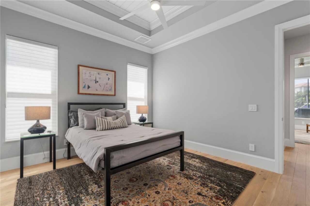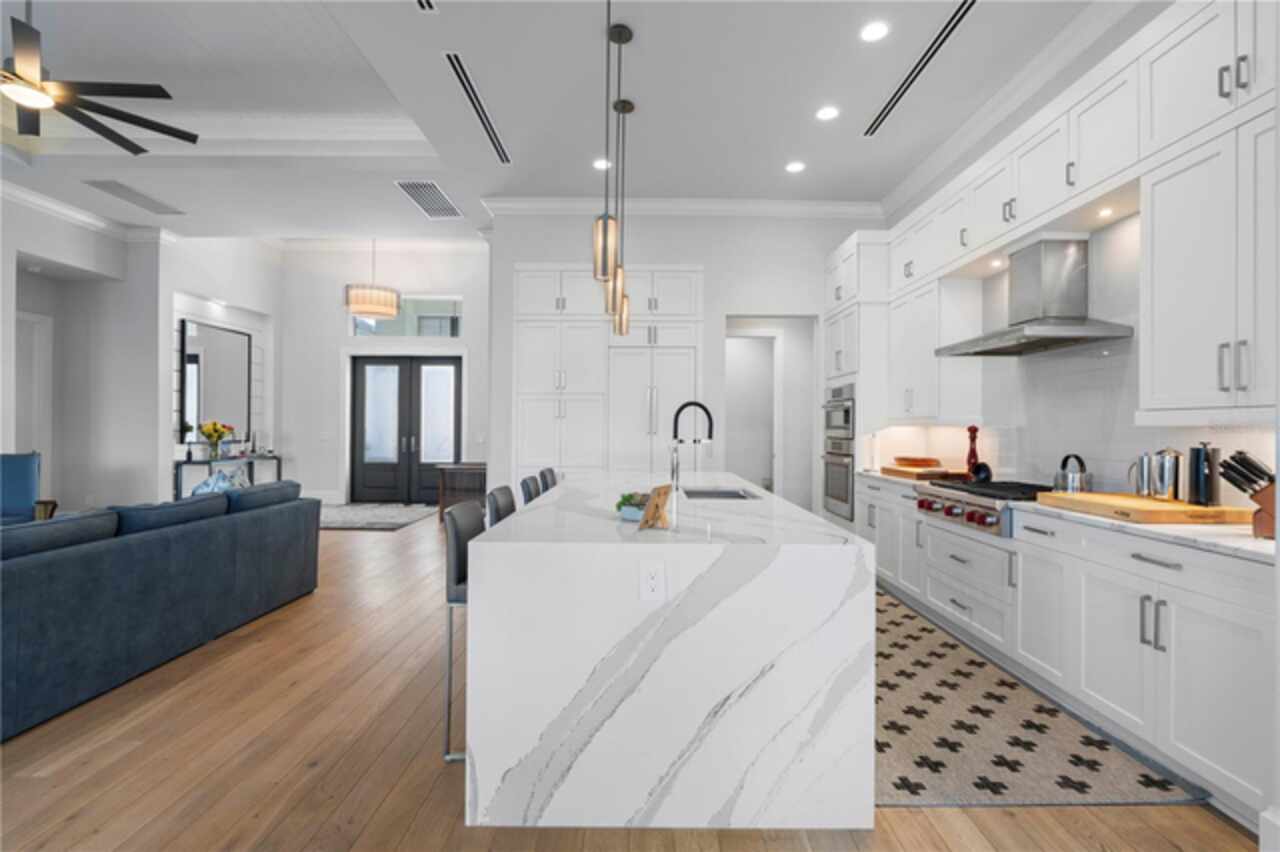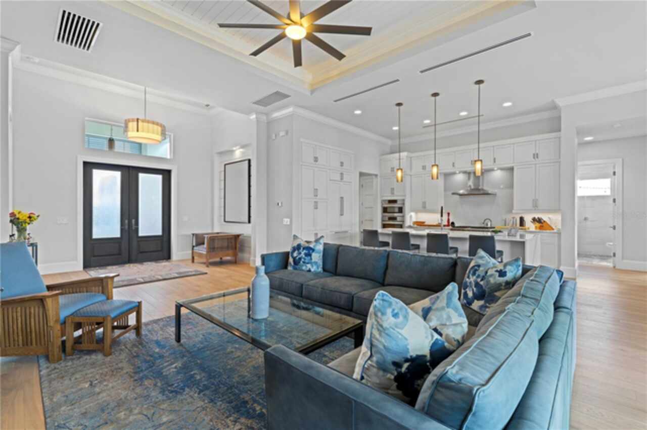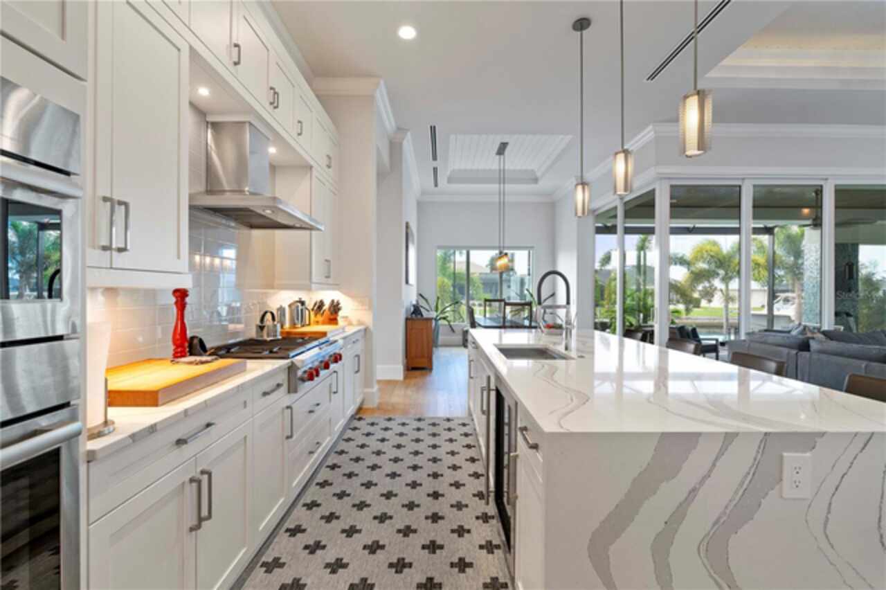 CUSTOM WATERFRONT HOME IN PUNTA GORDA ISLES W/QUICK SAIL ACCESS - A unique design collaboration between PGI Homes and a Yacht Design Engineer yields a detailed, exceptionally finished, bespoke home based on PGI Homes top-tier, platinum level Yachtsman floor plan. This exquisite, 3 bed/2 bath, waterfront home offers the ultimate in luxury waterfront living. Located on a sailboat-access canal, this home boasts not only lovely water views but also the luxury of quick sailboat access to Charlotte Harbor. The open-concept great room is filled with natural light thanks to zero-corner sliding glass doors that create a seamless transition to the outdoors. Perfect for entertaining, the large scale of all rooms makes this home feel airy & tropical but never crowded. Architectural details that add a layer of sophistication include Prosecco oak engineered hardwood plank flooring, soaring tray ceilings with tongue and groove details, 7 1/4-inch baseboards, crown molding and sleek Hunter Douglas roller window shades for added privacy. LED recessed lighting and commercial-grade HVAC diffusers ensure comfort and efficiency. Step into the heart of the home — a gourmet kitchen featuring quartz countertops, custom wood cabinetry, and a stunning waterfall island. Outfitted with top-of-the-line appliances, including a Wolf gas range, Bosch wall-mount oven and microwave, paneled Bosch refrigerator and dishwasher, and a U-Line wine cooler, this kitchen blends style and function seamlessly. Split bedroom floor plan features a spacious master retreat that offers walk-out access to the lanai, two large walk-in closets w/custom shelving systems and a spa-like master bath w/floating vanity, waterfall chandelier, walk-in shower w/floor-to-ceiling tile, oversized soaking tub & private WC. The guest rooms share a spa-inspired bath w/German Duravit floating vanity and oversized shower w/floor-to-ceiling tile & built-in bench. Step outside onto the lanai, where you’ll find an in-ground, heated saltwater pool featuring a sun ledge, faux infinity edge, and a beautiful mosaic tile waterfall. The lanai is also plumbed with water and propane, perfect for setting up an outdoor kitchen. Picture-frame pool cage ensures an unobstructed view of the canal, your private dock & sailboat. Steps from the lanai, you'll find the 37-foot concrete dock, equipped with dual utility pedestals providing light, water, and electricity, makes this home a boater’s paradise. Additional features include an attached three-car garage with epoxy flooring, paver circular driveway, Low-E impact-resistant windows for hurricane protection, whole house surge protection, security system, and complete perimeter rain gutters. The professionally landscaped yard creates the feel of a private oasis. Landscaping incudes Rainbird irrigation system, LED landscape lighting & stone mulch planters w/curbing. Picture yourself lounging on the lanai throughout the day knowing your sailboat is moored safely only a few yards away. Claim your spot in paradise today.