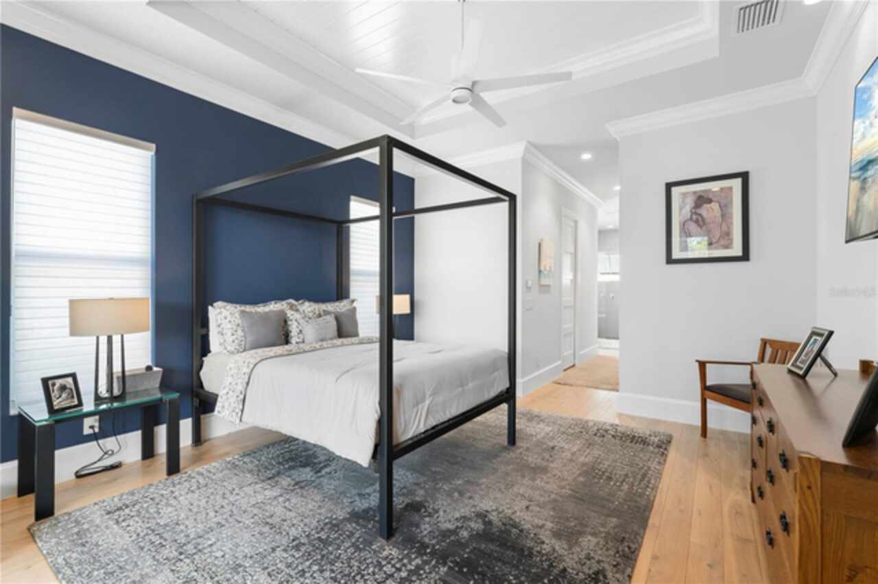 Ceiling Fans(s), Crown Molding, High Ceilings, Open Floorplan, Solid Wood Cabinets, Split Bedroom, Stone Counters, Tray Ceiling(s), Walk-In Closet(s)