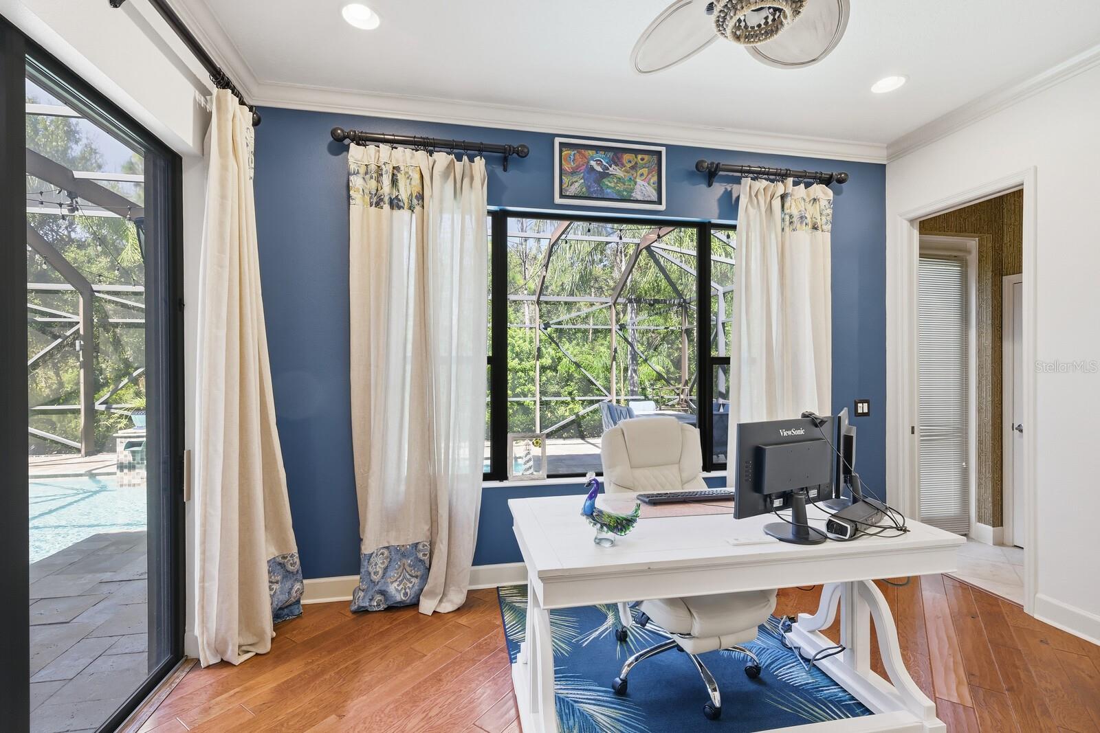 A home built to impress, inspire and protect! Crafted for those who seek beauty in the details and comfort in every corner. From the moment you arrive, the manicured landscaping and timeless architecture set the stage for what’s inside: over 3, 000 square feet of refined living defined by quiet luxury and effortless sophistication. Step inside to soaring tray ceilings and freshly painted walls, complemented by upgraded lighting and an open-concept layout. The chef-inspired kitchen, with its quartz countertops and solid wood cabinetry, opens effortlessly to the spacious family room and to a dedicated office overlooking the pool, perfect for balancing work and leisure. Then, step outside to your own stunning, private backyard retreat designed for both relaxation and entertainment. Mornings begin with sunlight glistening over the sparkling saltwater pool and spa, and the soothing sound of cascading waterfalls. The expansive paver lanai invites slow mornings with coffee in hand and lively afternoons spent entertaining beside the water. By day, it feels like a boutique resort: bright, refreshing, and full of life. By night, the space transforms into a tropical paradise, softly glowing in all the right places. Whether it’s a quiet dinner with loved ones or laughter shared among friends, every moment here feels unforgettable. Beyond the pool, a peaceful sitting garden off the owner’s suite provides a private escape to unwind. Upstairs, a private second-floor suite offers versatile living for guests, in-laws, or a young adult seeking their own retreat. Built for beauty and built to last, this home offers peace of mind with hurricane impact windows and sliders, an electric storm shutter, and a whole-house generator. Located in Flood Zone X, this home requires no flood insurance, and with no CDD and low HOA fees, it offers financial peace of mind for the long term. Nestled near top-rated schools, upscale shopping, dining, and the Gulf Coast’s pristine beaches, this residence embodies the heart of Florida luxury—where every detail celebrates the balance between elegance, comfort, and resilience.