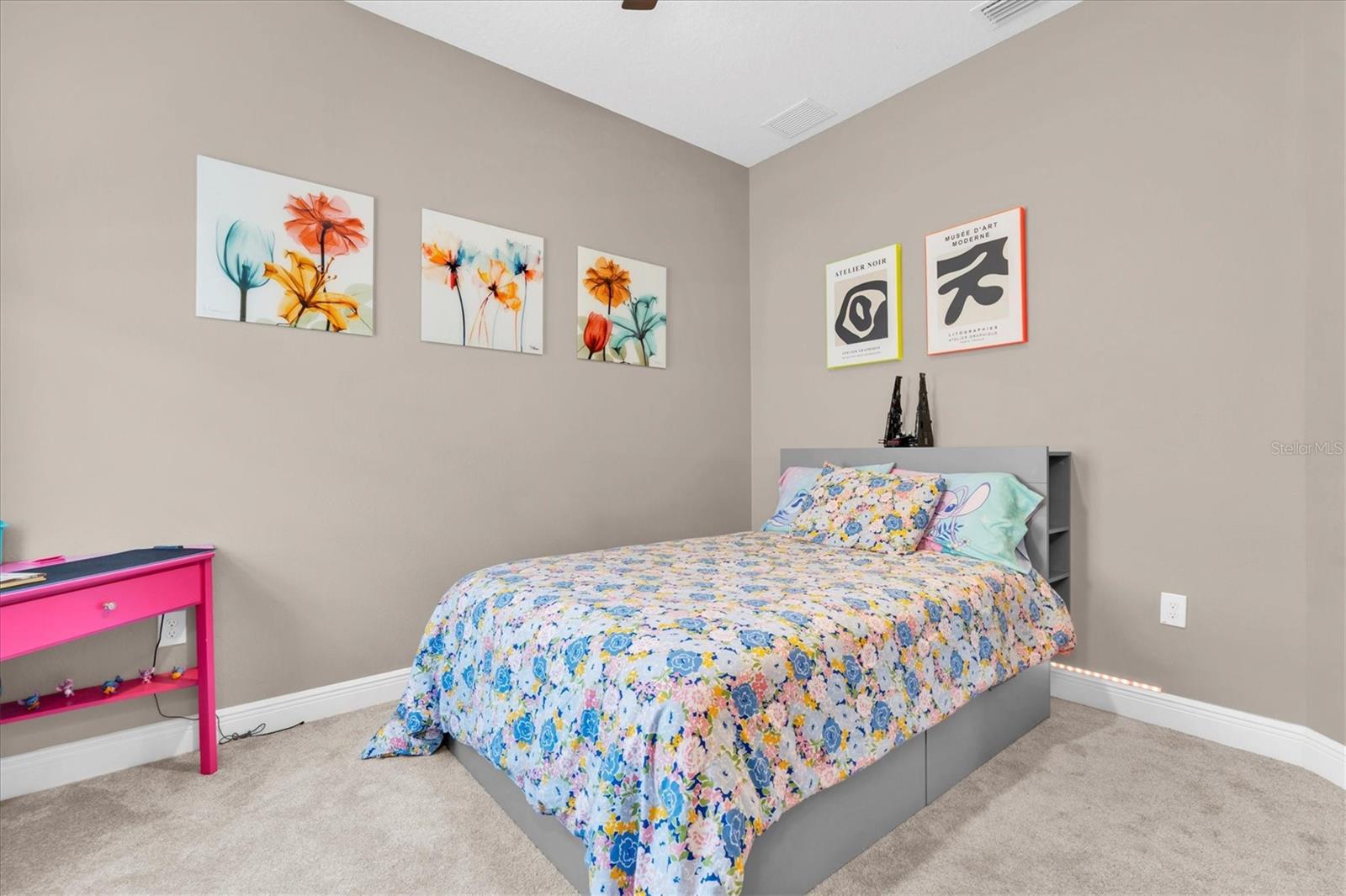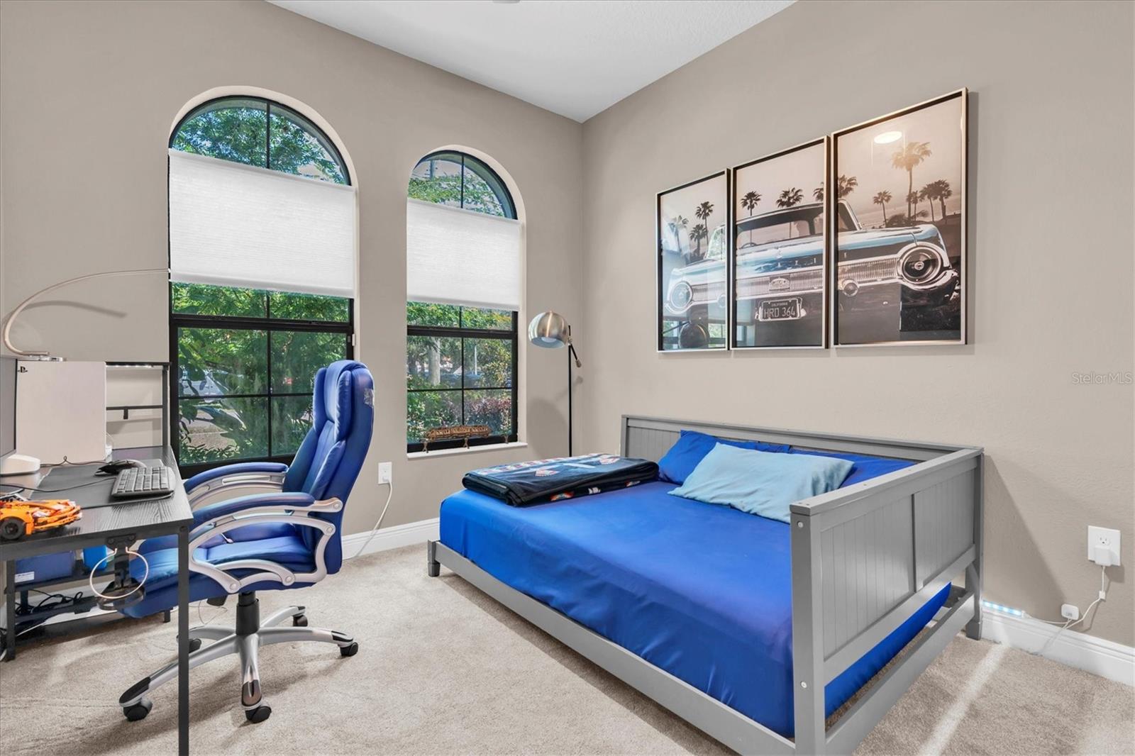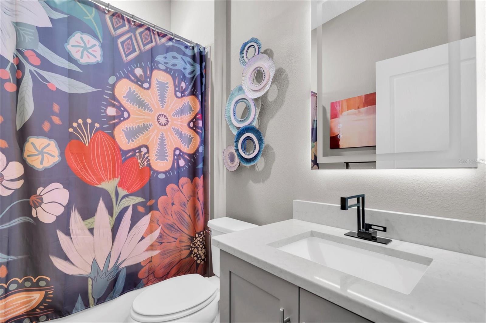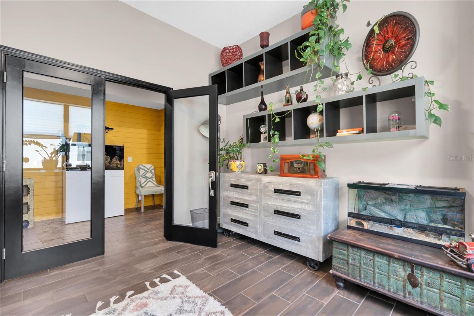 This 2019-built Tampa home perfectly blends modern comfort, designer style, and everyday freedom on a spacious quarter-acre lot with no HOA and no CDD. Freshly painted inside and out, it features high ceilings, wood-look tile floors, and thoughtful custom touches throughout. The front flex room with French doors offers the perfect space for a home office, playroom, or media room. At the heart of the home, the bright gourmet kitchen stands out with a bold shiplap island, new backsplash, granite countertops, stainless steel appliances, upgraded cabinets with crown molding, a glass pantry door, and a walk-in pantry. A cozy breakfast nook opens to the great room, where sliding doors lead to a covered lanai and fully fenced backyard—ideal for relaxing or entertaining. The owner’s suite features a tray ceiling, large walk-in closet, and a spa-like bath with dual vanities, frameless glass shower, and soaking tub. Two additional bedrooms offer flexibility for family, guests, or hobbies. Located in a no flood and no evacuation zone, this move-in ready home delivers a rare mix of modern design, low maintenance, and convenience just minutes from Tampa’s best shopping, dining, and major highways.