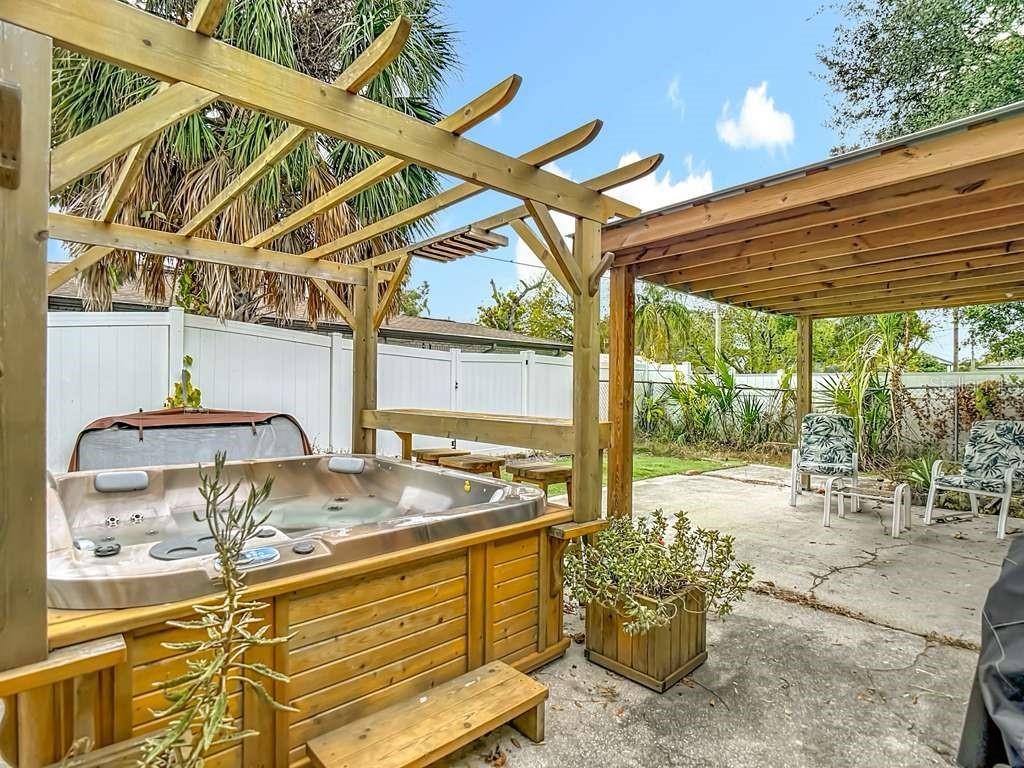 Fully remodeled and move-in ready, this beautifully updated 3-bedroom, 2-bath home is located in one of Tampa’s most charming and rapidly growing neighborhoods, offering an ideal opportunity for either a primary residence or a profitable short-term rental. The entire property has been renovated inside and out, including a privately fenced backyard that has been transformed into a serene retreat featuring a newly installed hot-tub pergola, blending rustic elegance with tropical tranquility for relaxing evenings or outdoor dining under the stars. Additional highlights include a 2022 roof, fully updated interior and exterior finishes, and a covered patio perfect for entertaining. Situated in the heart of West Tampa, this home is just a short stroll to Raymond James Stadium, minutes from Armature Works, the Tampa Riverwalk, and Downtown Tampa, and only 10 minutes from Tampa International Airport, providing unbeatable access to the city’s premier dining, sports, nightlife, and waterfront lifestyle.