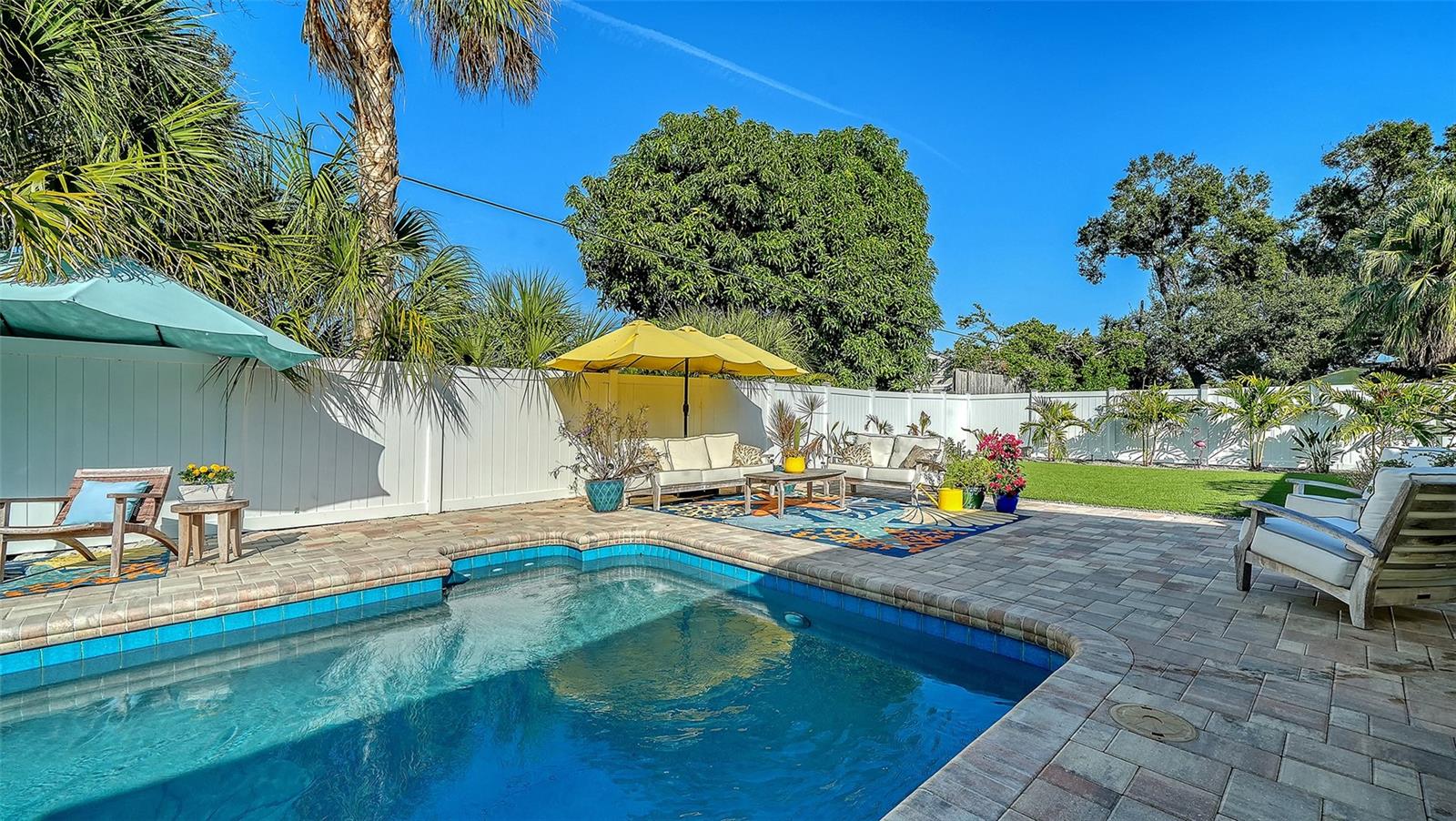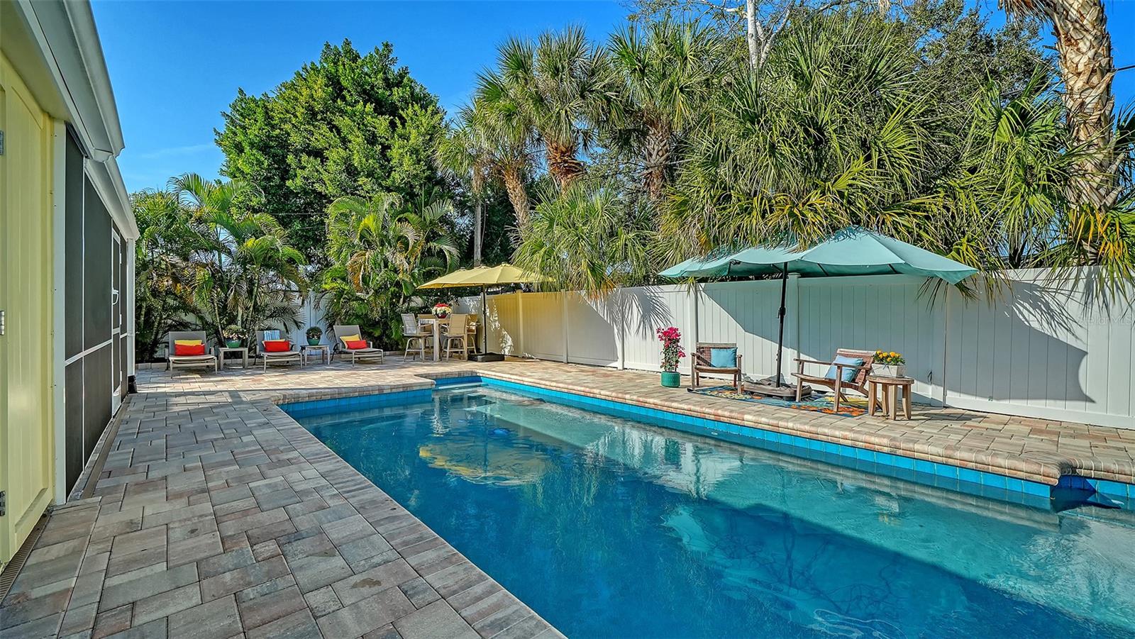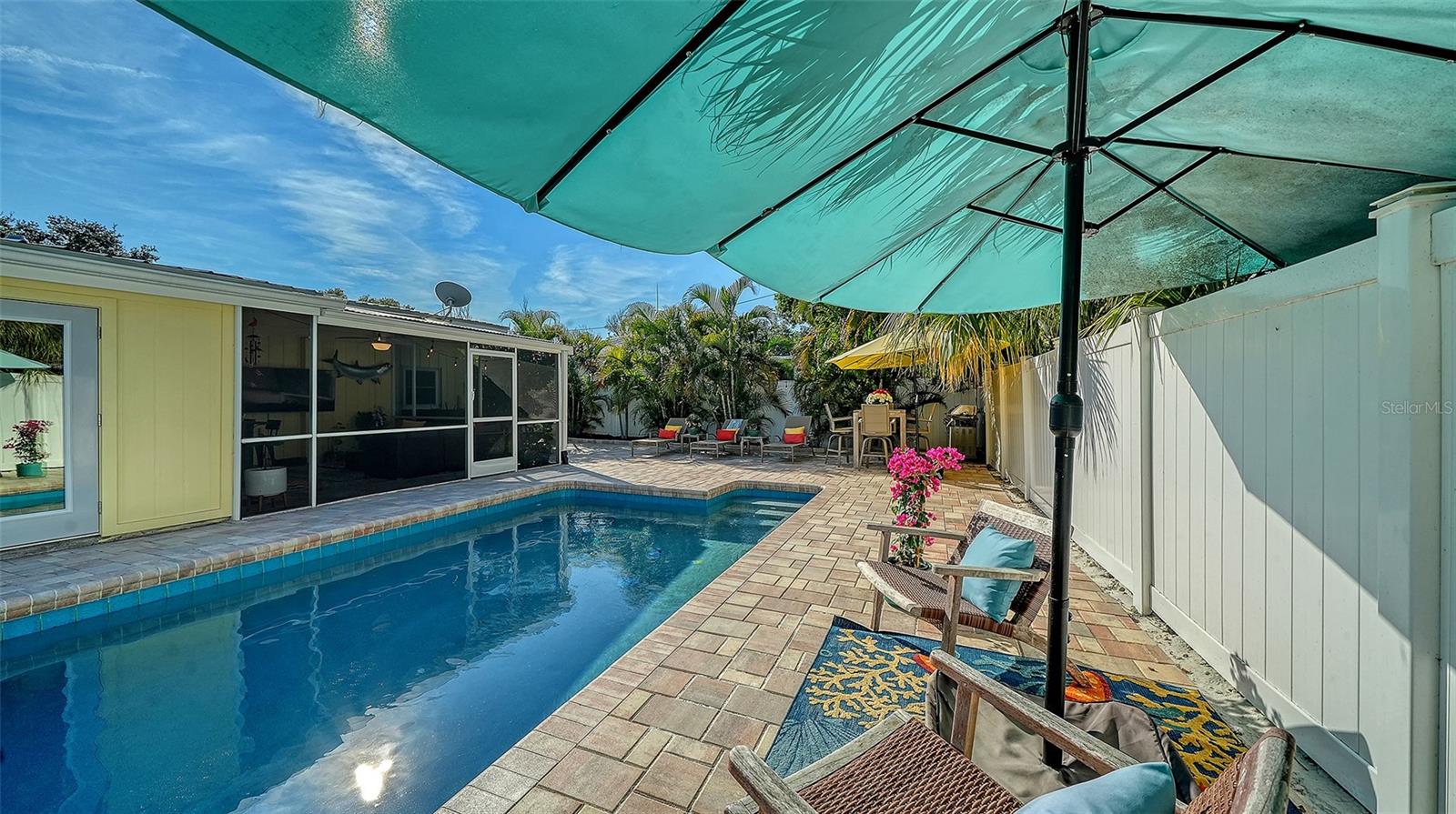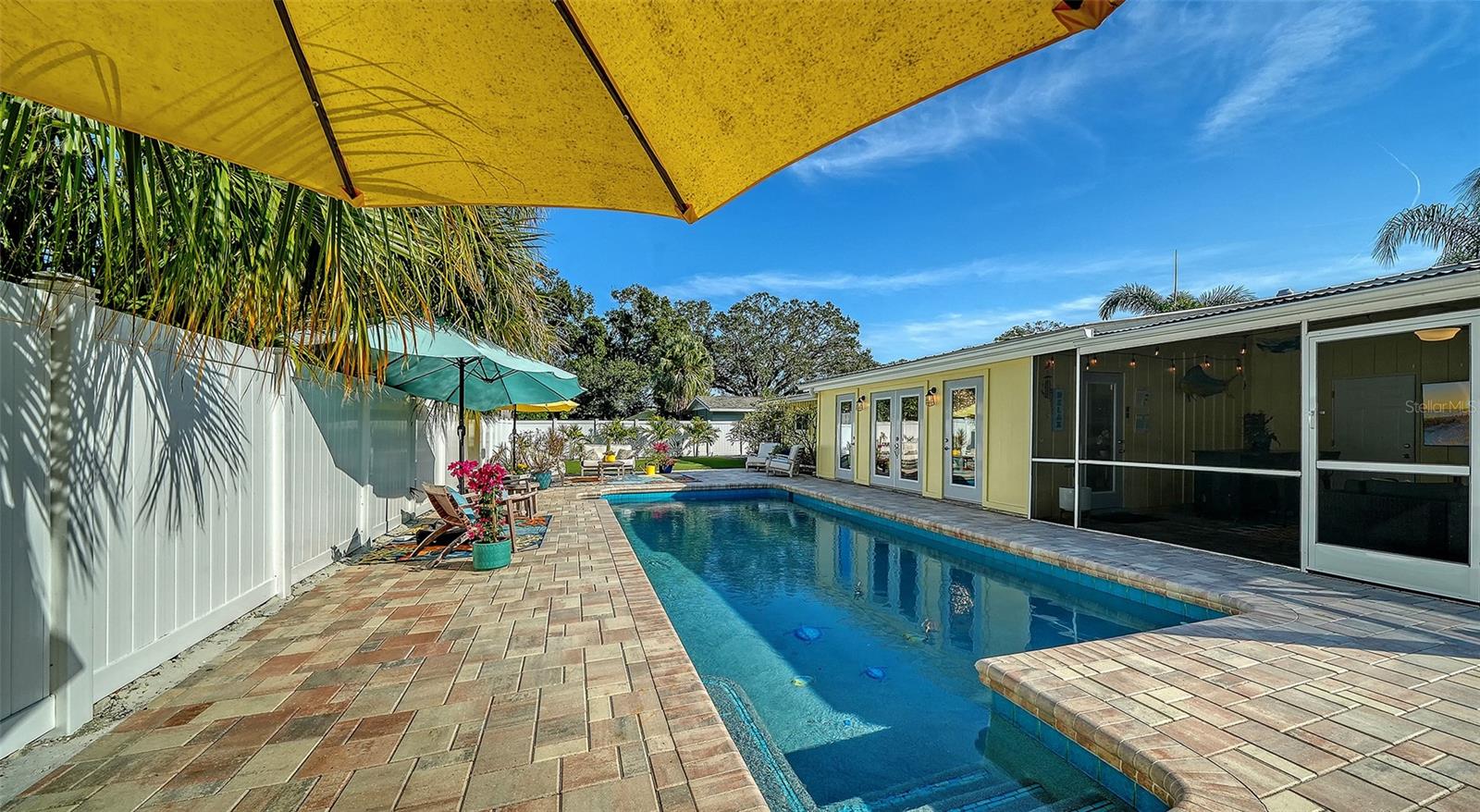 In one of the most sought-after neighborhoods, Arlington Park, sits this beautifully updated Mid-Century South Gate home in the highly acclaimed Southside School district. Offering just under 2, 000 sq. ft. of under-air living space and 2, 797 total sq. ft.—which includes a 2-car garage, under-air laundry room, and a “must-have” screened-in lanai—this property is a true unicorn. Beyond its generous interior, the home boasts restored gorgeous Terrazzo floors, an oversized pool and outdoor space that is both magical and practical. As you arrive on Hibiscus Street the tropical landscaping, warm and inviting exterior with timeless appeal, metal roof, and paver driveway immediately set the tone for the lifestyle that awaits inside. Step through the front door to a light-filled open floor plan, where the kitchen, living, and dining areas flow seamlessly. The expansive kitchen is a chef’s dream, featuring stunning quartz countertops, a large center island, and abundant storage. Its open design is perfect for family meals, entertaining, or simply enjoying the backyard oasis through floor-to-ceiling glass doors. The primary suite offers a private ensuite bathroom and two large closets, creating a peaceful retreat. Two additional bedrooms feature oversized windows and ample closet space, providing flexibility for family, guests, or a home office. The secondary bath impresses with gorgeous tile, a large dual-sink vanity, and a bathtub/shower combo. Additional storage is available via a convenient entryway closet, while the separate laundry room and two-car garage add everyday convenience. Step outside to a private backyard paradise. WOW! The sparkling oversized pool is the centerpiece, complemented by a charming screened-in lanai perfect for relaxing or entertaining in any weather. The backyard also features low-maintenance turf and a sprawling paver patio, ideal for alfresco dining, lounging, or social gatherings. As evening falls, the outdoor space transforms into an enchanting haven for stargazing and enjoying serene Florida nights. Arlington Park itself offers an abundance of amenities, including tennis courts, two pools, basketball courts, a playground, a dog park, a walking park, and an outdoor recreational fitness center—making it easy to enjoy an active, vibrant lifestyle right in your neighborhood. Just 7 minutes from downtown Sarasota, you’ll enjoy world-class arts, culture, and dining, while the legendary Siesta Key Beach is only 12 minutes away. Southside Village, with its boutique shops, fabulous dining, and Morton’s Gourmet Market, is mere minutes from your door. With thoughtful updates, an open layout, oversized bedrooms, generous closet space throughout, and exceptional indoor-outdoor flow, this Southgate gem delivers the ultimate Florida lifestyle. Whether spending sunny days by the pool, cozy evenings in the lanai, or enjoying the convenience of top-rated schools and vibrant local amenities, this residence blends style, comfort, and an unbeatable location. More than a home—it’s a lifestyle.
