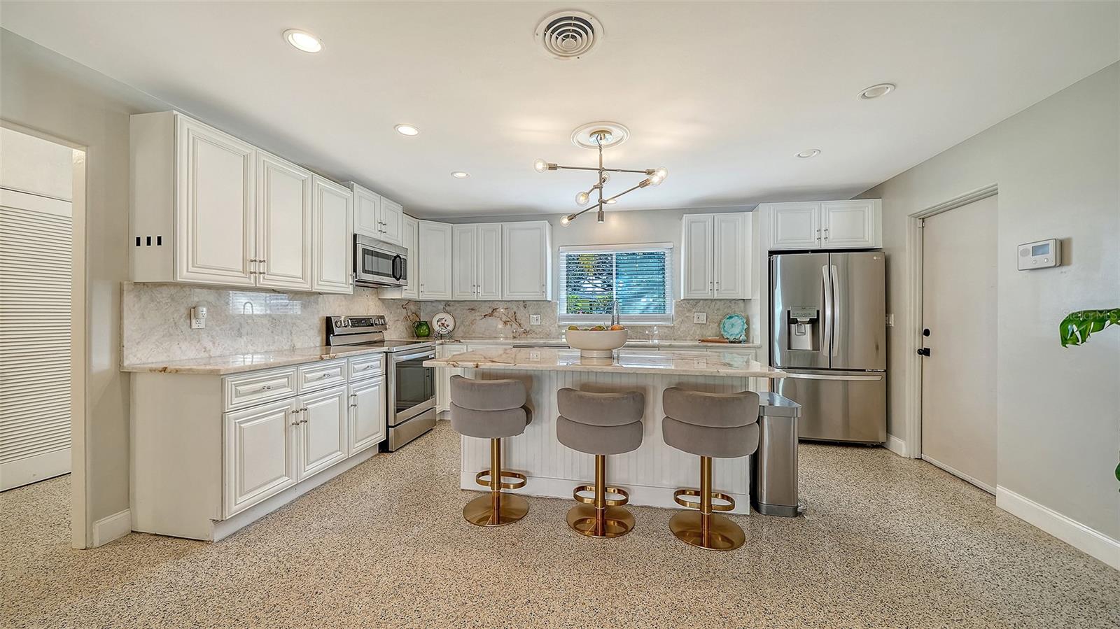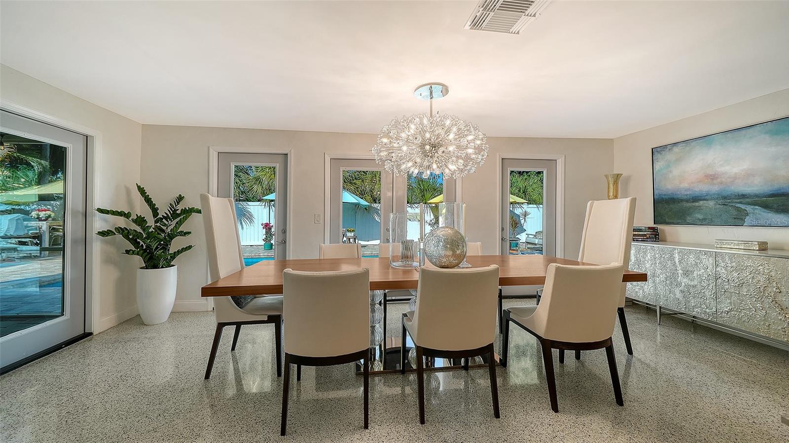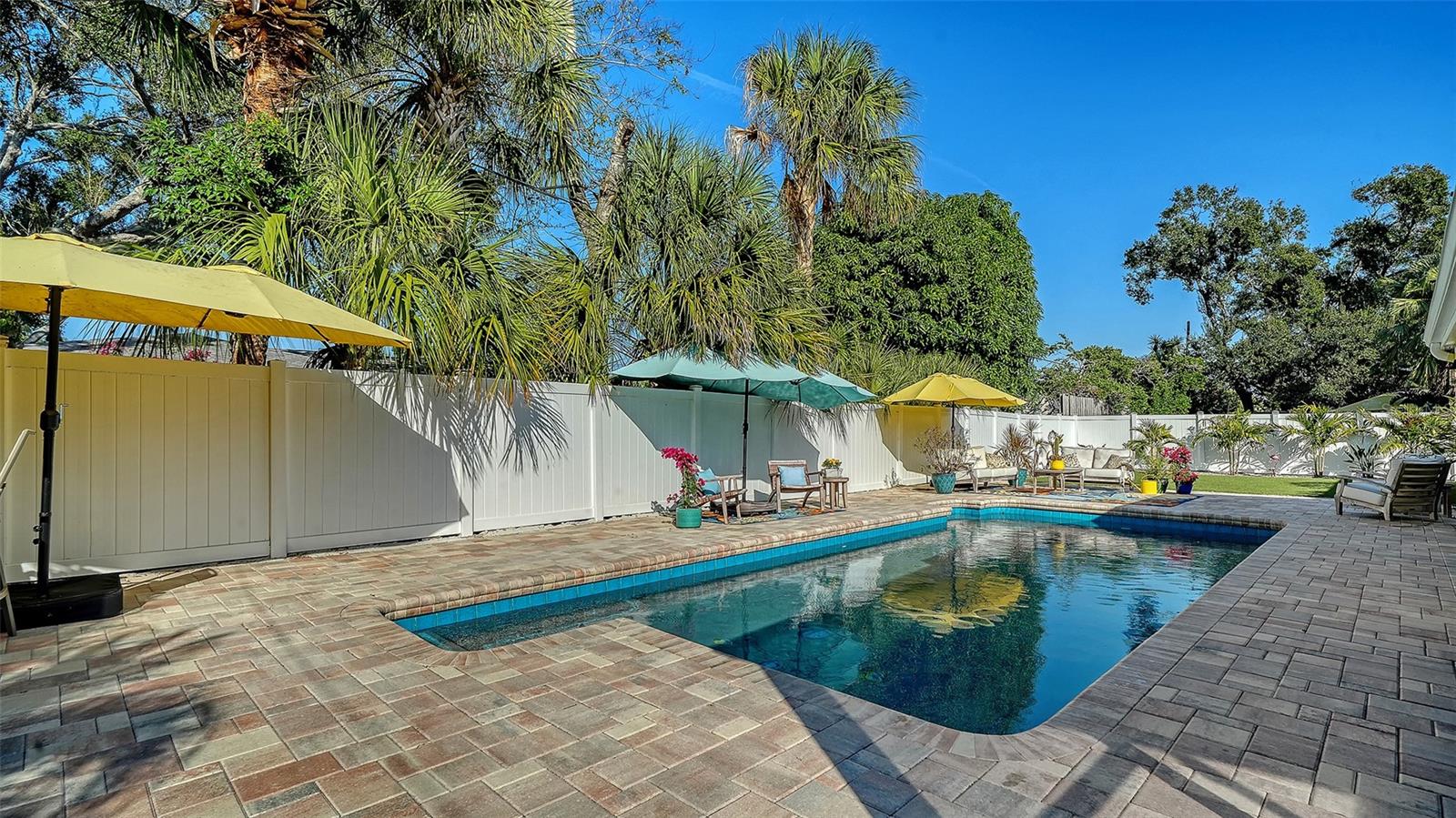 In one of the most sought-after neighborhoods, Arlington Park, sits this beautifully updated Mid-Century South Gate home in the highly acclaimed Southside School district. Offering just under 2, 000 sq. ft. of under-air living space and 2, 797 total sq. ft.—which includes a 2-car garage, under-air laundry room, and a “must-have” screened-in lanai—this property is a true unicorn. Beyond its generous interior, the home boasts restored gorgeous Terrazzo floors, an oversized pool and outdoor space that is both magical and practical. As you arrive on Hibiscus Street the tropical landscaping, warm and inviting exterior with timeless appeal, metal roof, and paver driveway immediately set the tone for the lifestyle that awaits inside. Step through the front door to a light-filled open floor plan, where the kitchen, living, and dining areas flow seamlessly. The expansive kitchen is a chef’s dream, featuring stunning quartz countertops, a large center island, and abundant storage. Its open design is perfect for family meals, entertaining, or simply enjoying the backyard oasis through floor-to-ceiling glass doors. The primary suite offers a private ensuite bathroom and two large closets, creating a peaceful retreat. Two additional bedrooms feature oversized windows and ample closet space, providing flexibility for family, guests, or a home office. The secondary bath impresses with gorgeous tile, a large dual-sink vanity, and a bathtub/shower combo. Additional storage is available via a convenient entryway closet, while the separate laundry room and two-car garage add everyday convenience. Step outside to a private backyard paradise. WOW! The sparkling oversized pool is the centerpiece, complemented by a charming screened-in lanai perfect for relaxing or entertaining in any weather. The backyard also features low-maintenance turf and a sprawling paver patio, ideal for alfresco dining, lounging, or social gatherings. As evening falls, the outdoor space transforms into an enchanting haven for stargazing and enjoying serene Florida nights. Arlington Park itself offers an abundance of amenities, including tennis courts, two pools, basketball courts, a playground, a dog park, a walking park, and an outdoor recreational fitness center—making it easy to enjoy an active, vibrant lifestyle right in your neighborhood. Just 7 minutes from downtown Sarasota, you’ll enjoy world-class arts, culture, and dining, while the legendary Siesta Key Beach is only 12 minutes away. Southside Village, with its boutique shops, fabulous dining, and Morton’s Gourmet Market, is mere minutes from your door. With thoughtful updates, an open layout, oversized bedrooms, generous closet space throughout, and exceptional indoor-outdoor flow, this Southgate gem delivers the ultimate Florida lifestyle. Whether spending sunny days by the pool, cozy evenings in the lanai, or enjoying the convenience of top-rated schools and vibrant local amenities, this residence blends style, comfort, and an unbeatable location. More than a home—it’s a lifestyle.