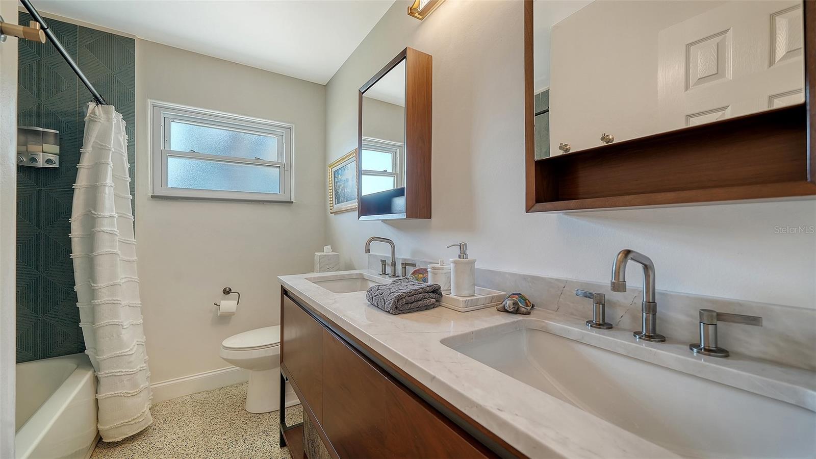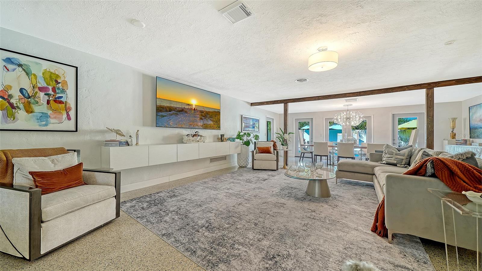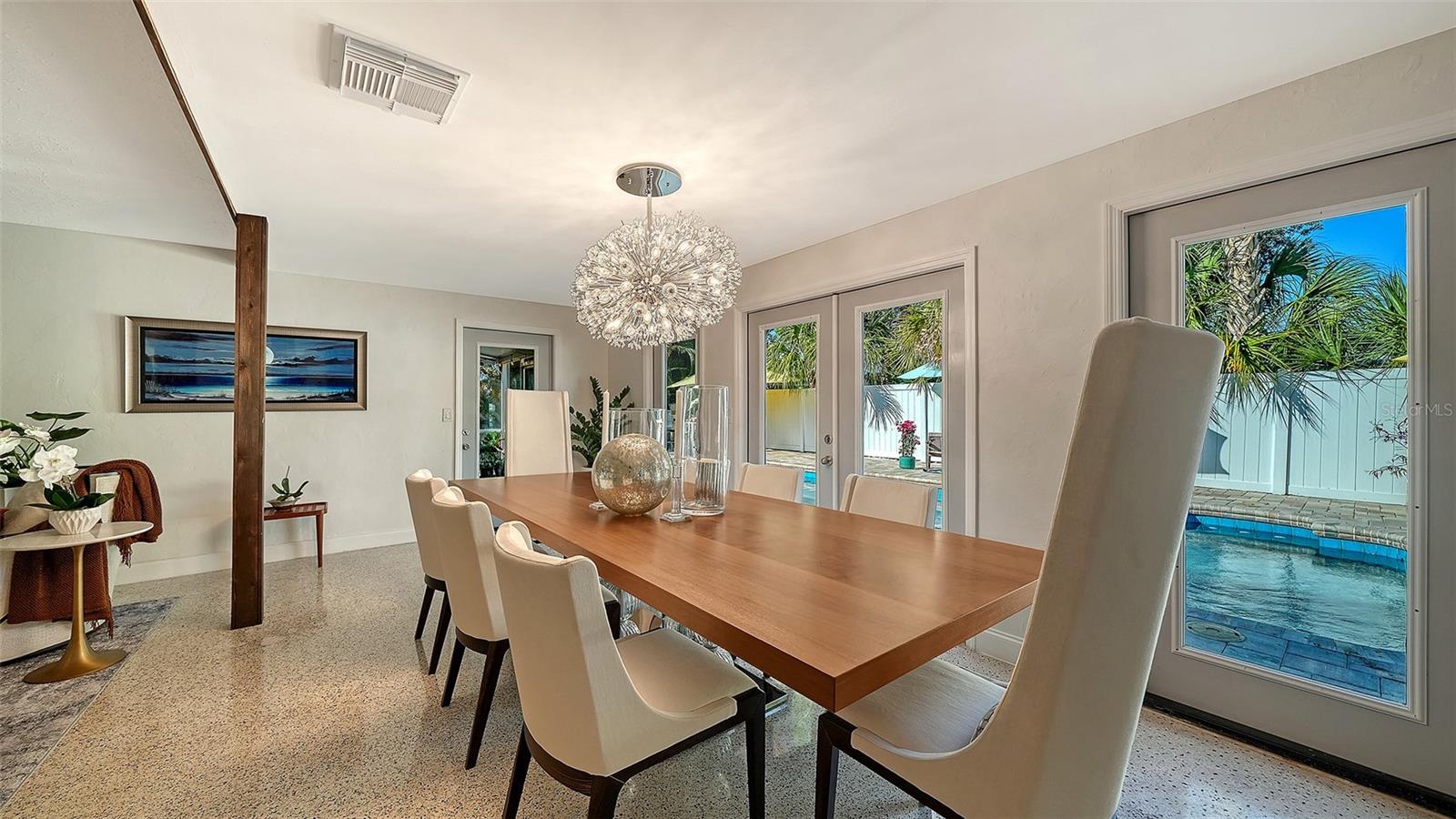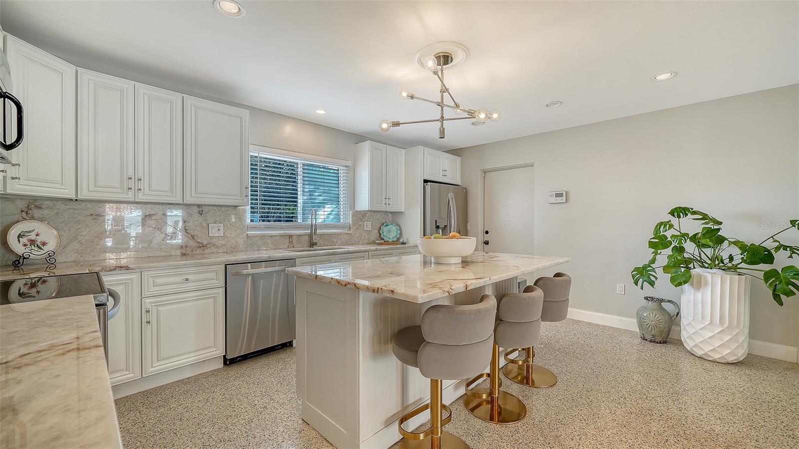 In one of the most sought-after neighborhoods, Arlington Park, sits this beautifully updated Mid-Century South Gate home in the highly acclaimed Southside School district. Offering just under 2, 000 sq. ft. of under-air living space and 2, 797 total sq. ft.—which includes a 2-car garage, under-air laundry room, and a “must-have” screened-in lanai—this property is a true unicorn. Beyond its generous interior, the home boasts restored gorgeous Terrazzo floors, an oversized pool and outdoor space that is both magical and practical. As you arrive on Hibiscus Street the tropical landscaping, warm and inviting exterior with timeless appeal, metal roof, and paver driveway immediately set the tone for the lifestyle that awaits inside. Step through the front door to a light-filled open floor plan, where the kitchen, living, and dining areas flow seamlessly. The expansive kitchen is a chef’s dream, featuring stunning quartz countertops, a large center island, and abundant storage. Its open design is perfect for family meals, entertaining, or simply enjoying the backyard oasis through floor-to-ceiling glass doors. The primary suite offers a private ensuite bathroom and two large closets, creating a peaceful retreat. Two additional bedrooms feature oversized windows and ample closet space, providing flexibility for family, guests, or a home office. The secondary bath impresses with gorgeous tile, a large dual-sink vanity, and a bathtub/shower combo. Additional storage is available via a convenient entryway closet, while the separate laundry room and two-car garage add everyday convenience. Step outside to a private backyard paradise. WOW! The sparkling oversized pool is the centerpiece, complemented by a charming screened-in lanai perfect for relaxing or entertaining in any weather. The backyard also features low-maintenance turf and a sprawling paver patio, ideal for alfresco dining, lounging, or social gatherings. As evening falls, the outdoor space transforms into an enchanting haven for stargazing and enjoying serene Florida nights. Arlington Park itself offers an abundance of amenities, including tennis courts, two pools, basketball courts, a playground, a dog park, a walking park, and an outdoor recreational fitness center—making it easy to enjoy an active, vibrant lifestyle right in your neighborhood. Just 7 minutes from downtown Sarasota, you’ll enjoy world-class arts, culture, and dining, while the legendary Siesta Key Beach is only 12 minutes away. Southside Village, with its boutique shops, fabulous dining, and Morton’s Gourmet Market, is mere minutes from your door. With thoughtful updates, an open layout, oversized bedrooms, generous closet space throughout, and exceptional indoor-outdoor flow, this Southgate gem delivers the ultimate Florida lifestyle. Whether spending sunny days by the pool, cozy evenings in the lanai, or enjoying the convenience of top-rated schools and vibrant local amenities, this residence blends style, comfort, and an unbeatable location. More than a home—it’s a lifestyle.