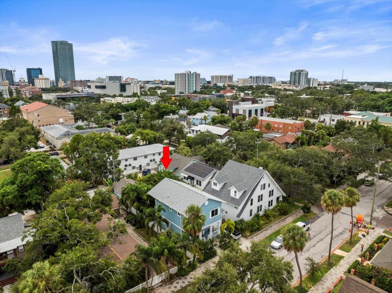 Beautiful Two-Story Home in Historic Old Northeast area is now available and NOT in a flood or evacuation zone!! Just steps from 4th street, the waterfront and dog park, with vibrant downtown St. Pete in your backyard, this 1, 782 sq ft home lives much larger thanks to soaring 10-foot ceilings on both levels. A welcoming front porch sets the tone—perfect for your morning coffee and enjoying Florida’s breezes. Inside, the open-concept layout highlights an elegant electric fireplace as the centerpiece of the living area. The dining space flows seamlessly into the kitchen, which features solid wood cabinets, Bosch appliances including a gas stove, a breakfast bar, and a closet pantry. Sliding doors off the dining area lead to a private backyard with a covered porch, paved patio, low-maintenance turf, and a storage shed. The fully fenced yard also includes a side gate with the potential for extended driveway parking—ideal for an RV or water toys. Upstairs, the primary suite offers a spacious walk-in closet, an ensuite bath with granite countertops, a walk-in shower, and a separate soaking tub. Step outside through sliding doors to your private balcony overlooking the backyard—an inviting retreat for coffee or wine. Two additional guest bedrooms and a convenient laundry closet complete the upper level. Built in 2006, this home has been thoughtfully updated with a roof, custom closets, hardwood staircase, modern lighting, fencing, and turf (all circa 2020). Additional features include hurricane-rated windows and sliding doors, a tankless water heater, a 50-amp circuit with wall-mounted Level 2 car charger (2022), and a newer custom fireplace wall and surround. This prime location can’t be beat—close to downtown St. Pete, the Vinoy Resort & Golf Club, the Pier, museums, fine dining, and vibrant nightlife. 20 minutes to Tampa international airport, Tampa international Port, and a short drive to our consistently top 10 white sand Beaches including Clearwater, St Pete Beach and the famous Fort Desoto. Don't forget our winning Pro teams!! Tampa Bay Lightning, The Rays and The Buccaneers are all within reach and so much fun to see live. Pinellas County really has it all!