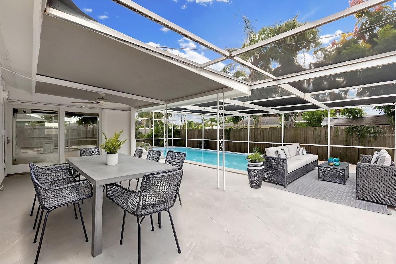 One or more photo(s) has been virtually staged. PRICE REDCUED. This amazing property is nestled in a highly sought-after South Sarasota location. It is located off Constitution Blvd. just south of Proctor Road. This unique location provides serenity and privacy yet close to endless dining options and shops. Located just 1 mile from Siesta Key’s world-renowned beaches! It’s a place where luxury meets practicality, creating a perfect balance for modern living. This cozy home is equipped with modern wall to wall tile, an upgraded bath with no expense spared, a large heated pool (freshly resurfaced), newly rescreened pool cage, a brand new roof (2025) with 15 year warranty, new hurricane windows (2025), and lastly an over-sized two-car garage. One side of two-car garage is currently using a portion for a game room/ storage/office and can continue to be utilized in this manner or seller will remove at buyers request to revert back to the standard garage. New paint and landscaping complete this wonderful home making it ready to call your own. It’s an ideal setting for hosting gatherings and creating unforgettable memories with friends and family. No HOA, no deed restrictions and no CDD. Some photos are virtually staged.