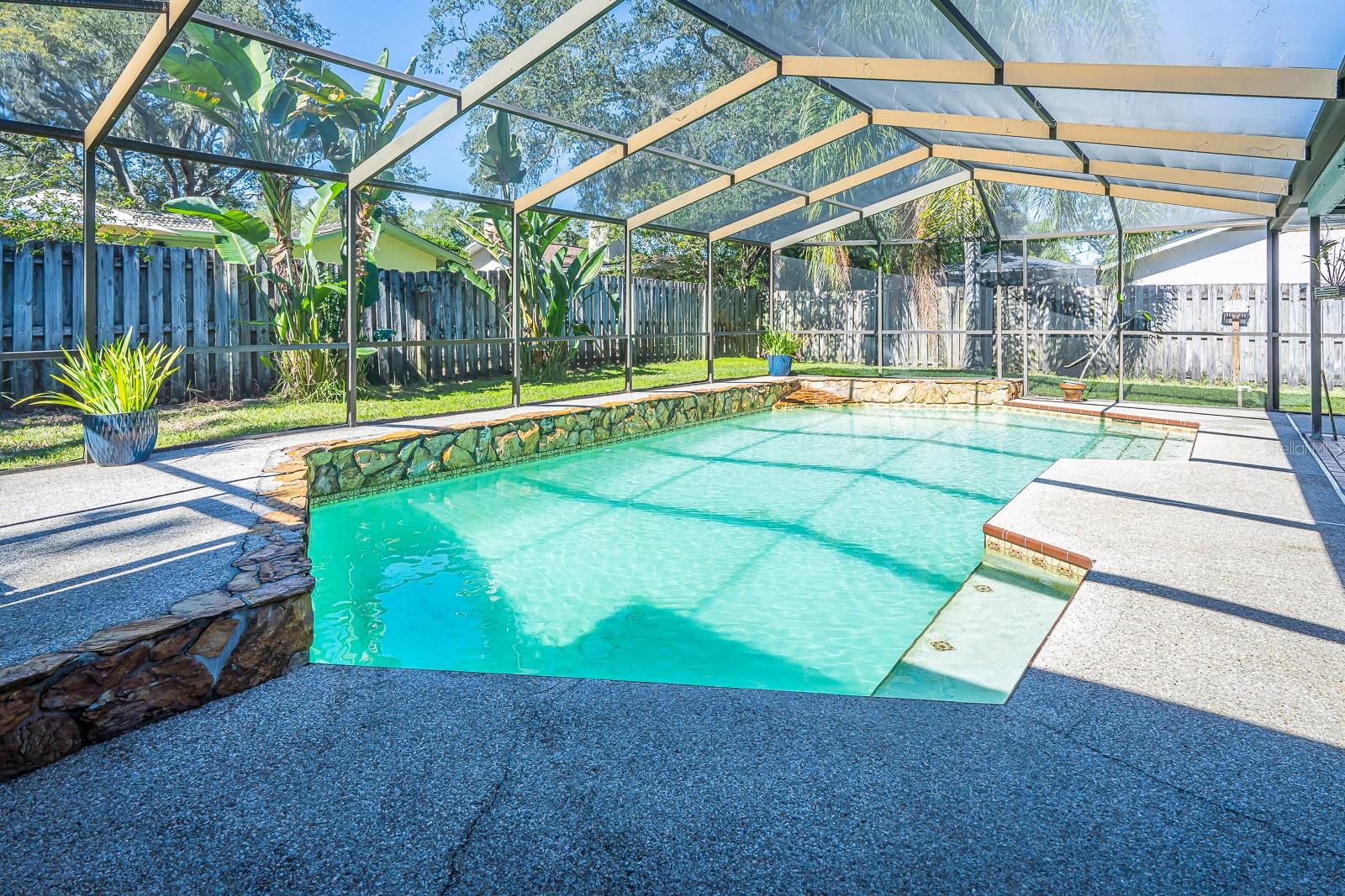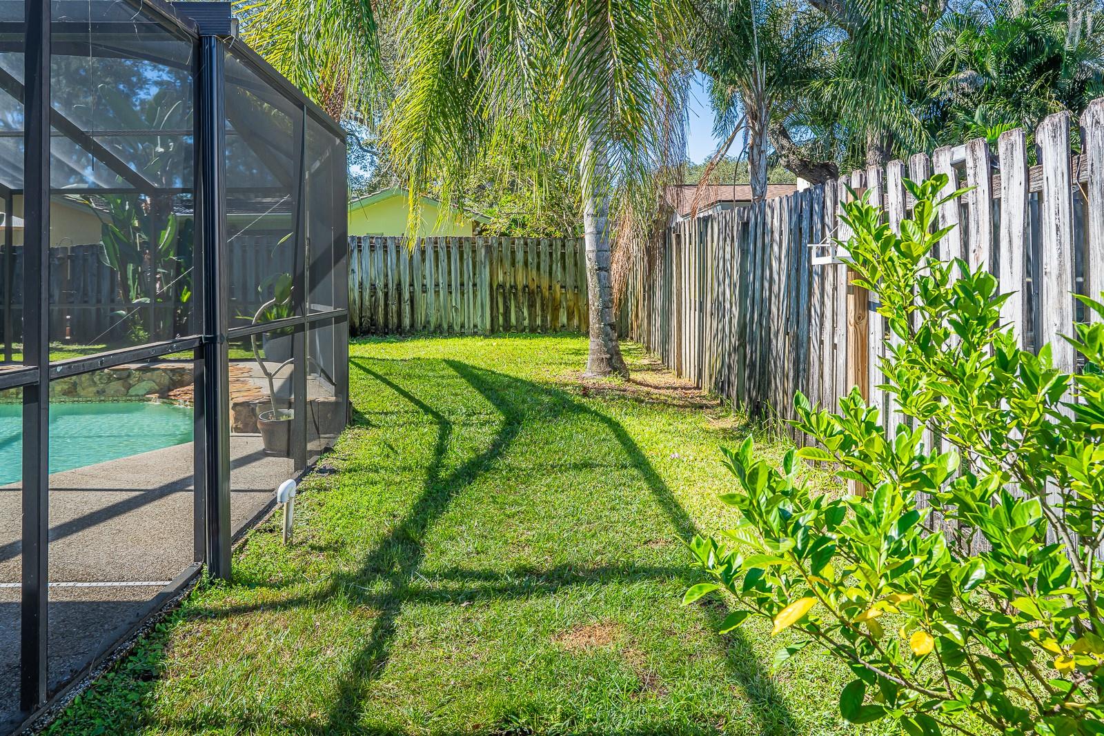 Under contract-accepting backup offers. Welcome to Northwood Estates, one of Clearwater’s most established and sought-after communities, where timeless architecture meets relaxed Florida living. Recently painted on the exterior, this beautifully maintained two-story home blends warmth, light, and character in every detail. Inside, you’ll find soaring cedar-vaulted ceilings, rich hardwood floors, and expansive windows that flood the home with natural light. The open, airy layout offers defined yet connected spaces, including a grand family room framed by a dramatic sky window that seems to bring the outdoors in, creating a peaceful and welcoming atmosphere. The chef-inspired kitchen combines style and function with granite countertops, stainless steel appliances, a glass-tile backsplash, and a beamed ceiling crowned with elegant molding. A formal dining room and dedicated office provide ideal spaces for both connection and productivity. The primary suite is a true sanctuary, featuring a stunning wood-burning fireplace, a large walk-in closet, and a spa-like bathroom with dual sinks, a makeup vanity, and a walk-in shower. Upstairs, two additional bedrooms and a spacious guest bath offer comfort and privacy, while the open hallway overlooks the family room below, enhancing the sense of light and openness. Step outside to your private backyard oasis with a covered patio, screened lanai, sparkling pool, and lush green space perfect for entertaining or relaxing. Additional highlights include A/C (2023), architectural roof (2015), newer pool pump, fresh exterior paint, and an oversized two-car garage with ample storage. Enjoy the incredible location near Enterprise Dog Park, Lake Chautauqua Park, Countryside Mall, charming downtown Safety Harbor, and within easy reach of both Tampa International and St. Pete–Clearwater airports—making this home the perfect blend of comfort, convenience, and Florida lifestyle.