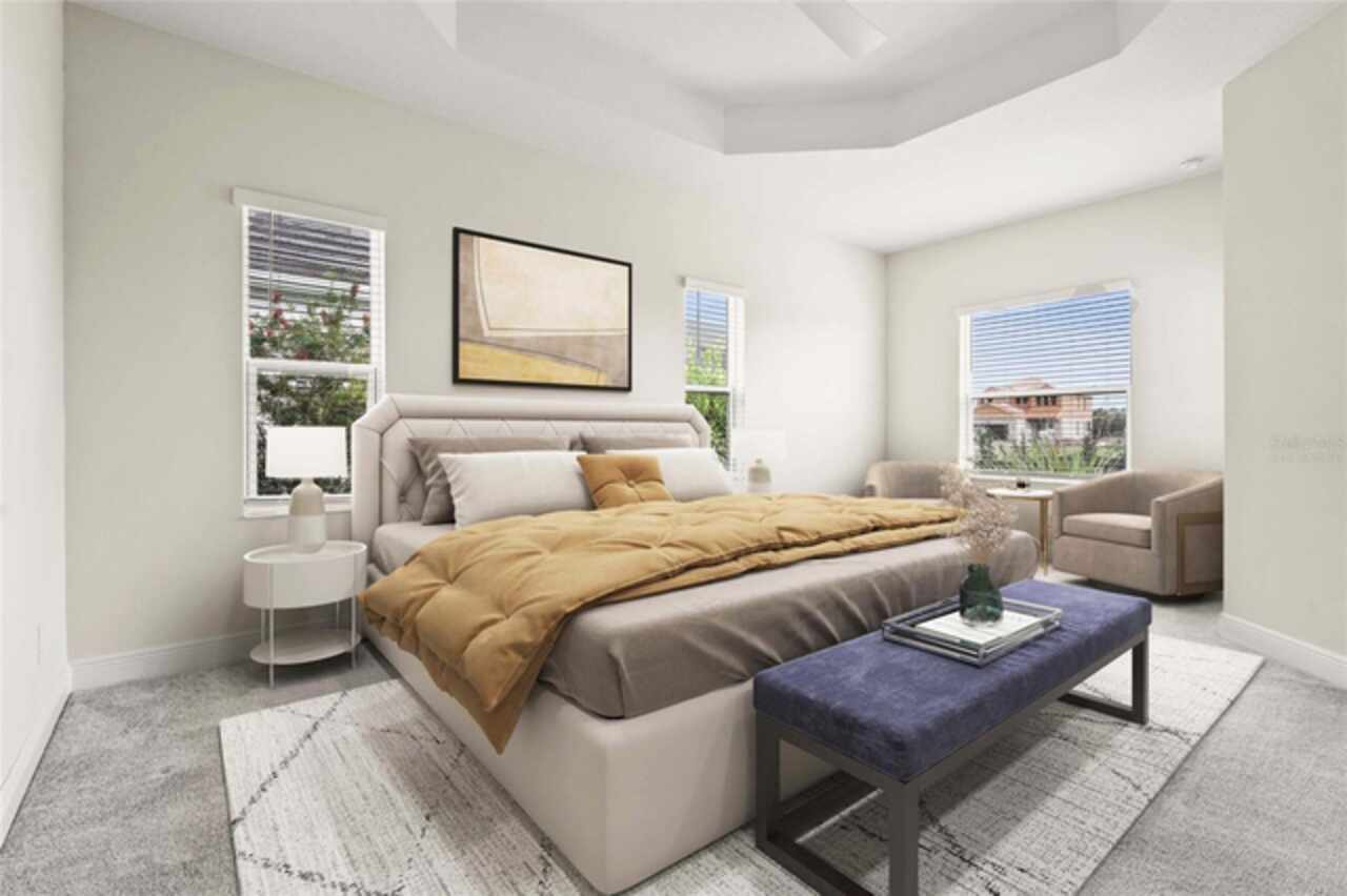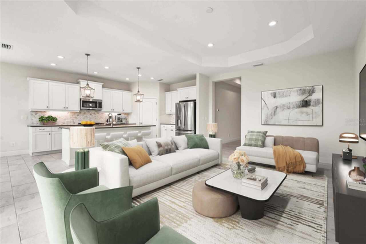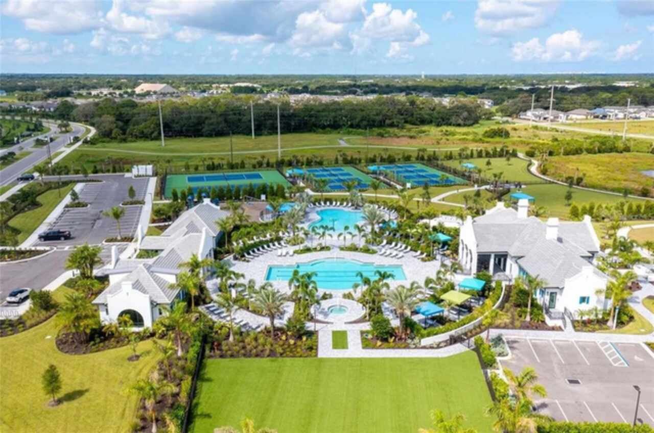 One or more photo(s) has been virtually staged. Why wait to build? Welcome to one of Lakewood Ranch’s most sought after gated communities, Windward at Lakewood Ranch, where luxury living meets everyday comfort. This coveted Applause model offers 3 bedrooms, 3 bathrooms, and a den/office. The open floor plan features a great room with a tray ceiling and sliding doors that lead to a covered paver lanai, pre-wired for a future pool. The kitchen is thoughtfully designed with shaker-style cabinetry, quartz countertops, a decorative tile backsplash, under cabinet lighting, a large center island with bar seating, and a walk-in pantry. The primary suite includes two walk-in closets, a tray ceiling, and an en suite bath with dual vanities and a walk-in shower. Additional features and updates include hurricane impact windows and sliders, neutral tile flooring in the main living areas, carpeted bedrooms, and a den/office with double door entry. Enjoy a maintenance free lifestyle in this gated community featuring resort style amenities, including a large swimming pool, children’s pool, spa, eight pickleball courts, two tennis courts, two dog parks, a clubhouse, playground, and a state-of-the-art fitness center. A full time activities director coordinates events throughout the year, creating a vibrant and social atmosphere. Windward is ideally located near Waterside Place, downtown Sarasota, and some of Florida’s most beautiful Gulf Coast beaches. Call to schedule your private tour today!