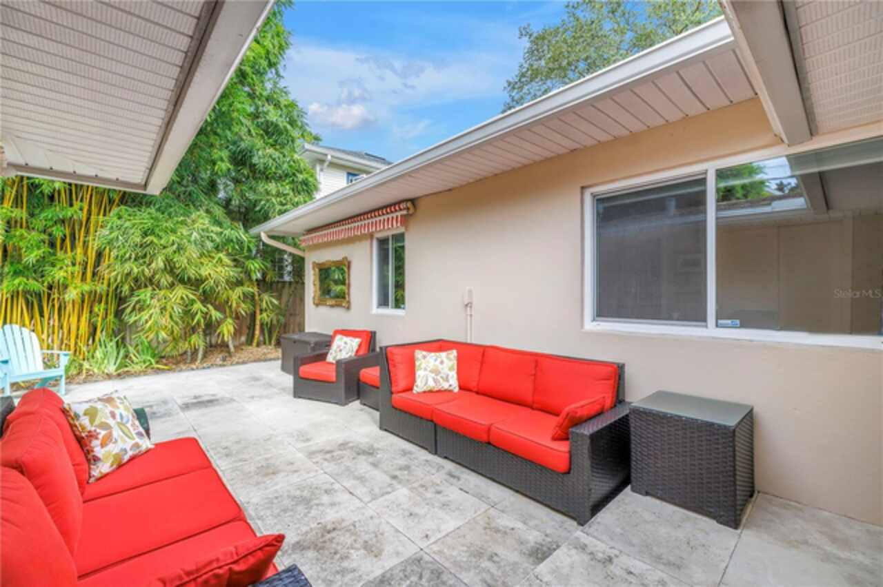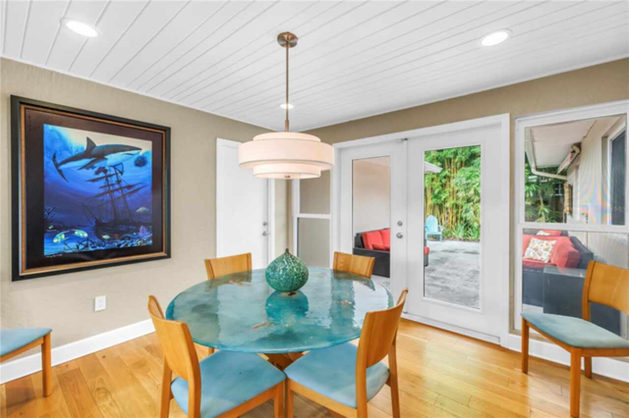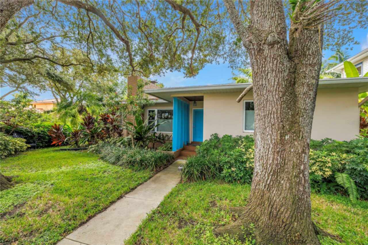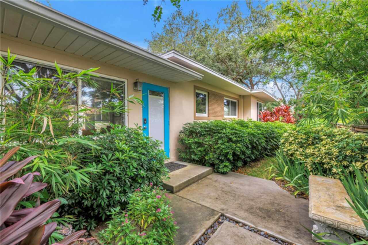 Under contract-accepting backup offers. This Historic Old Northeast treasure balances timeless charm with modern comfort. Nestled on a picturesque, oak-shaded corner lot, this thoughtfully maintained single-story mid-century home offers 1, 519 sq. ft. of stylish living in one of St. Petersburg’s most iconic neighborhoods. Inside, sunlight streams through oversized picture windows, illuminating gleaming oak hardwood floors and a classic wood-burning fireplace, already plumbed for gas. The open layout connects living, dining, and kitchen spaces, creating a seamless flow for both everyday living and effortless entertaining. The updated kitchen is a showpiece, featuring Carrara marble countertops, custom cherry cabinetry, glass tile backsplash, a modern hood, and soft-close drawers. A dining bar and adjacent dining room with French doors open to the back patio, elevating meals from casual coffee to lively dinner parties. Need flexibility? The enclosed sun porch, bathed in natural light, adapts as an office, reading nook, or wellness retreat. The spacious primary suite boasts a sleek ensuite bath with a floating vanity, frameless glass shower, and modern porcelain tile. The hall bath blends vintage 1950s charm with thoughtful updates, while two additional bedrooms provide comfort and privacy for guests or family. Outdoors, a private travertine patio sets the stage for al fresco living, ideal for grilling, gatherings, or unwinding with a glass of wine. Mature landscaping, supported by a deep-well irrigation system, offers beauty with low maintenance, and the oversized lot provides room to add a pool. The rare two-car garage is a standout, with storage, laundry, a workbench, perfect for future poolside access or creative projects . Half bath in garage could be converted into a cabana bath. All of this, just a short walk from the waterfront, Beach Drive, the Pier, and downtown’s vibrant arts and dining scene, while enjoying the peace of mind of a NON-FLOOD ZONE (X).