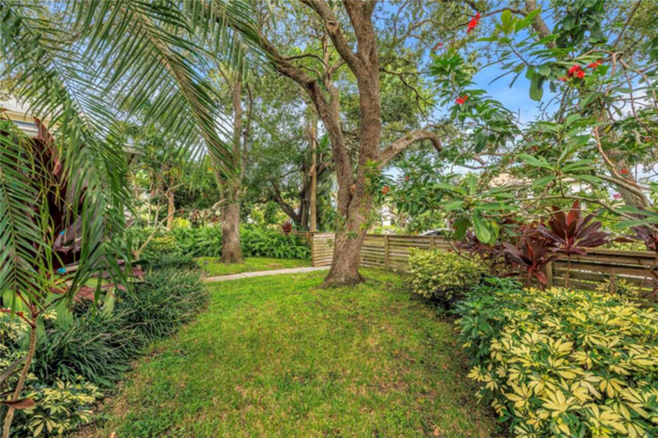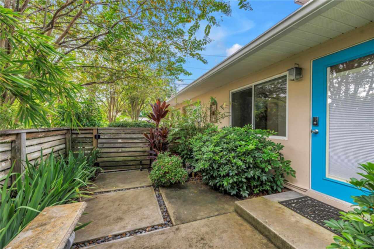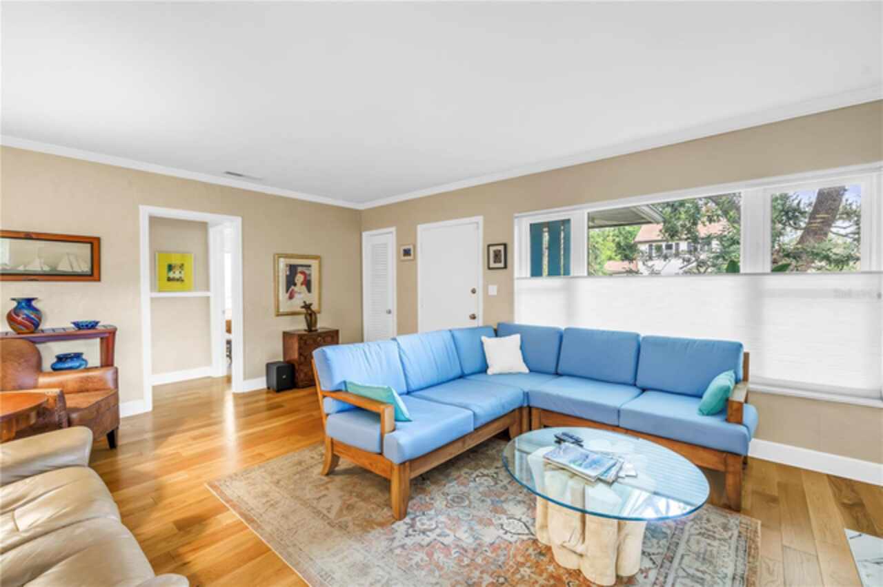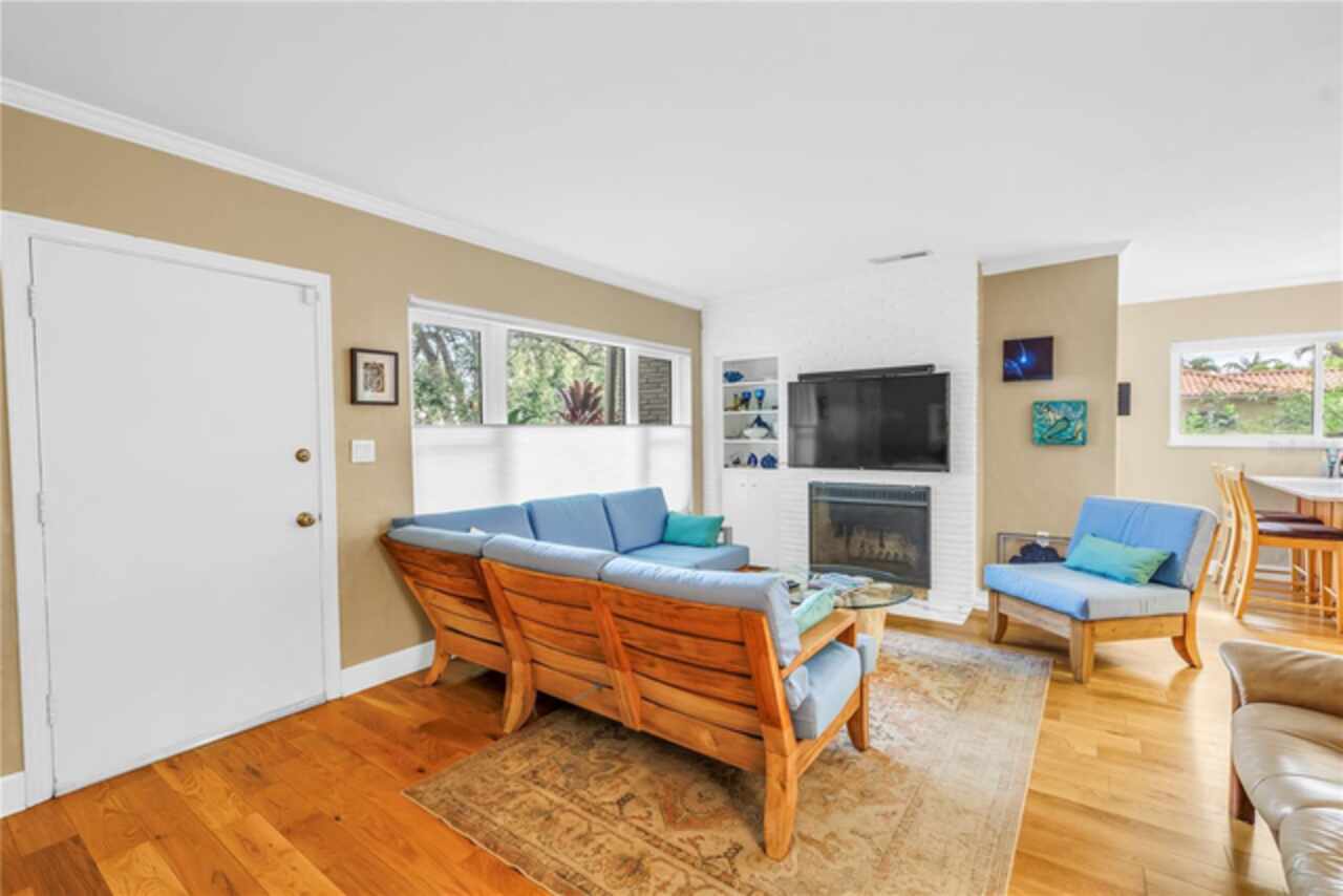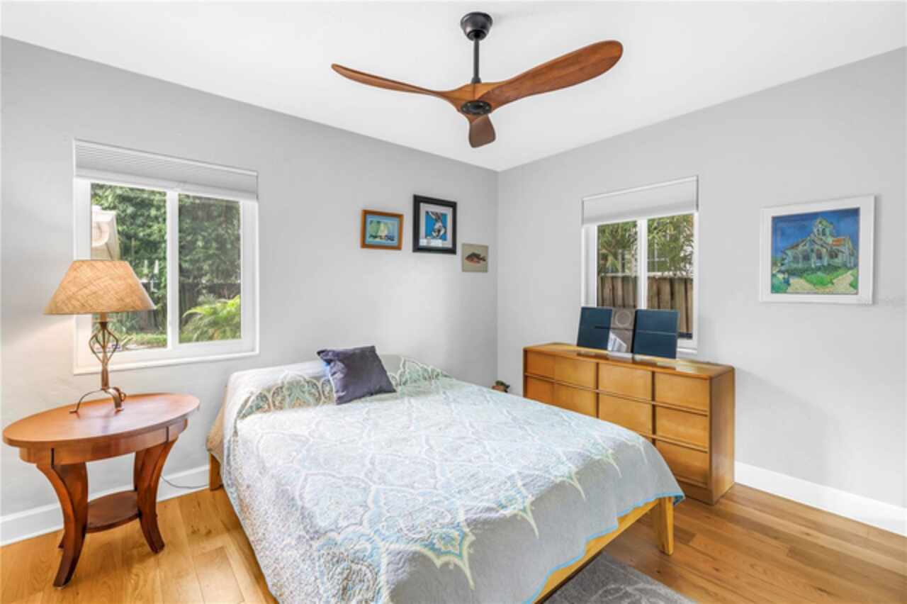 Under contract-accepting backup offers. This Historic Old Northeast treasure balances timeless charm with modern comfort. Nestled on a picturesque, oak-shaded corner lot, this thoughtfully maintained single-story mid-century home offers 1, 519 sq. ft. of stylish living in one of St. Petersburg’s most iconic neighborhoods. Inside, sunlight streams through oversized picture windows, illuminating gleaming oak hardwood floors and a classic wood-burning fireplace, already plumbed for gas. The open layout connects living, dining, and kitchen spaces, creating a seamless flow for both everyday living and effortless entertaining. The updated kitchen is a showpiece, featuring Carrara marble countertops, custom cherry cabinetry, glass tile backsplash, a modern hood, and soft-close drawers. A dining bar and adjacent dining room with French doors open to the back patio, elevating meals from casual coffee to lively dinner parties. Need flexibility? The enclosed sun porch, bathed in natural light, adapts as an office, reading nook, or wellness retreat. The spacious primary suite boasts a sleek ensuite bath with a floating vanity, frameless glass shower, and modern porcelain tile. The hall bath blends vintage 1950s charm with thoughtful updates, while two additional bedrooms provide comfort and privacy for guests or family. Outdoors, a private travertine patio sets the stage for al fresco living, ideal for grilling, gatherings, or unwinding with a glass of wine. Mature landscaping, supported by a deep-well irrigation system, offers beauty with low maintenance, and the oversized lot provides room to add a pool. The rare two-car garage is a standout, with storage, laundry, a workbench, perfect for future poolside access or creative projects . Half bath in garage could be converted into a cabana bath. All of this, just a short walk from the waterfront, Beach Drive, the Pier, and downtown’s vibrant arts and dining scene, while enjoying the peace of mind of a NON-FLOOD ZONE (X).
