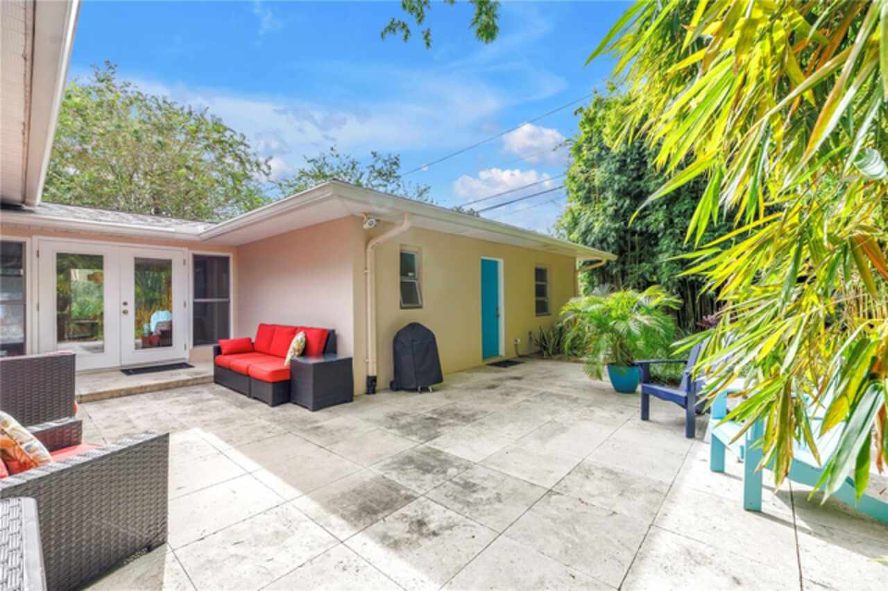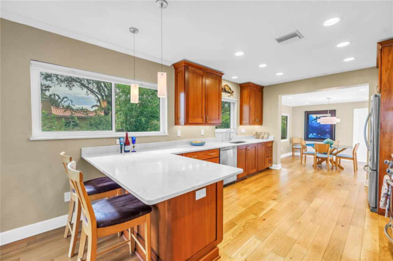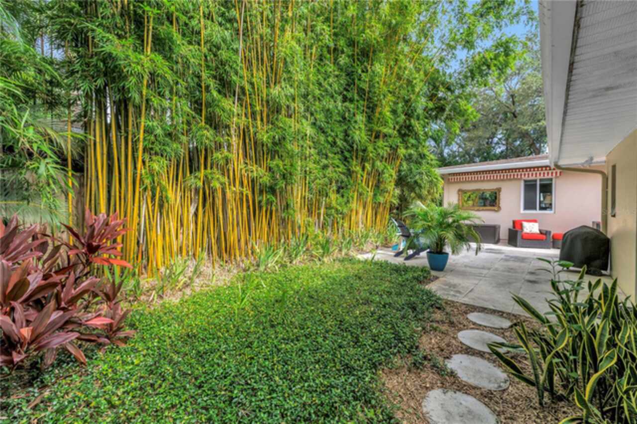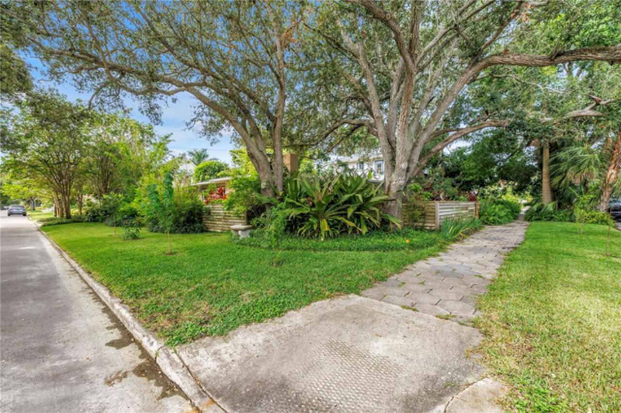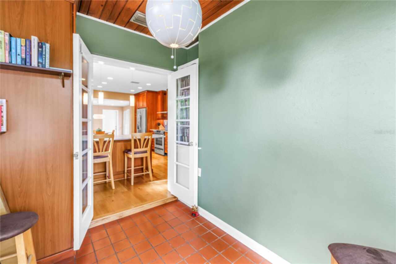 Under contract-accepting backup offers. This Historic Old Northeast treasure balances timeless charm with modern comfort. Nestled on a picturesque, oak-shaded corner lot, this thoughtfully maintained single-story mid-century home offers 1, 519 sq. ft. of stylish living in one of St. Petersburg’s most iconic neighborhoods. Inside, sunlight streams through oversized picture windows, illuminating gleaming oak hardwood floors and a classic wood-burning fireplace, already plumbed for gas. The open layout connects living, dining, and kitchen spaces, creating a seamless flow for both everyday living and effortless entertaining. The updated kitchen is a showpiece, featuring Carrara marble countertops, custom cherry cabinetry, glass tile backsplash, a modern hood, and soft-close drawers. A dining bar and adjacent dining room with French doors open to the back patio, elevating meals from casual coffee to lively dinner parties. Need flexibility? The enclosed sun porch, bathed in natural light, adapts as an office, reading nook, or wellness retreat. The spacious primary suite boasts a sleek ensuite bath with a floating vanity, frameless glass shower, and modern porcelain tile. The hall bath blends vintage 1950s charm with thoughtful updates, while two additional bedrooms provide comfort and privacy for guests or family. Outdoors, a private travertine patio sets the stage for al fresco living, ideal for grilling, gatherings, or unwinding with a glass of wine. Mature landscaping, supported by a deep-well irrigation system, offers beauty with low maintenance, and the oversized lot provides room to add a pool. The rare two-car garage is a standout, with storage, laundry, a workbench, perfect for future poolside access or creative projects . Half bath in garage could be converted into a cabana bath. All of this, just a short walk from the waterfront, Beach Drive, the Pier, and downtown’s vibrant arts and dining scene, while enjoying the peace of mind of a NON-FLOOD ZONE (X).