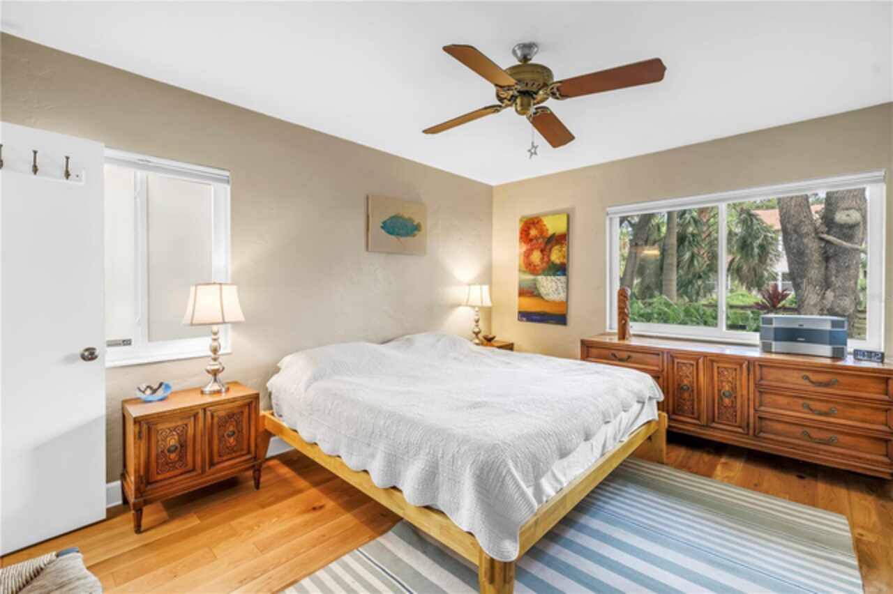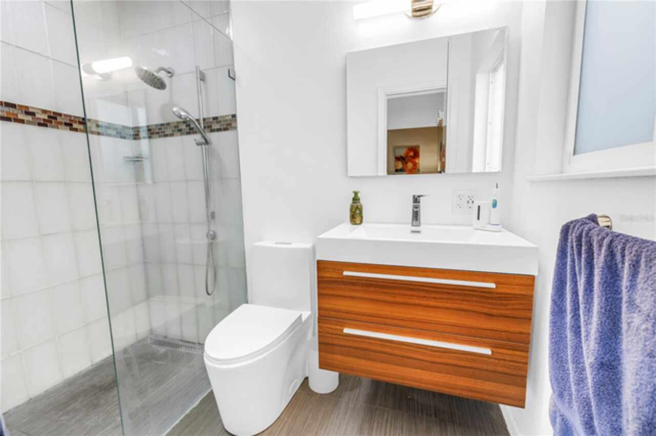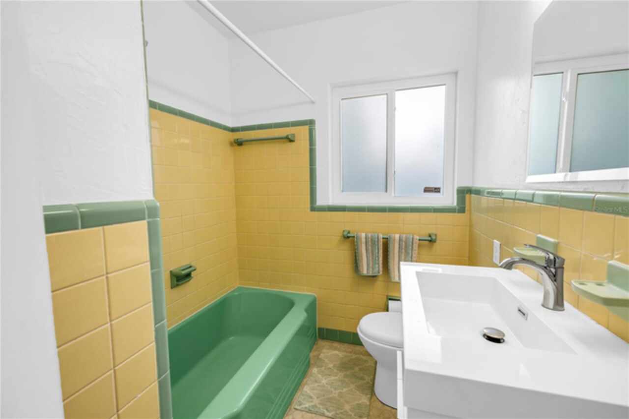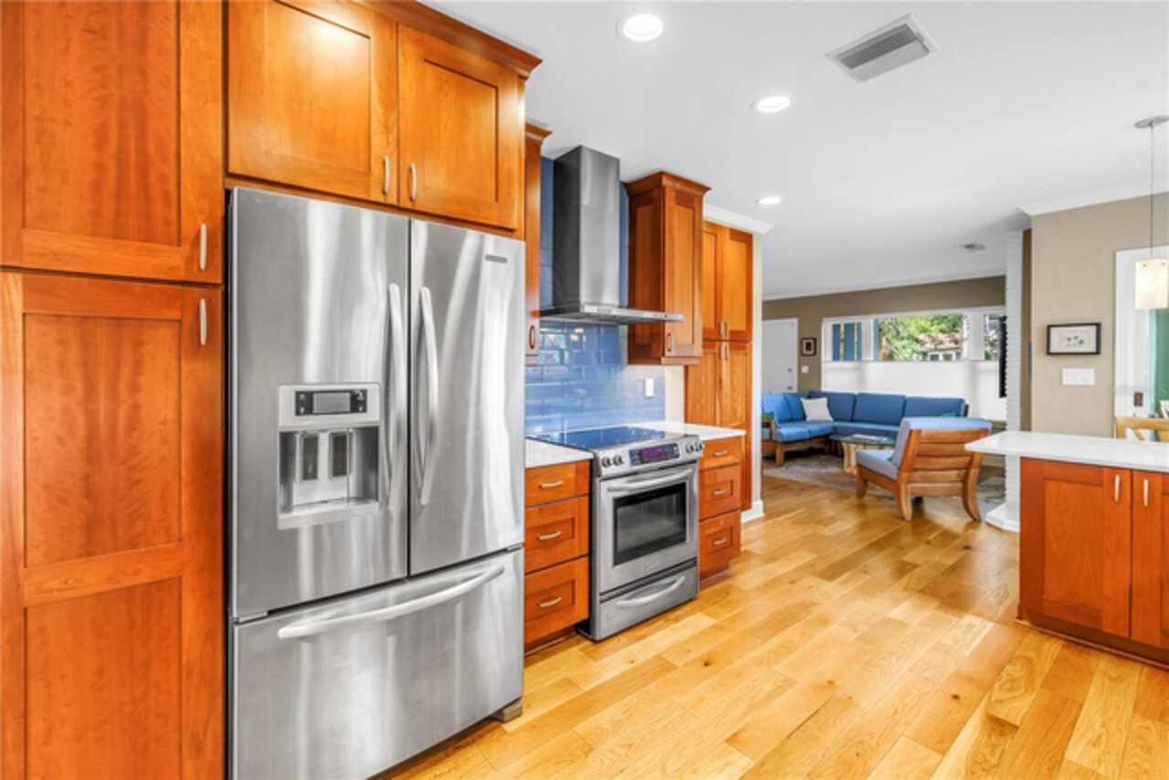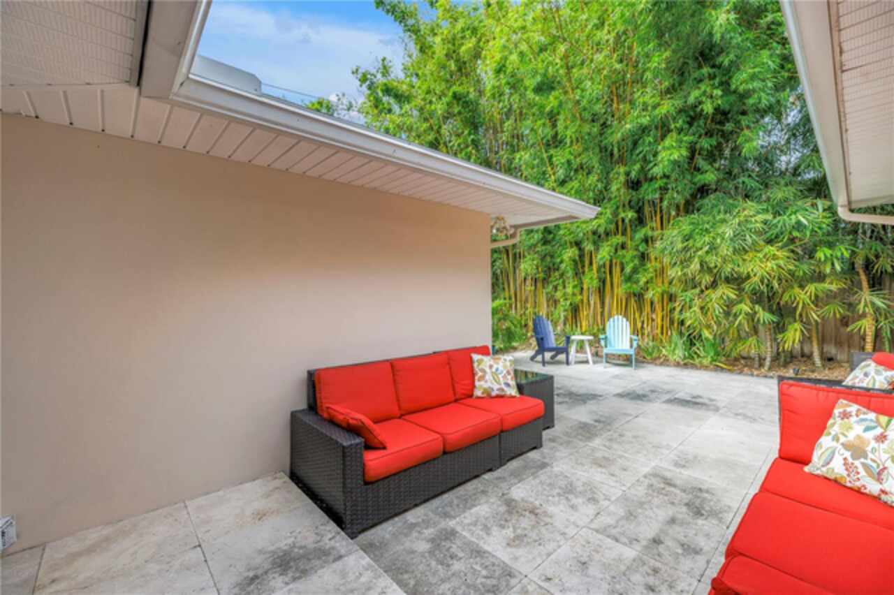 Under contract-accepting backup offers. This Historic Old Northeast treasure balances timeless charm with modern comfort. Nestled on a picturesque, oak-shaded corner lot, this thoughtfully maintained single-story mid-century home offers 1, 519 sq. ft. of stylish living in one of St. Petersburg’s most iconic neighborhoods. Inside, sunlight streams through oversized picture windows, illuminating gleaming oak hardwood floors and a classic wood-burning fireplace, already plumbed for gas. The open layout connects living, dining, and kitchen spaces, creating a seamless flow for both everyday living and effortless entertaining. The updated kitchen is a showpiece, featuring Carrara marble countertops, custom cherry cabinetry, glass tile backsplash, a modern hood, and soft-close drawers. A dining bar and adjacent dining room with French doors open to the back patio, elevating meals from casual coffee to lively dinner parties. Need flexibility? The enclosed sun porch, bathed in natural light, adapts as an office, reading nook, or wellness retreat. The spacious primary suite boasts a sleek ensuite bath with a floating vanity, frameless glass shower, and modern porcelain tile. The hall bath blends vintage 1950s charm with thoughtful updates, while two additional bedrooms provide comfort and privacy for guests or family. Outdoors, a private travertine patio sets the stage for al fresco living, ideal for grilling, gatherings, or unwinding with a glass of wine. Mature landscaping, supported by a deep-well irrigation system, offers beauty with low maintenance, and the oversized lot provides room to add a pool. The rare two-car garage is a standout, with storage, laundry, a workbench, perfect for future poolside access or creative projects . Half bath in garage could be converted into a cabana bath. All of this, just a short walk from the waterfront, Beach Drive, the Pier, and downtown’s vibrant arts and dining scene, while enjoying the peace of mind of a NON-FLOOD ZONE (X).