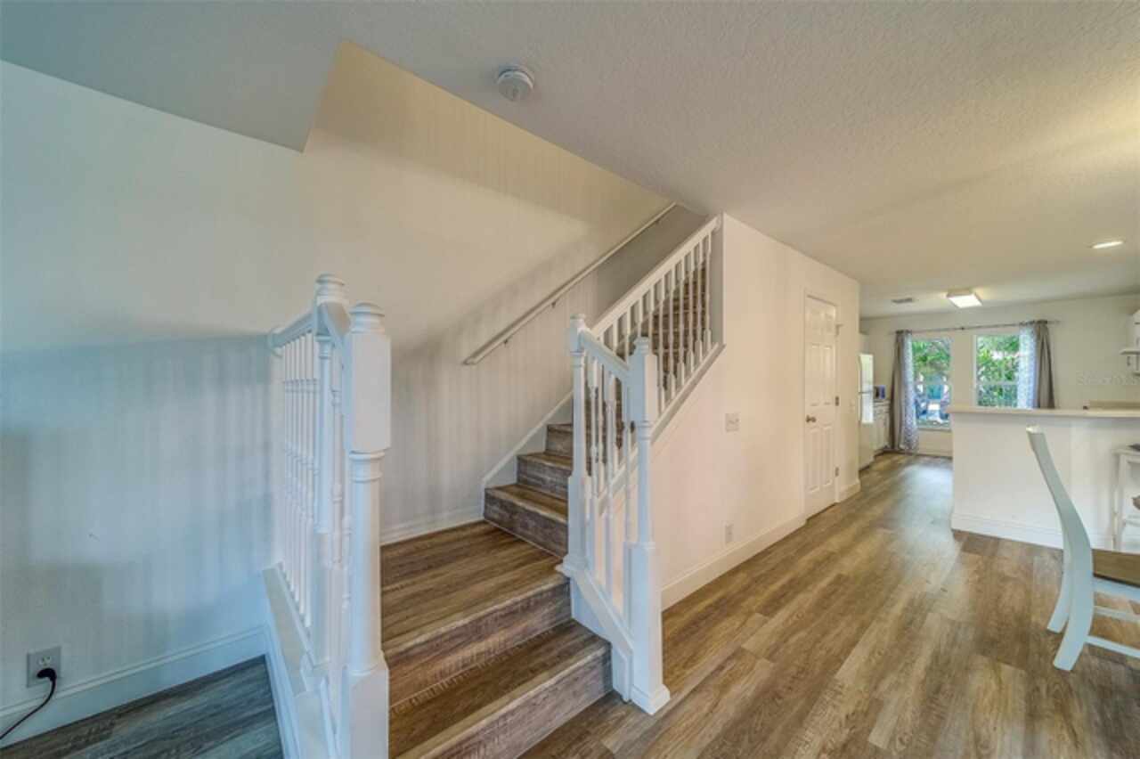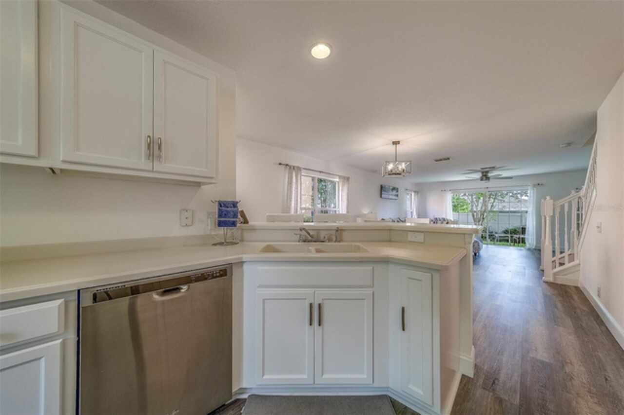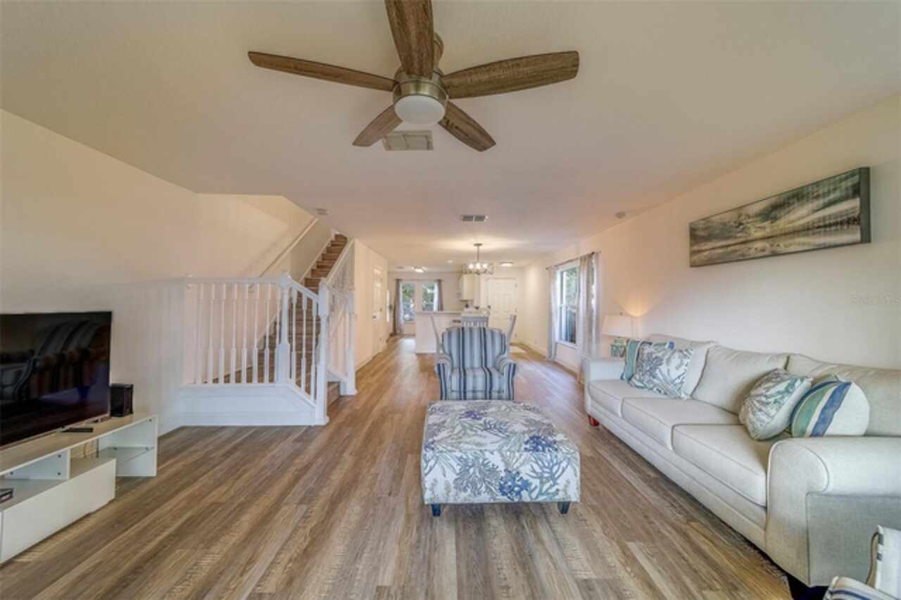 Welcome to this beautifully updated 3-bedroom, 2.5-bathroom end-unit townhome in the highly desirable Sunset Pointe Townhomes community! This move-in ready home offers modern updates, functional design, and worry-free living in a prime Clearwater location. Step inside to a newly painted interior with luxury vinyl flooring throughout and enjoy a bright, open first floor layout. The spacious modern kitchen flows seamlessly into the living and dining area, with a convenient half bath for guests. Upstairs features two large guest bedrooms, an oversized laundry room, and a split bedroom layout for privacy. The primary suite is tucked away at the back with dual closets and a private ensuite bathroom. Recent major updates include a new roof (2023), new water heater (2025), and HVAC system (2021), offering peace of mind and energy efficiency. Enjoy a low monthly HOA fee that covers cable TV, internet, exterior maintenance, grounds upkeep, common areas, and trash service. The pet-friendly community offers resort-style amenities like a sparkling pool and playground. Located in a high and dry area with no flood insurance required, and just minutes from US-19, top-rated beaches, shopping, and popular dining......this home truly has it all. Don’t miss your chance to own this beautifully updated home in one of Clearwater’s most convenient and well-kept communities. Schedule your showing today!
