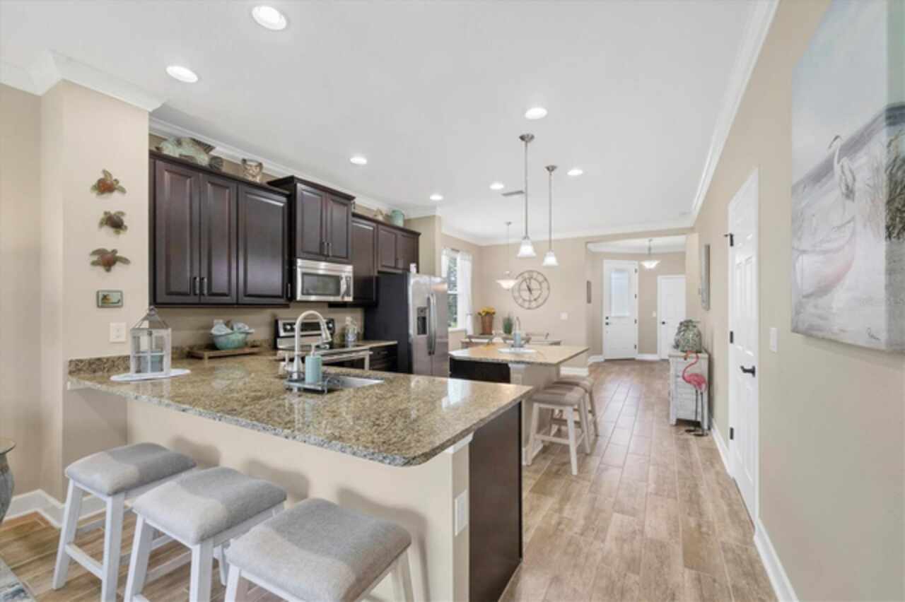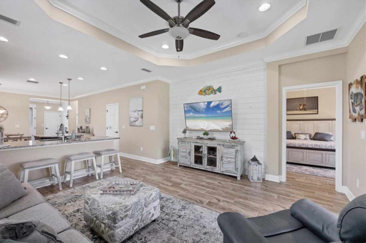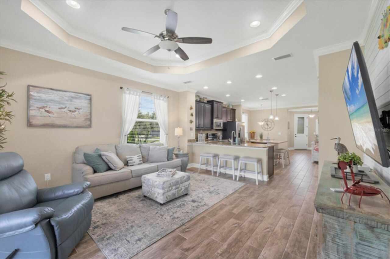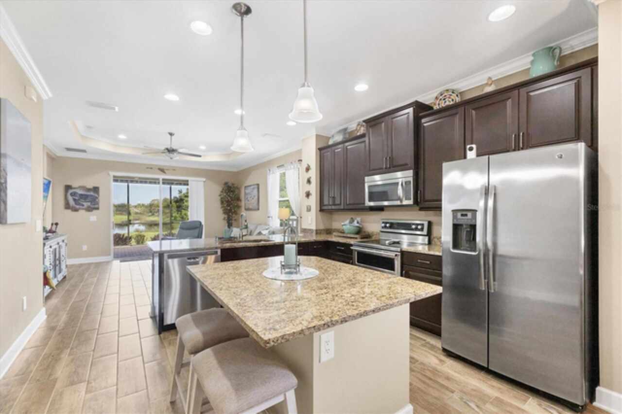 Not a drive by....This home is outstanding! Take advantage of this price adjustment before someone else does. Welcome to your slice of Florida paradise in Keyway Place—a gated, maintenance-free community of just 70 homes. This residence enjoys one of the premier locations in the community: a quiet cul-de-sac with no neighbors on one side, bordered instead by a large oak tree, preserve, and manicured open green space. Out back, your lanai looks straight down the long pond for serene water and nature views you’ll love coming home to. Step inside and you’re welcomed by a dining area that flows into the chef’s kitchen—complete with granite countertops, stainless steel appliances, wood cabinetry, pantry closet, and both an island and breakfast bar with seating. From there, the open-concept great room with tray ceiling draws you out to the extended enclosed lanai, where the pond and preserve become your backdrop for relaxing or entertaining. The split-floorplan offers privacy with a spacious primary suite featuring pond views, a walk-in closet, and ensuite bath with dual sinks and large walk-in shower. Two guest bedrooms, a full bath, and a dedicated laundry room provide both comfort and convenience. Stylish touches throughout include tile wood-plank flooring, crown molding, two shiplap accent walls, and 5” baseboards. Life here is truly low-maintenance: the $300/month HOA covers lawn care, mulch, hedge trimming, irrigation, with reclaimed water, gate maintenance, all common area landscaping and irrigation, and amenities—plus, no CDD fees. Enjoy the heated/chilled community pool, covered pool deck and restrooms. This community also has a scenic lake with a walking path, perfect for birdwatching and daily strolls. Just 3 miles from Manasota Beach and close to Englewood Beach, Venice, Venice Island, and Wellen Park—you’ll have easy access to local markets, dining, boating, and shopping while enjoying the peace of a small, tucked-away community. Whether a seasonal retreat or full-time residence, this home offers the perfect blend of location, lifestyle, and privacy. The lifestyle will last a lifetime—but this opportunity won’t! Contact me today for your private showing.
