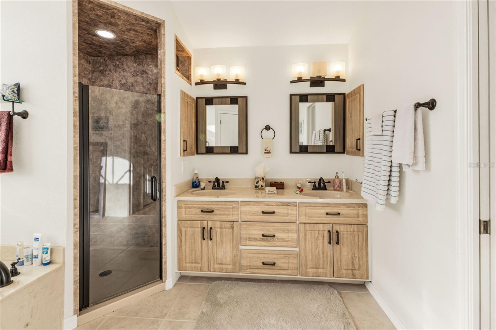 Cathedral Ceiling(s), Ceiling Fans(s), High Ceilings, Kitchen/Family Room Combo, Living Room/Dining Room Combo, Open Floorplan, Other, Solid Wood Cabinets, Split Bedroom, Stone Counters, Thermostat, Walk-In Closet(s), Window Treatments